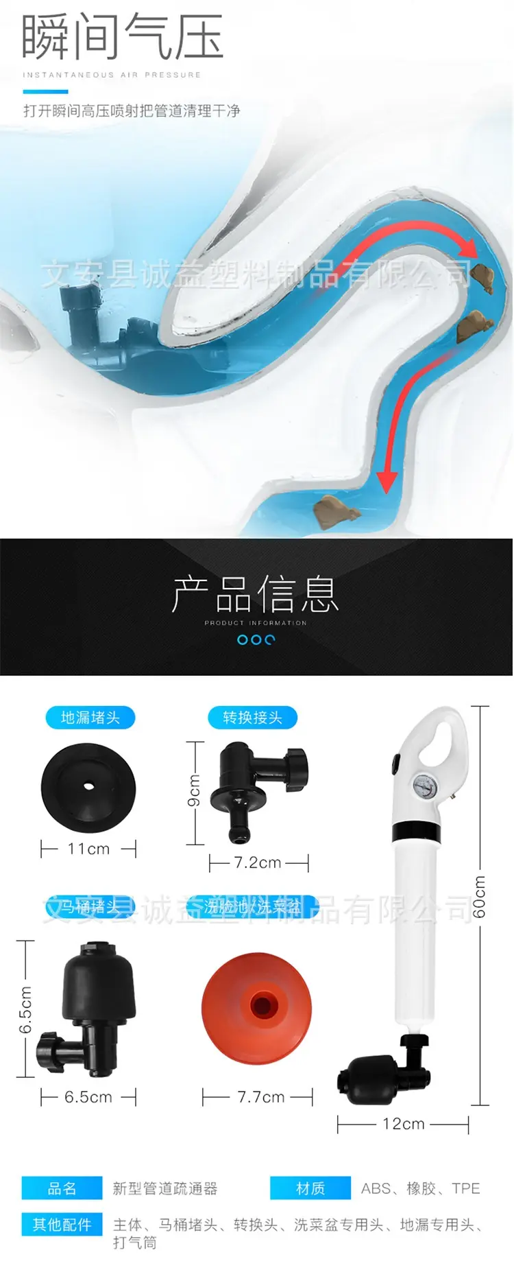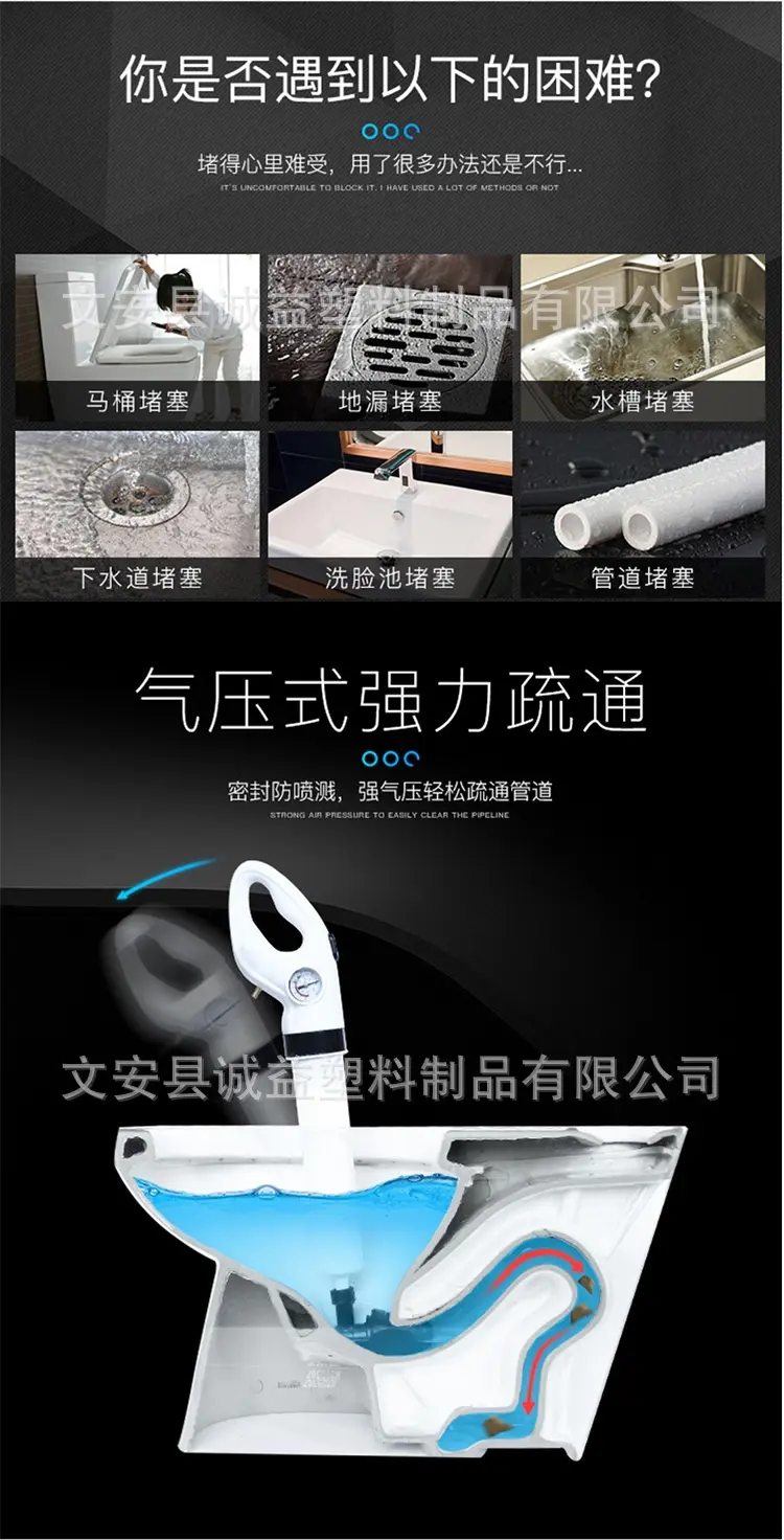 通马桶下水道疏通器家用工具厕所卫生间管道堵塞气压式高压一炮通