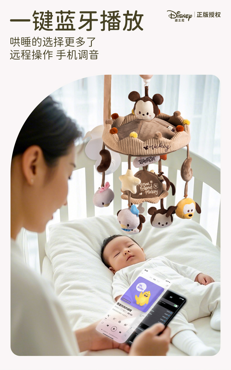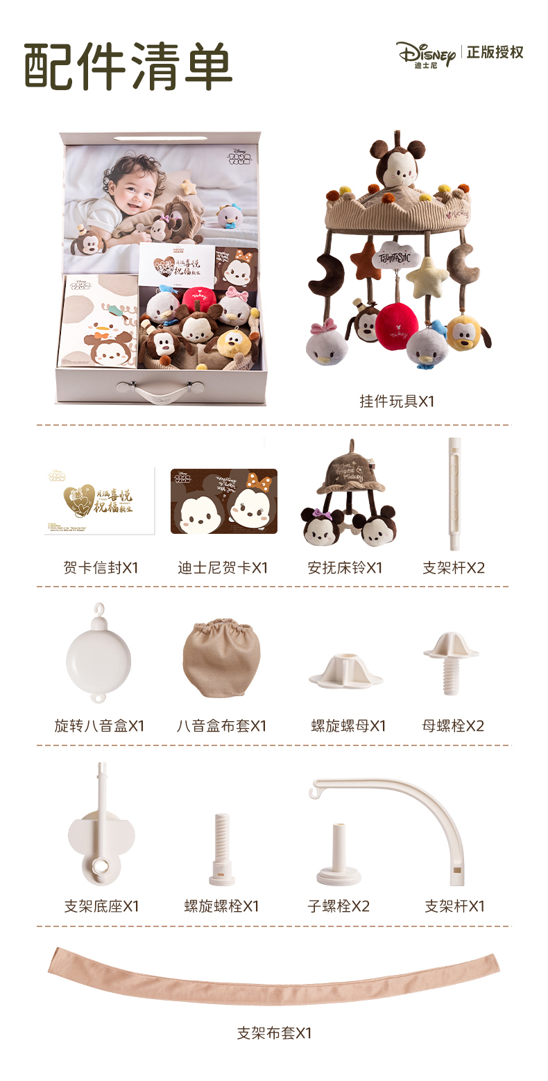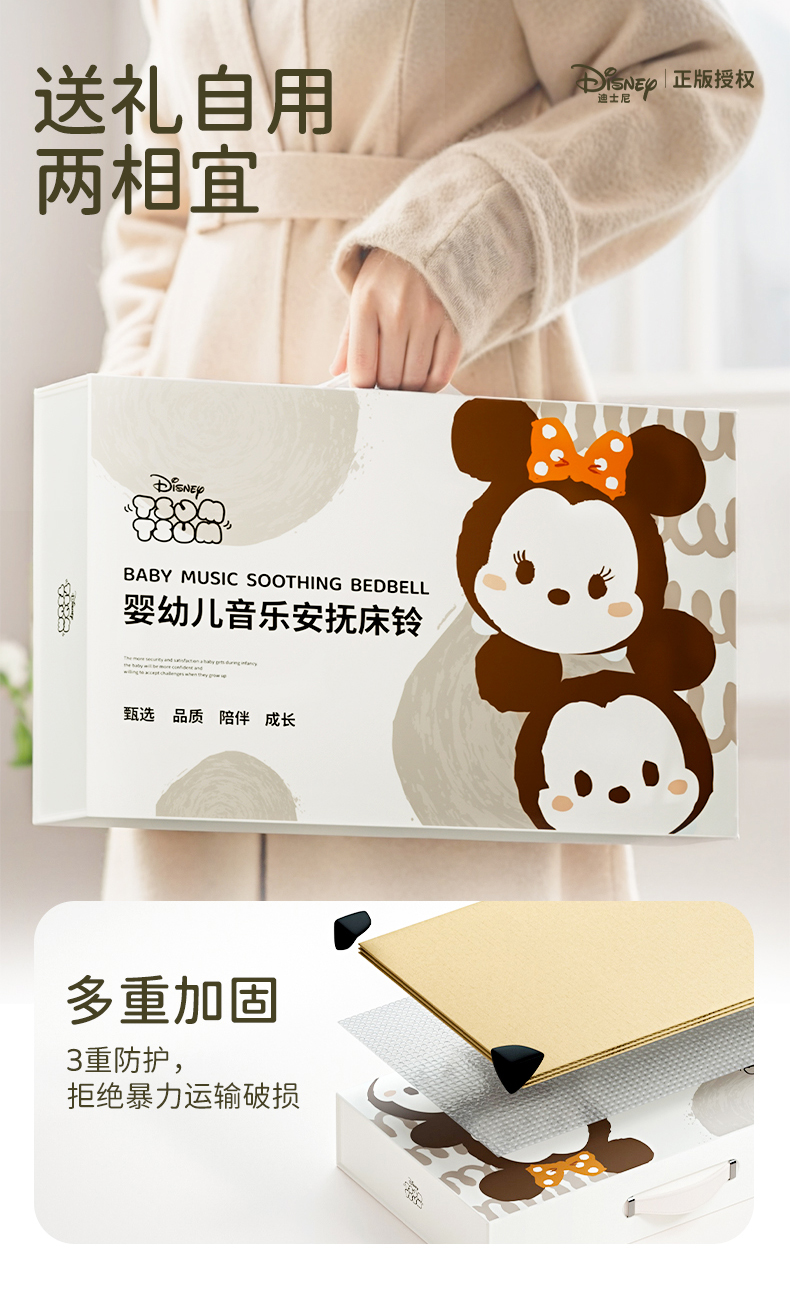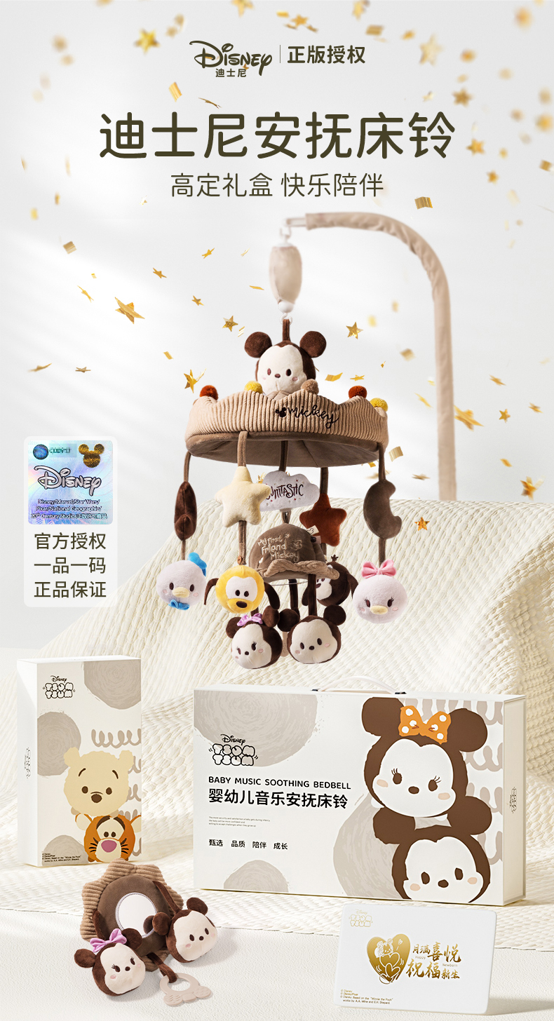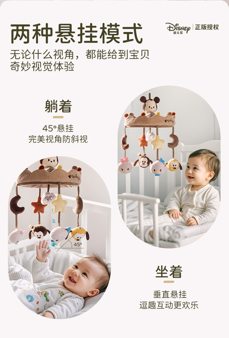 迪士尼正品床铃新生儿见面礼盒婴儿安抚玩偶礼物宝宝毛绒挂件玩具