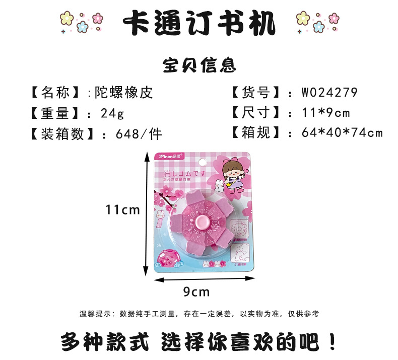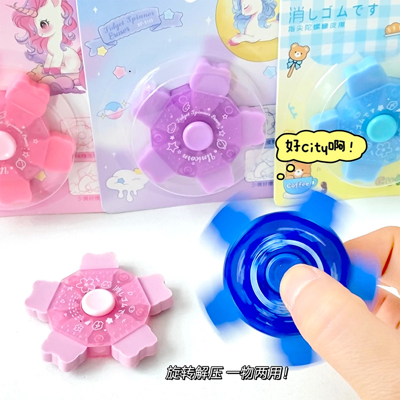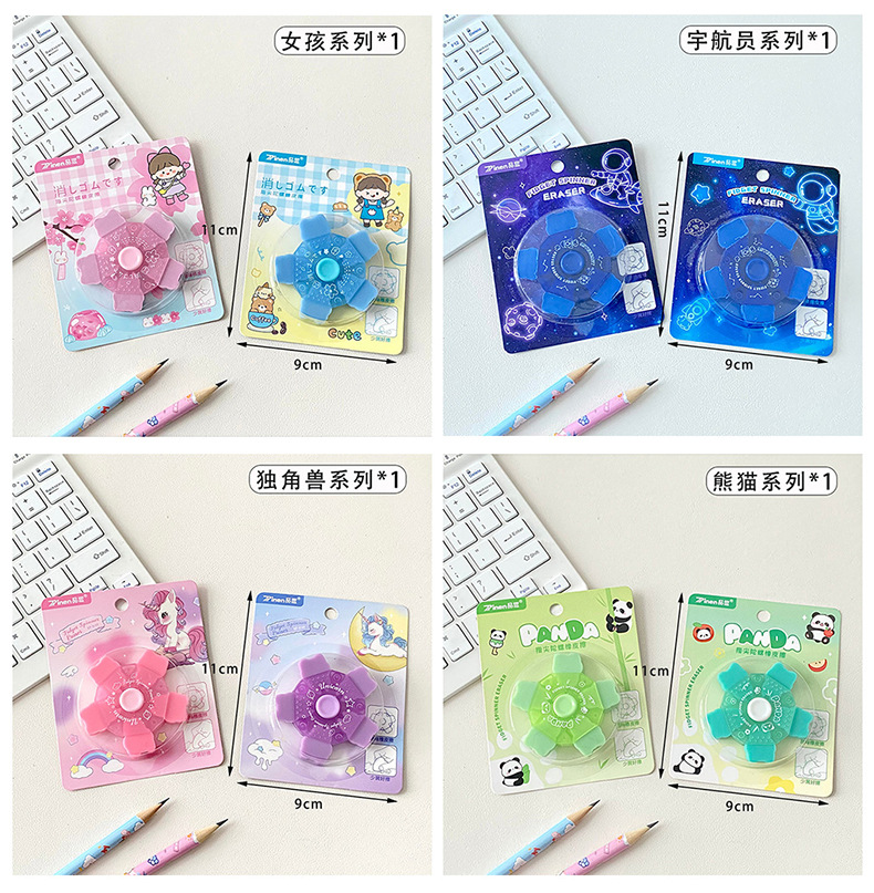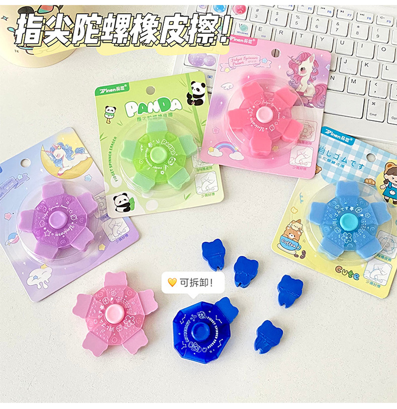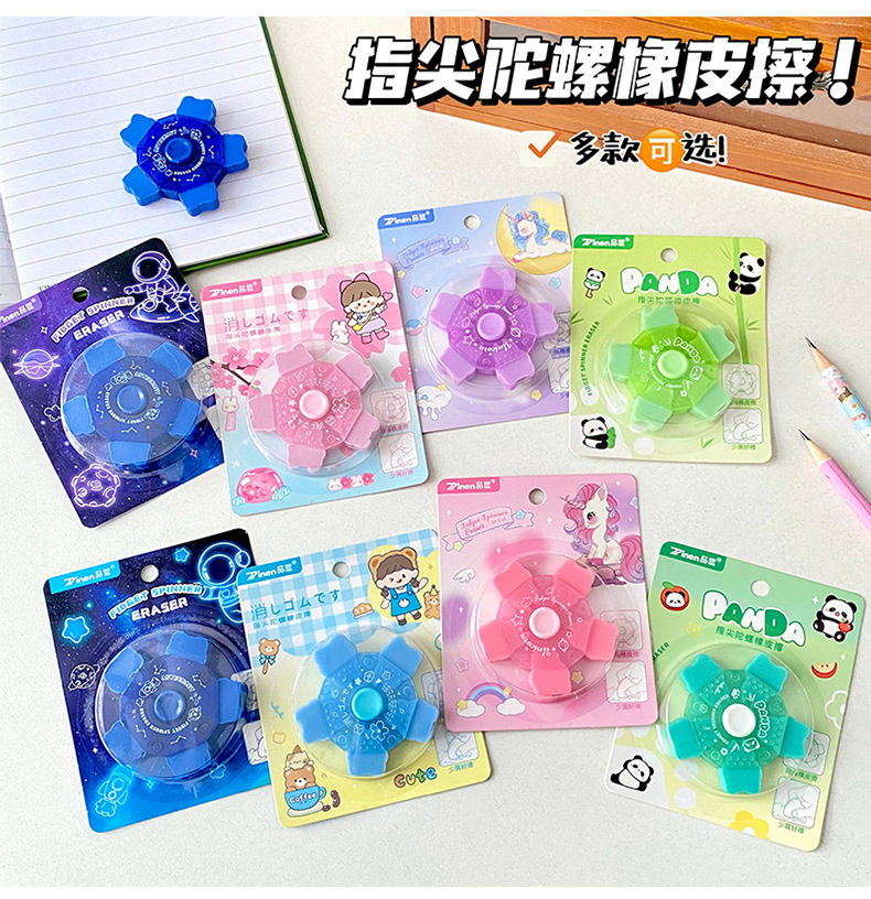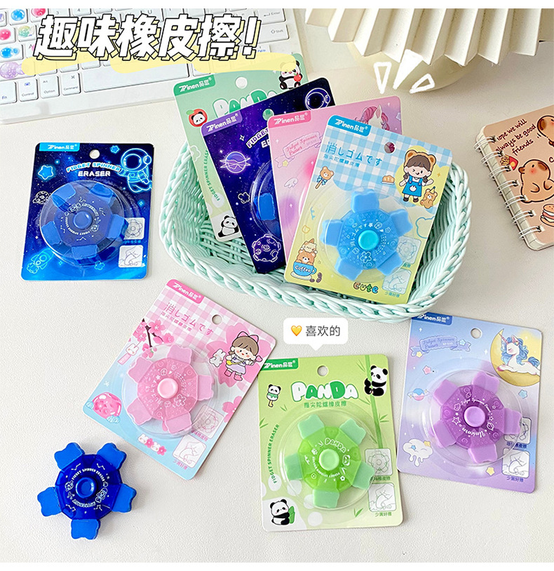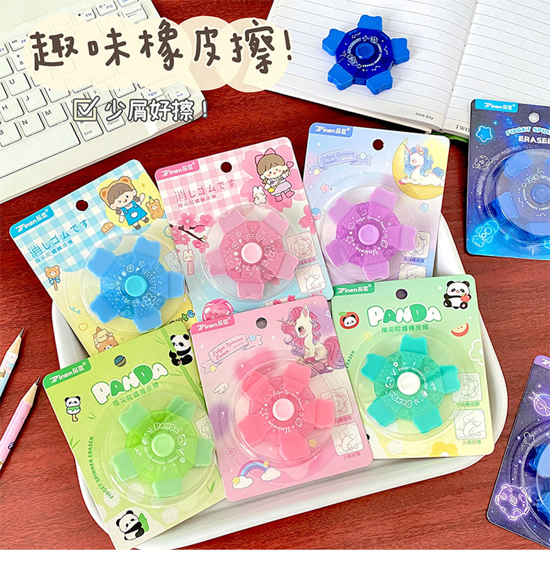 新款创意指尖陀螺可旋转橡皮擦学生文具干净少屑卡通可爱熊猫橡皮