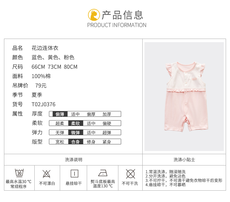 童泰新款夏季薄款纯棉婴儿飞袖连体衣宝宝短袖爬服女孩子甜美哈衣