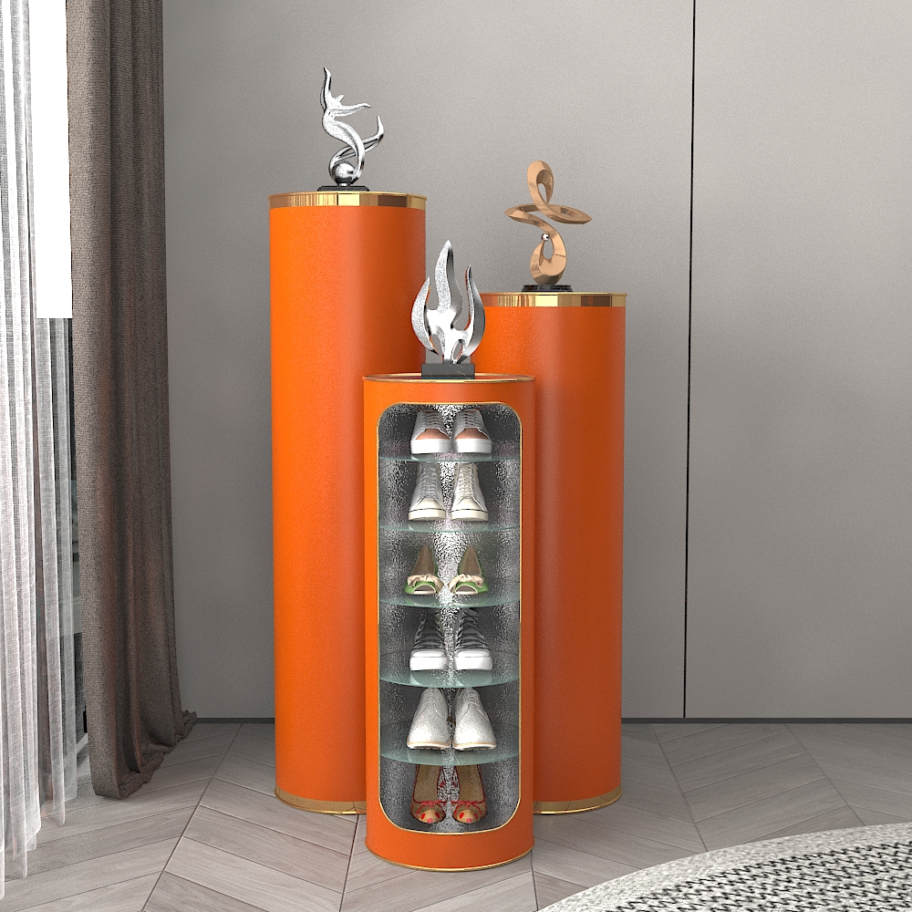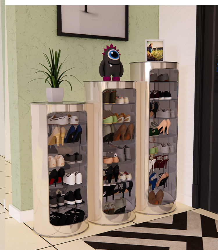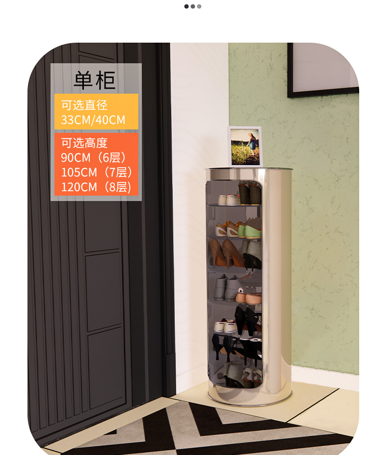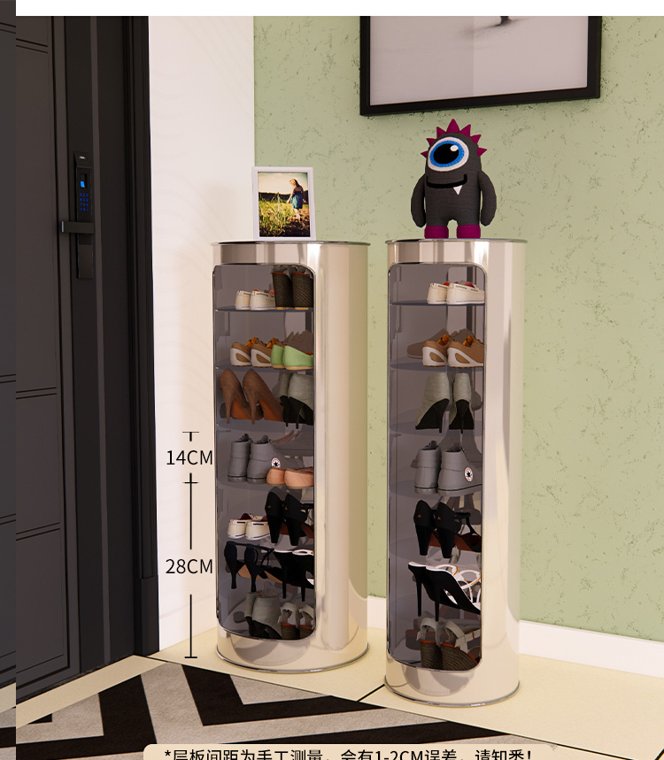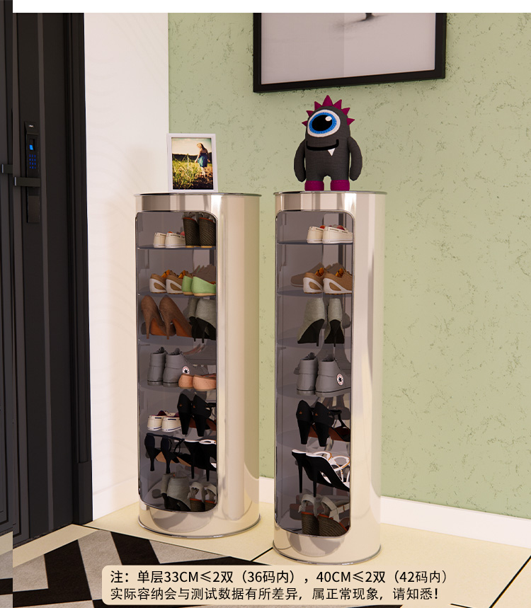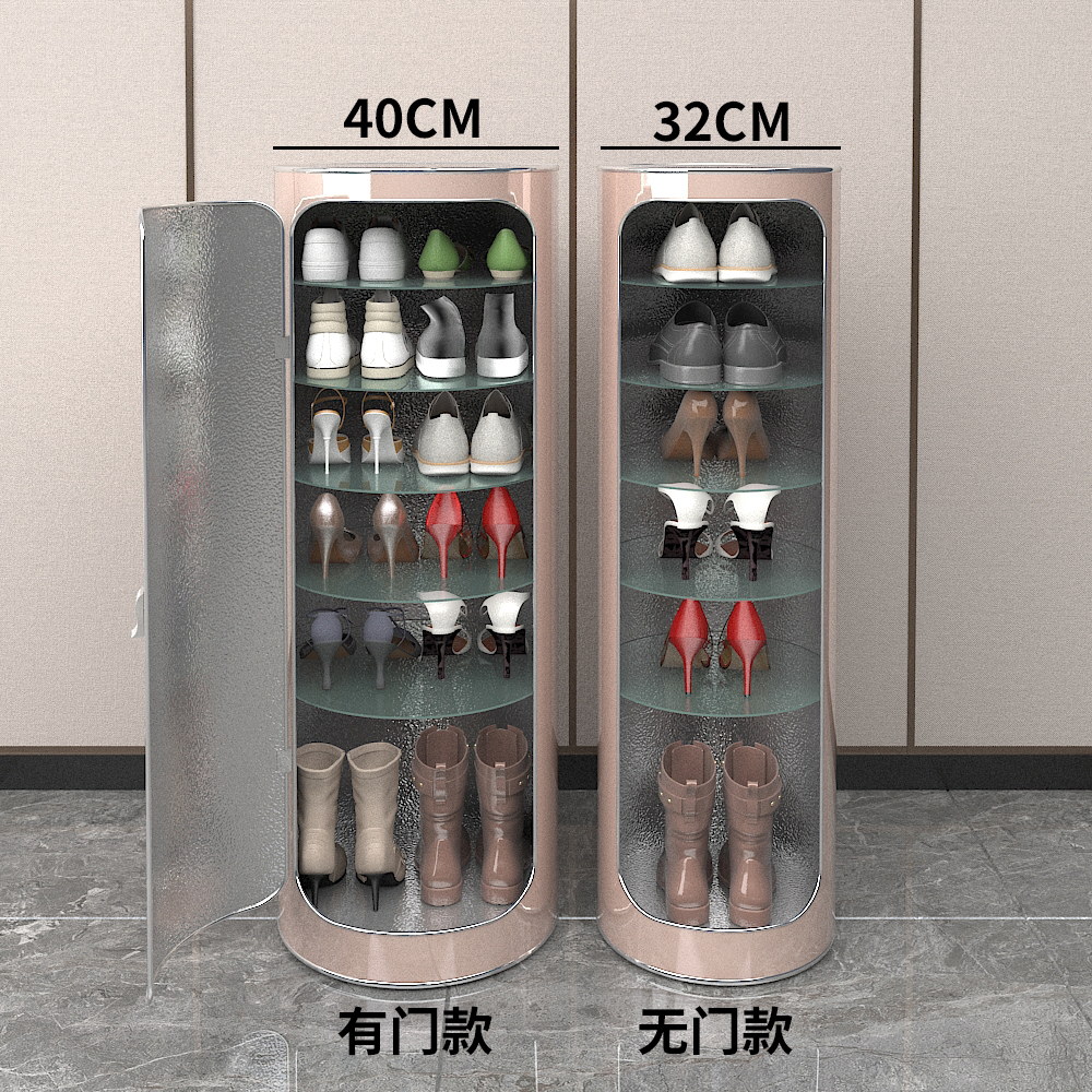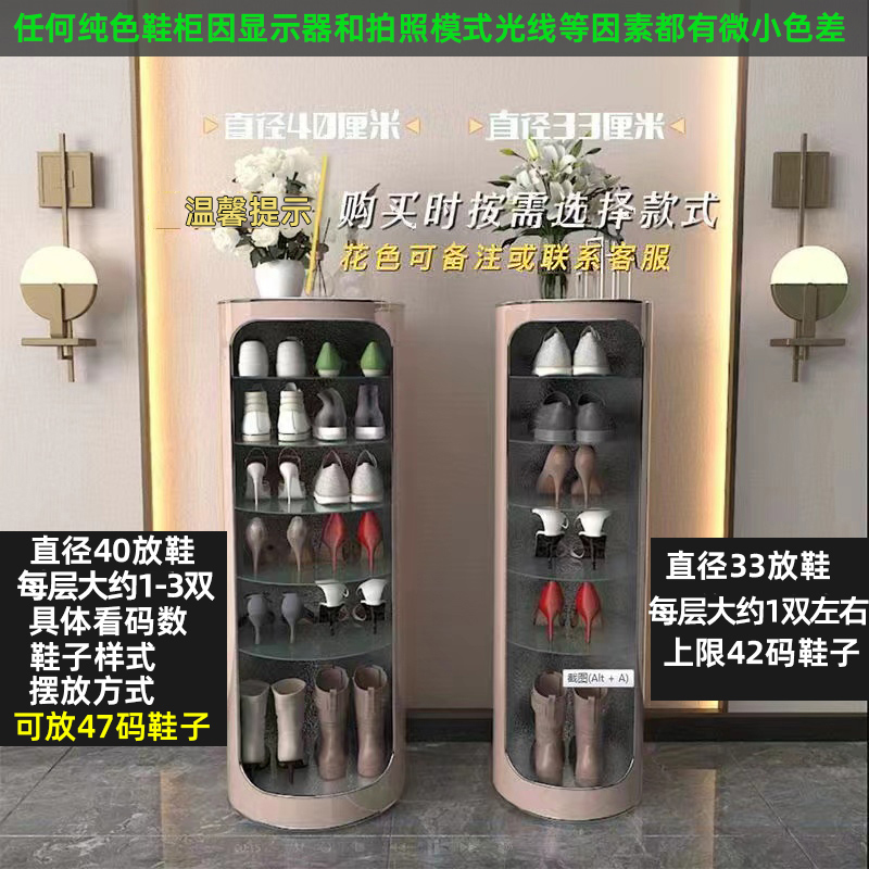 创意家用省空间门口收纳柜简易轻奢鞋架高立式小户型圆型旋转鞋柜