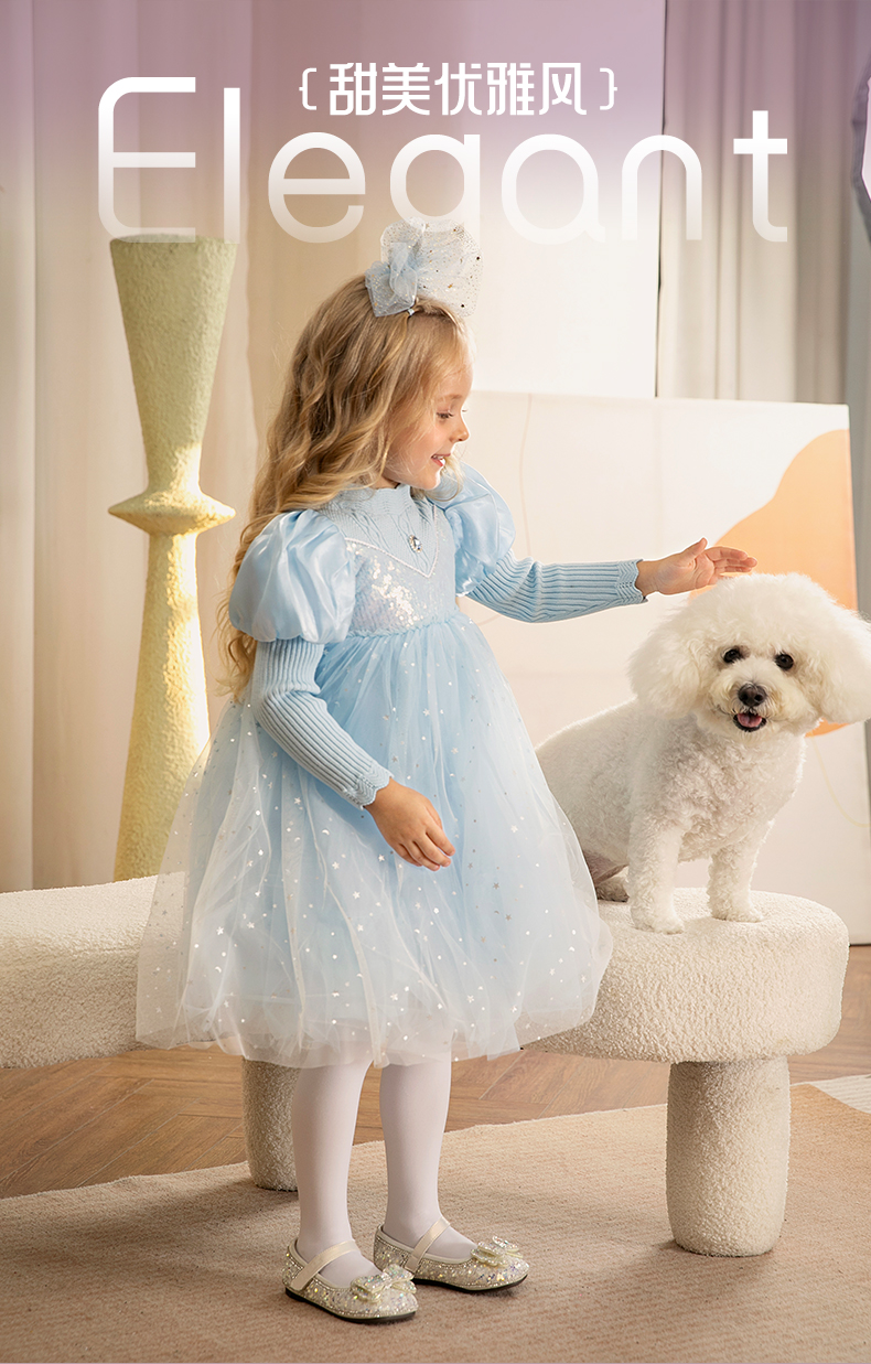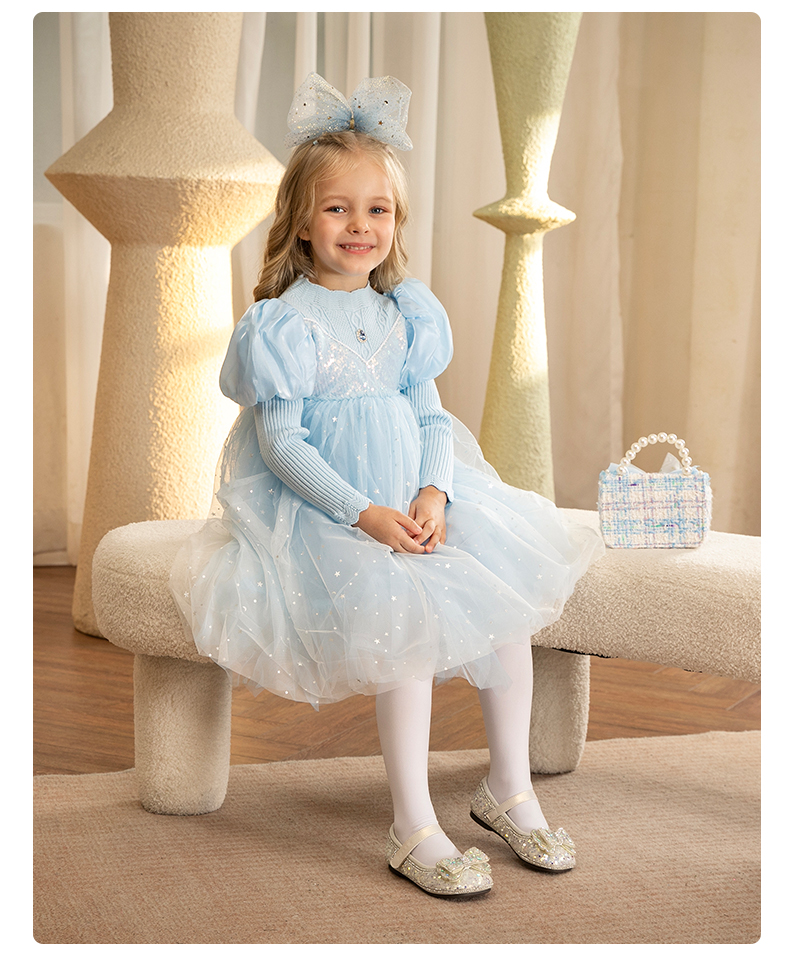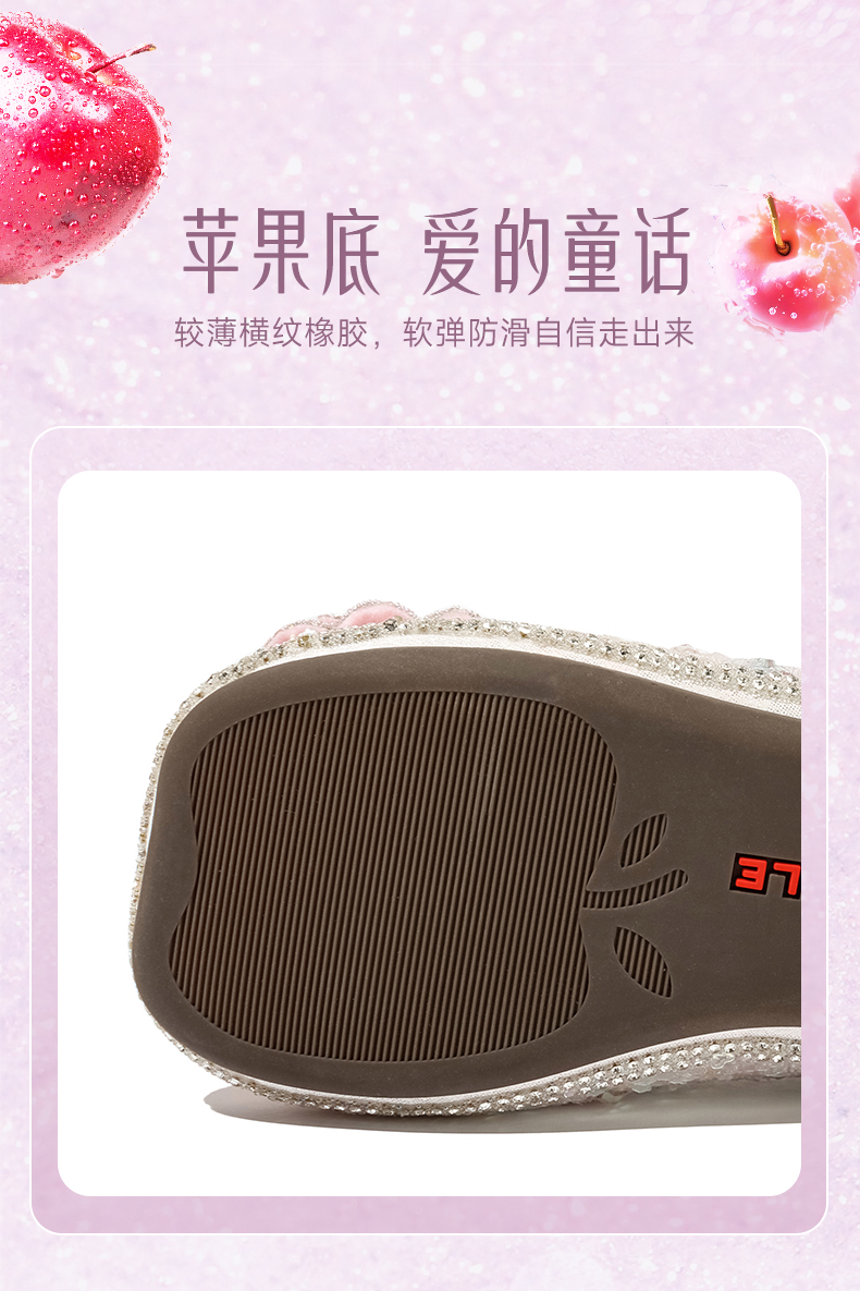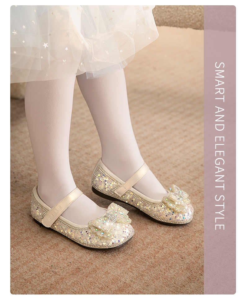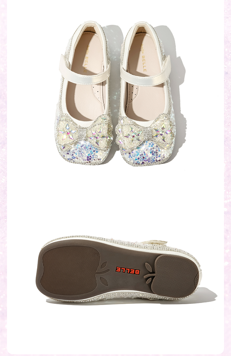 百丽童鞋春季女童软底皮鞋蝴蝶结水晶爱莎公主鞋时尚百搭闪钻单鞋