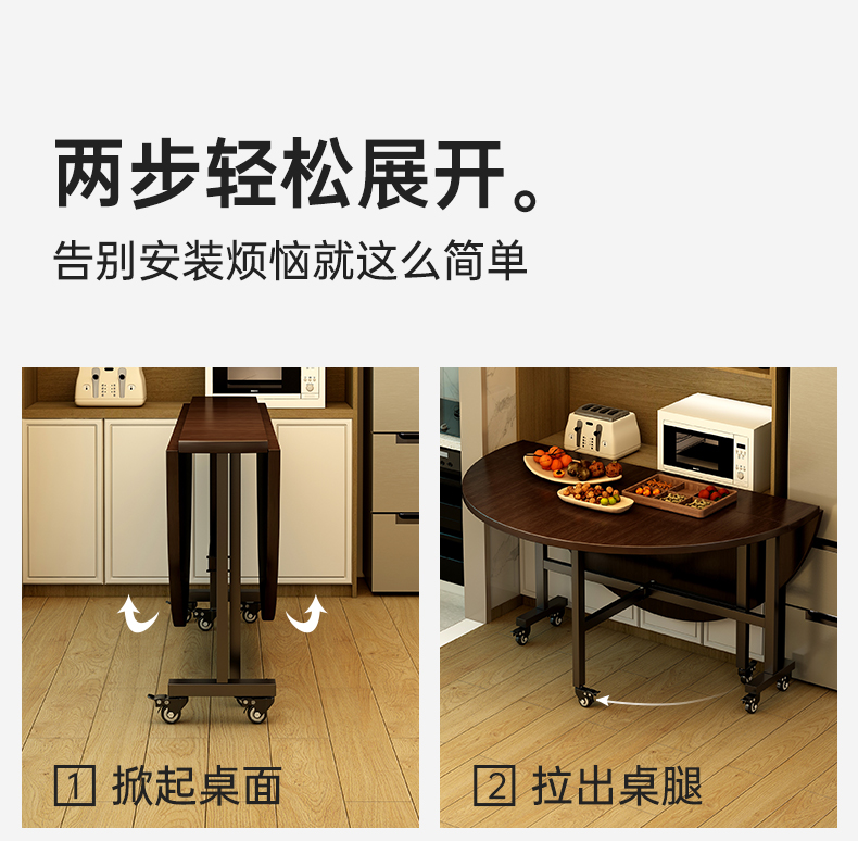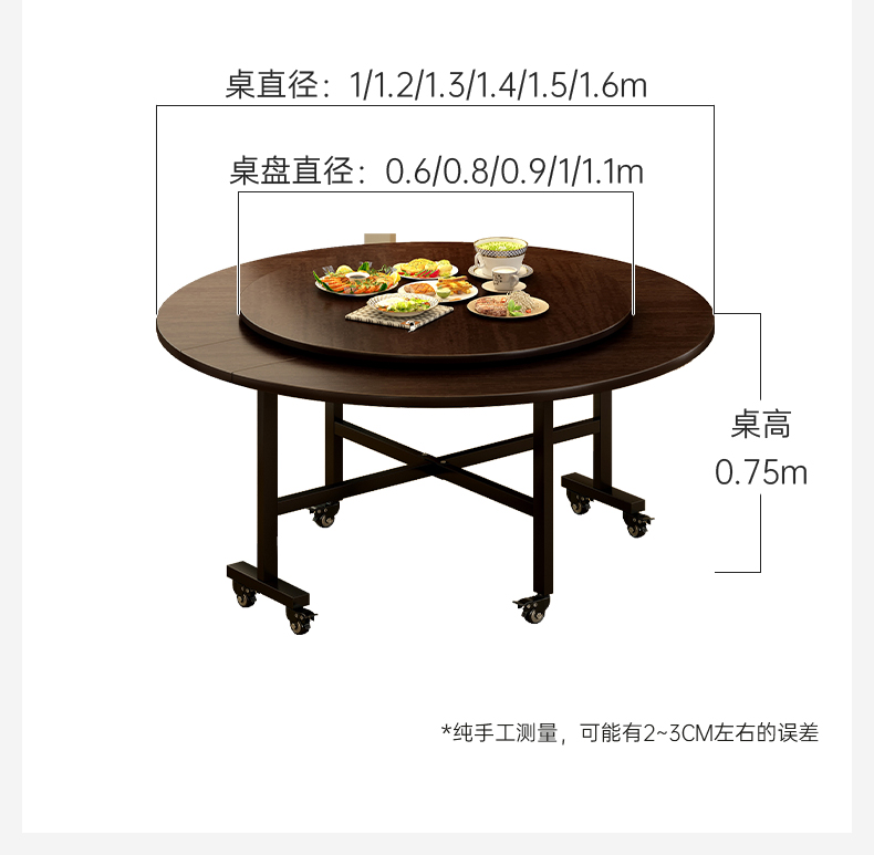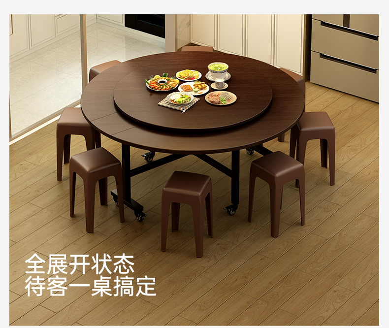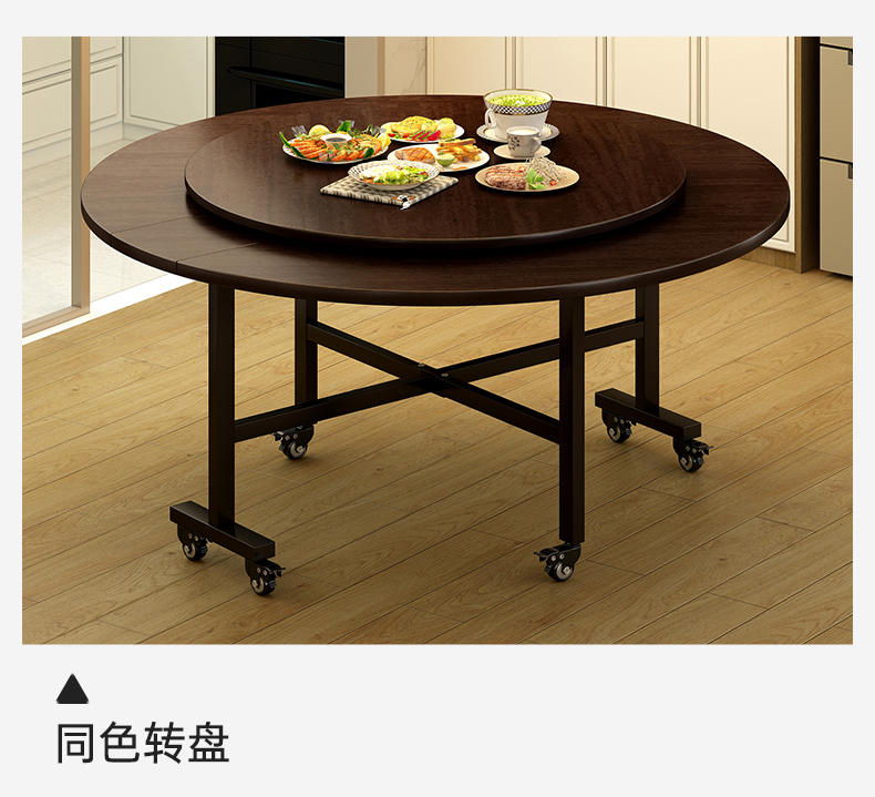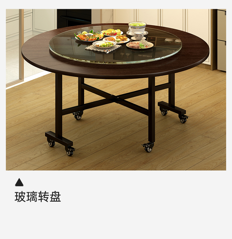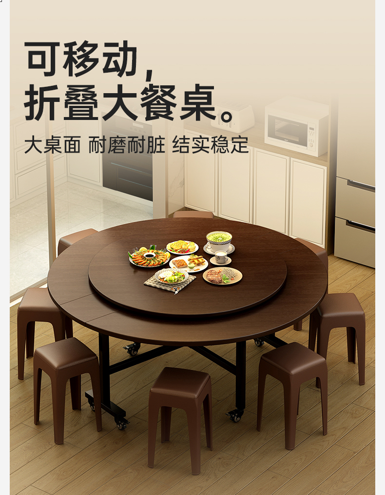 折叠餐桌旋转圆盘可移动多功能客厅聚会带转盘大圆桌家用10人饭桌
