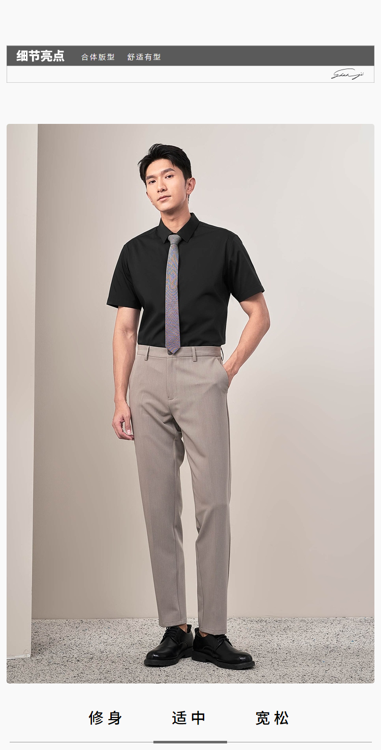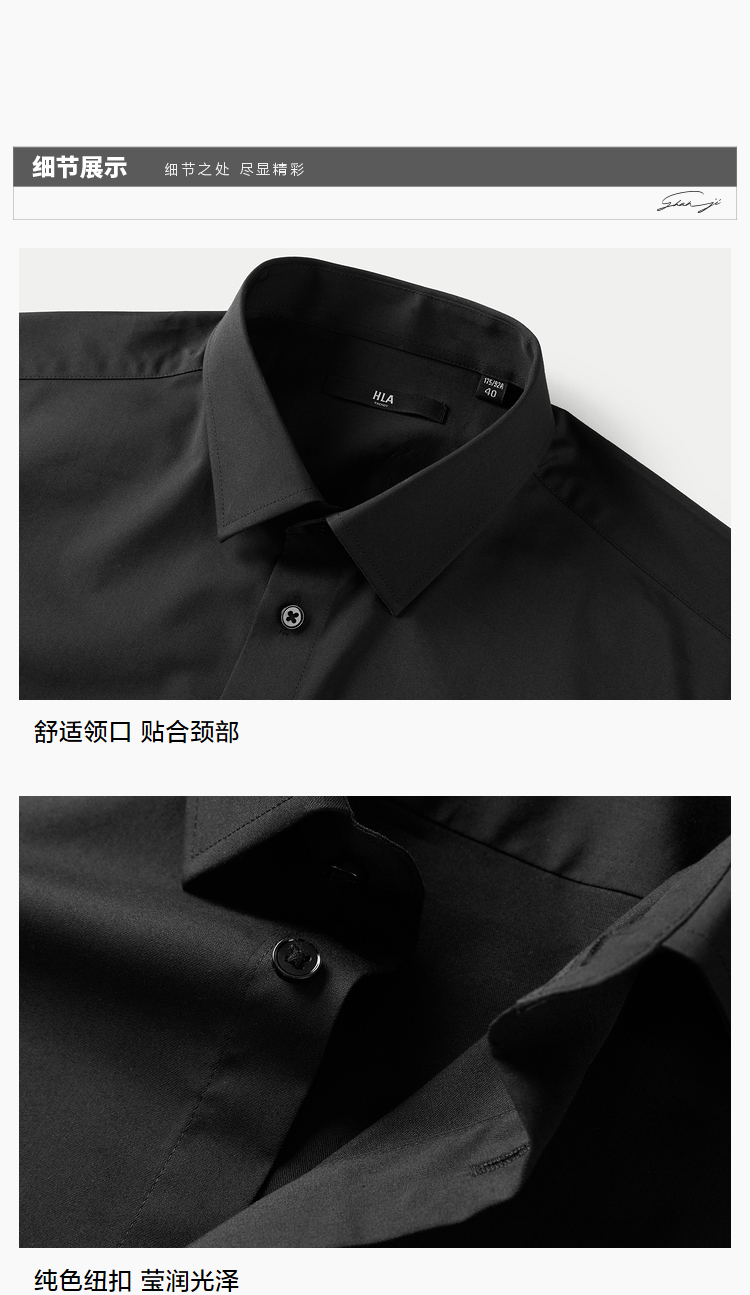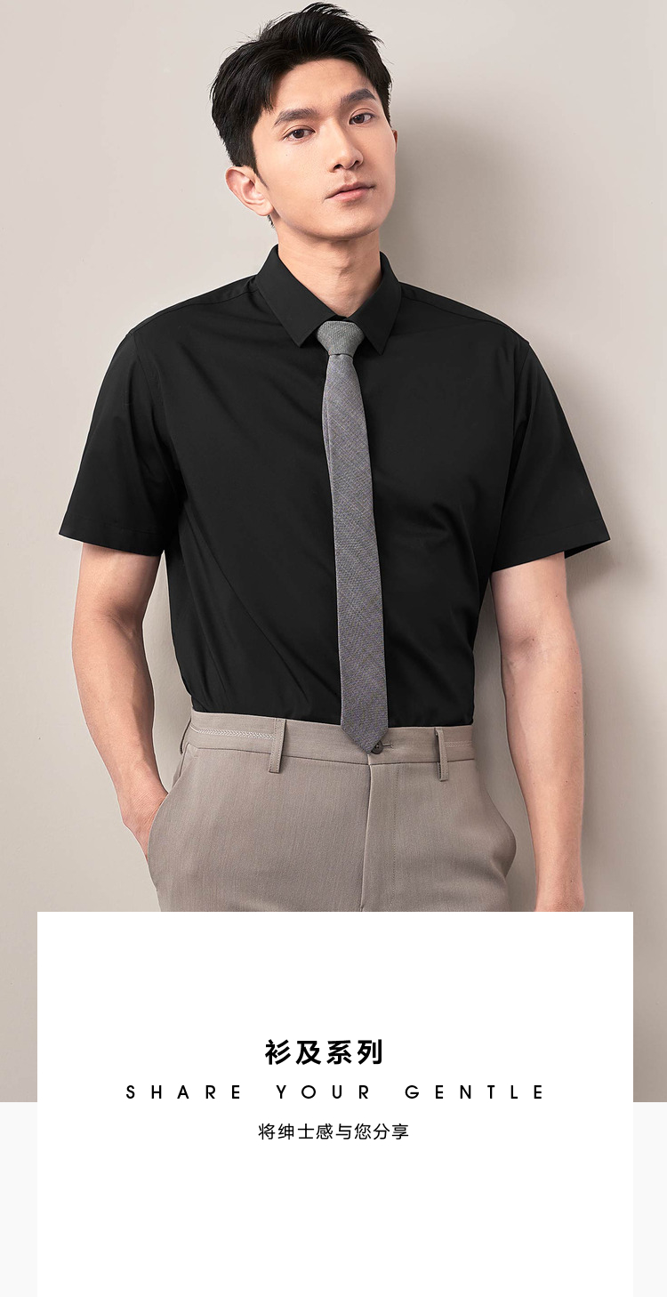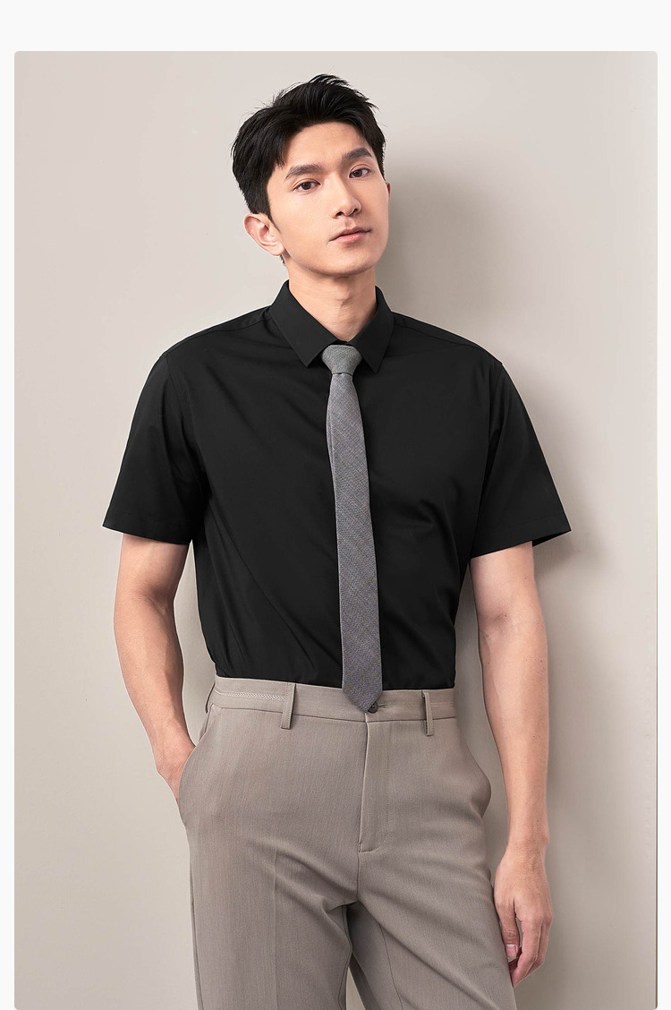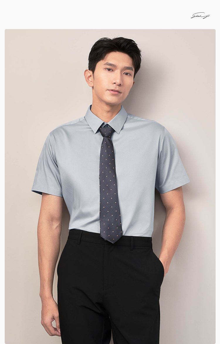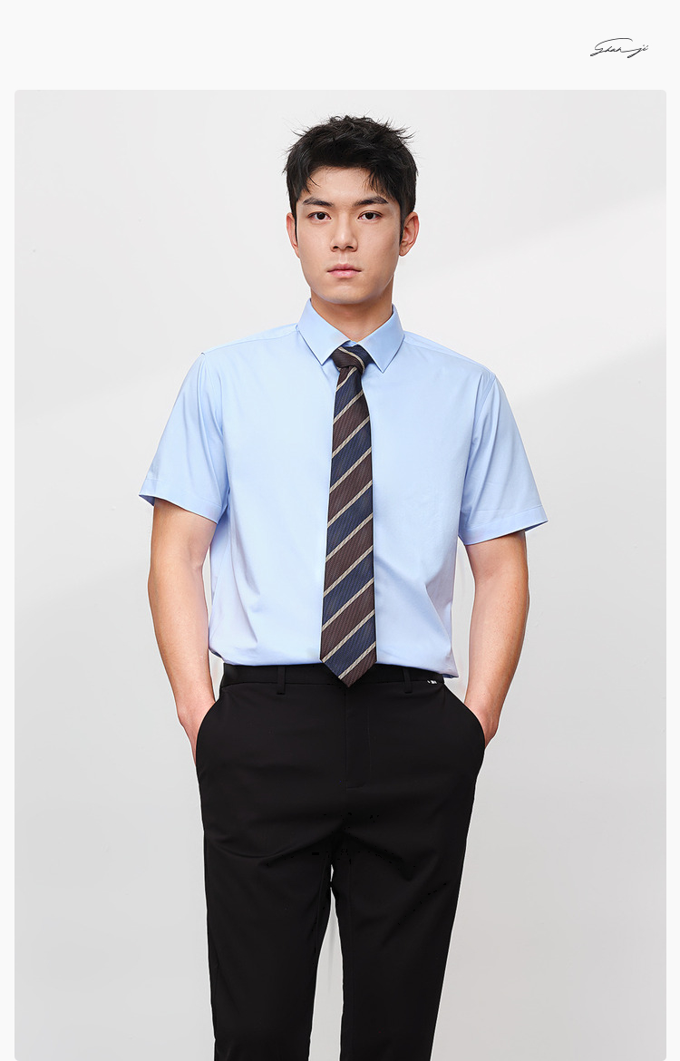 HLA/海澜之家短袖衬衫商务正装2025夏新款免烫纯棉工装衬衣蓝色男