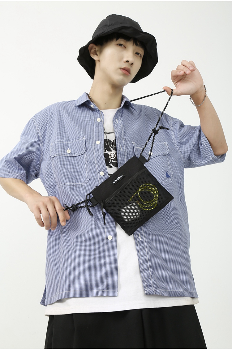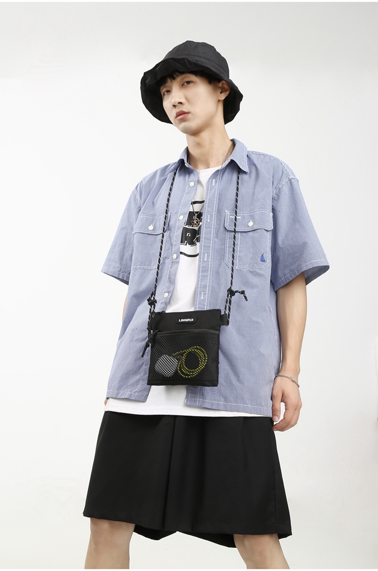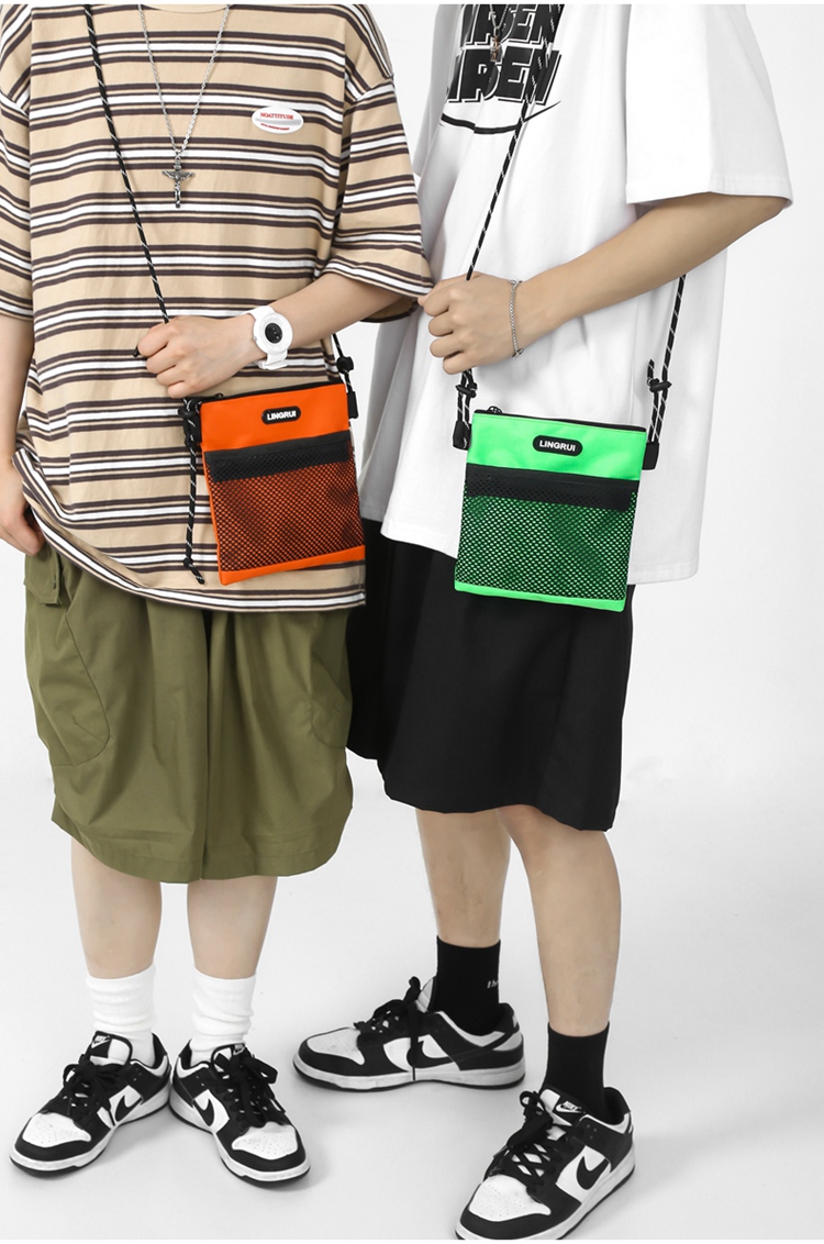 ins潮情侣斜挎小包包女夏网格信封包简约手机包小挎包休闲单肩包