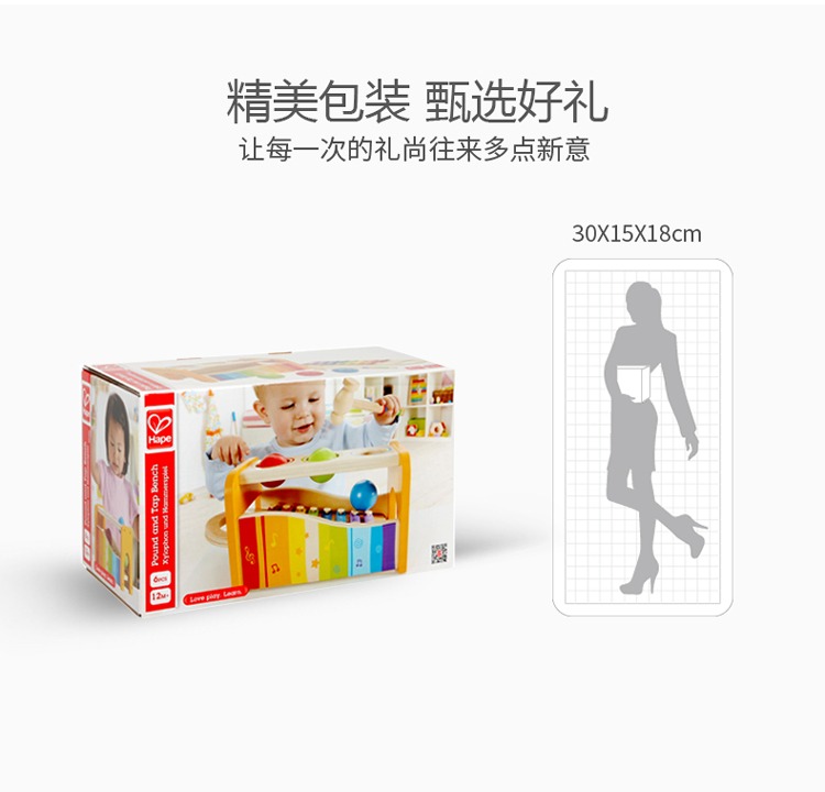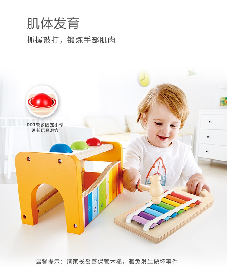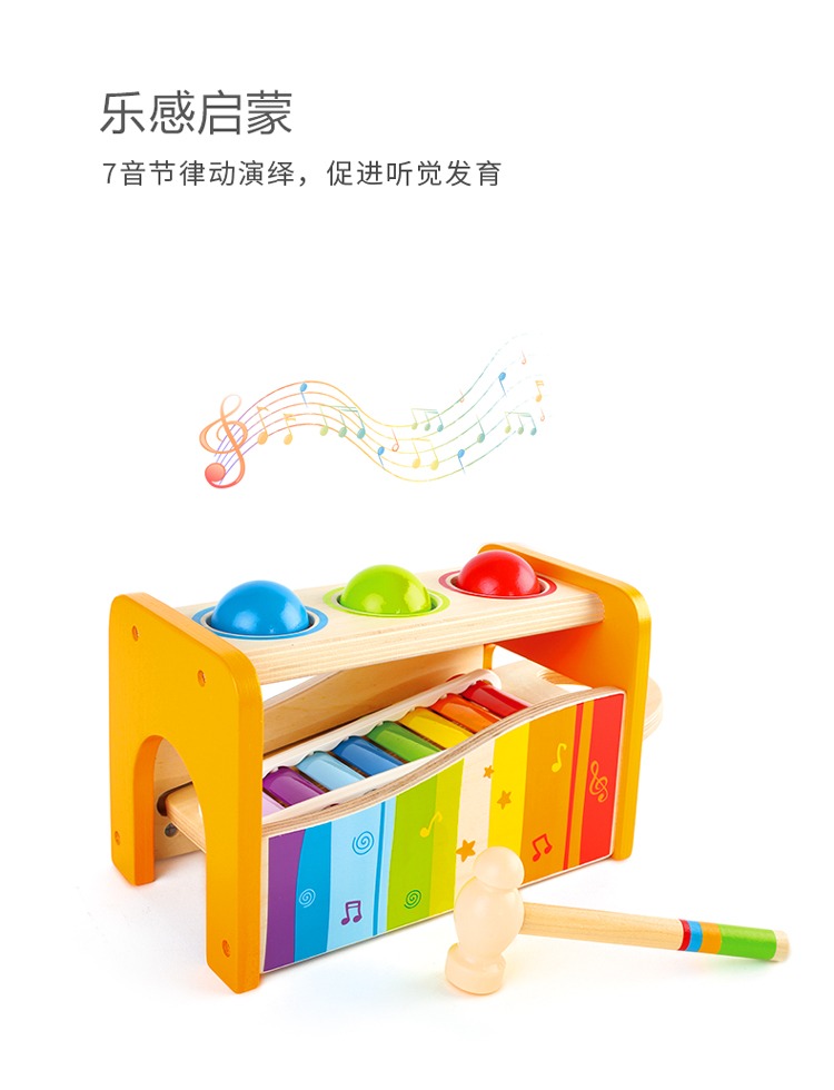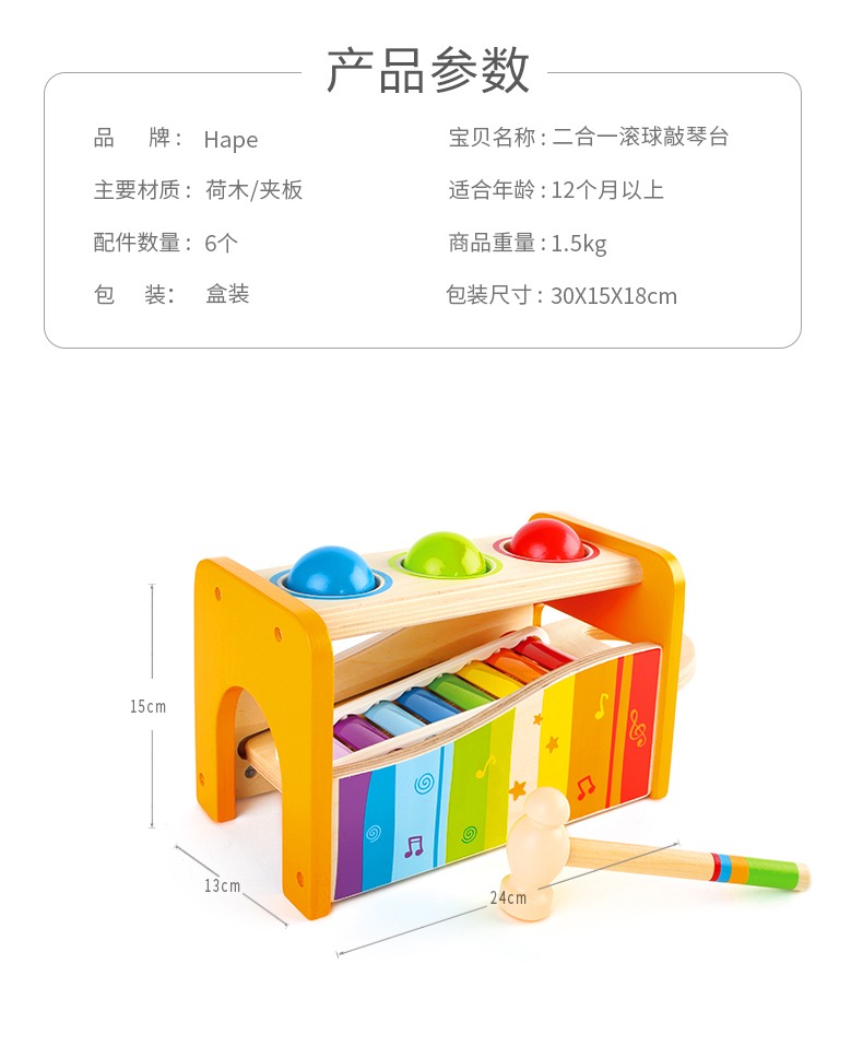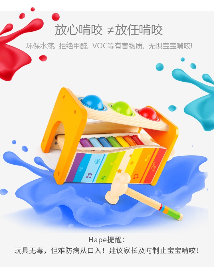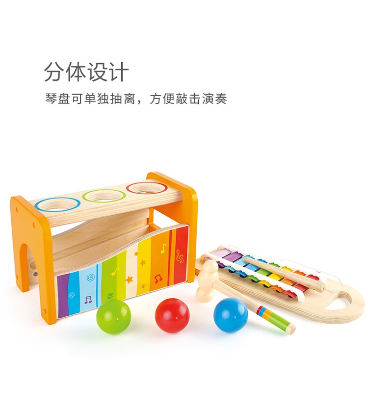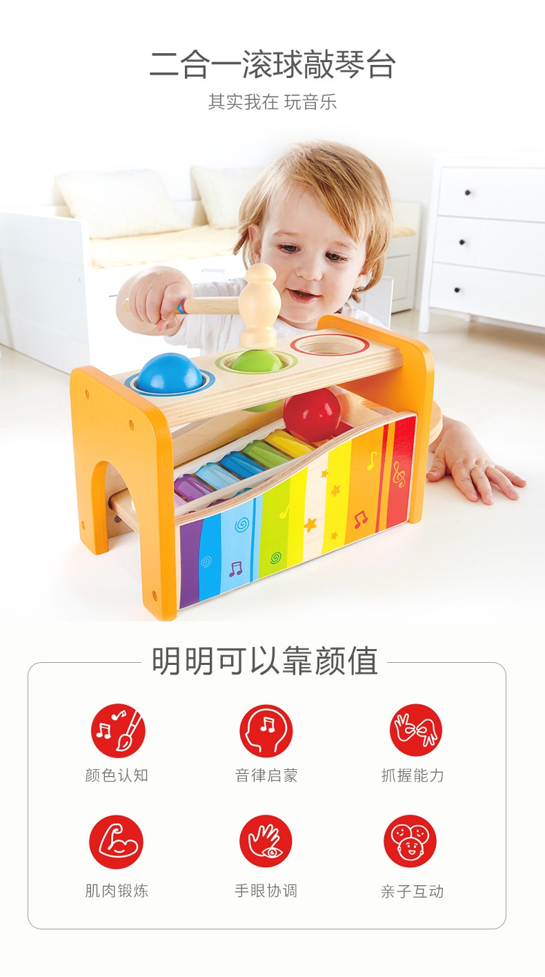 德国Hape儿童益智玩具滚球1-3-6岁宝宝音乐打击乐器敲琴敲木琴