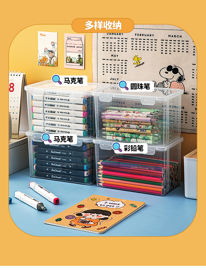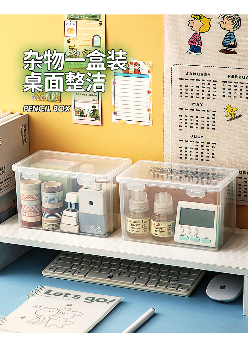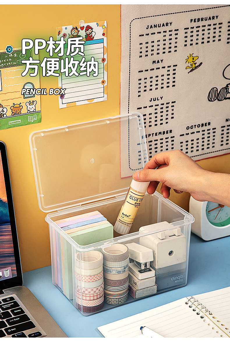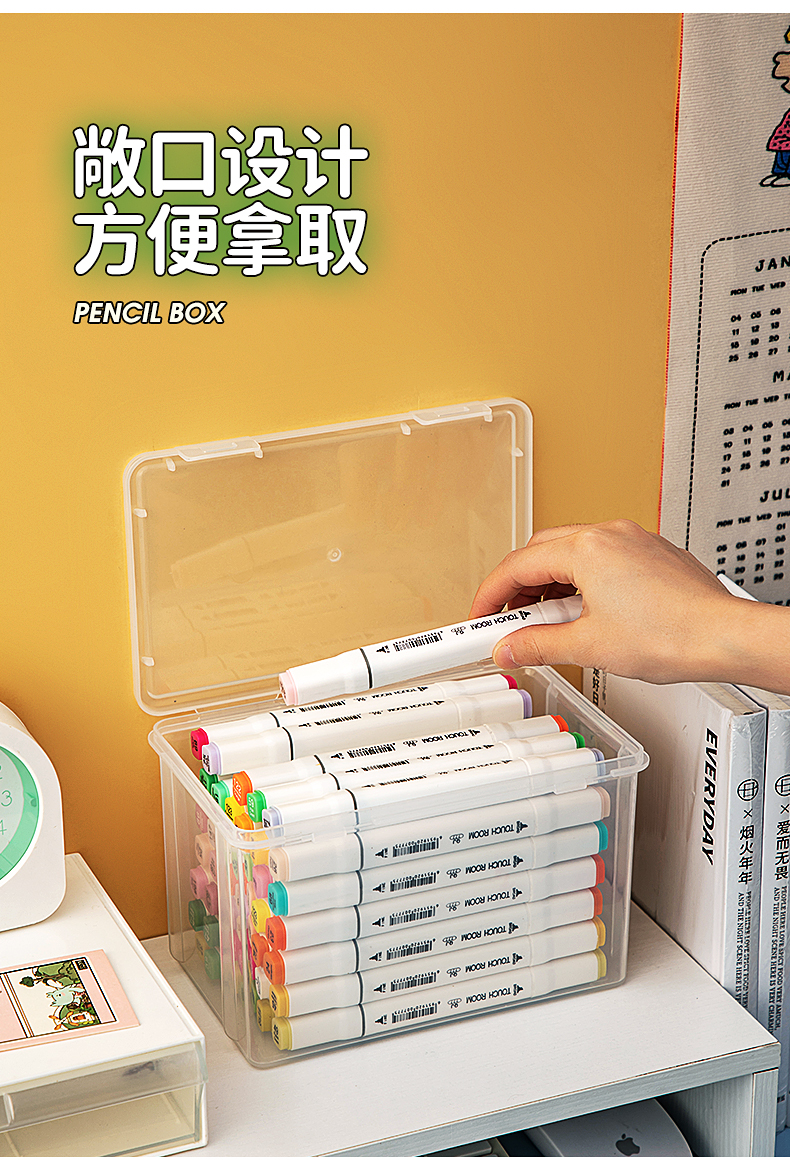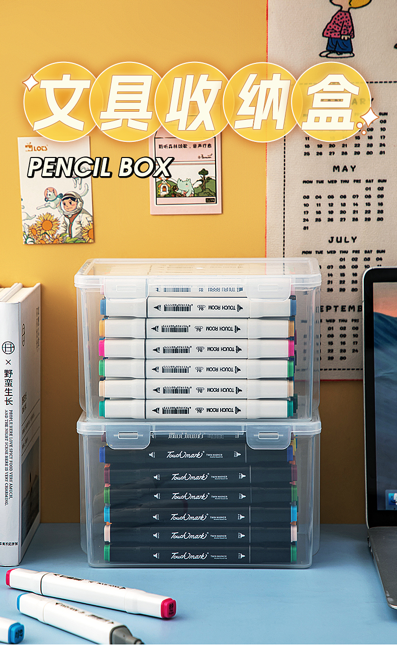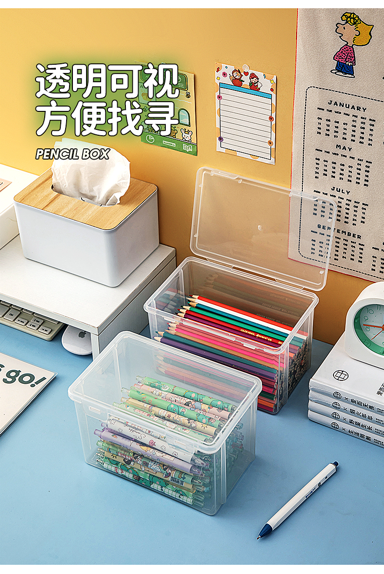 桌面笔盒收纳盒长方形办公桌整理透明铅笔盒马克笔大容量文具盒子