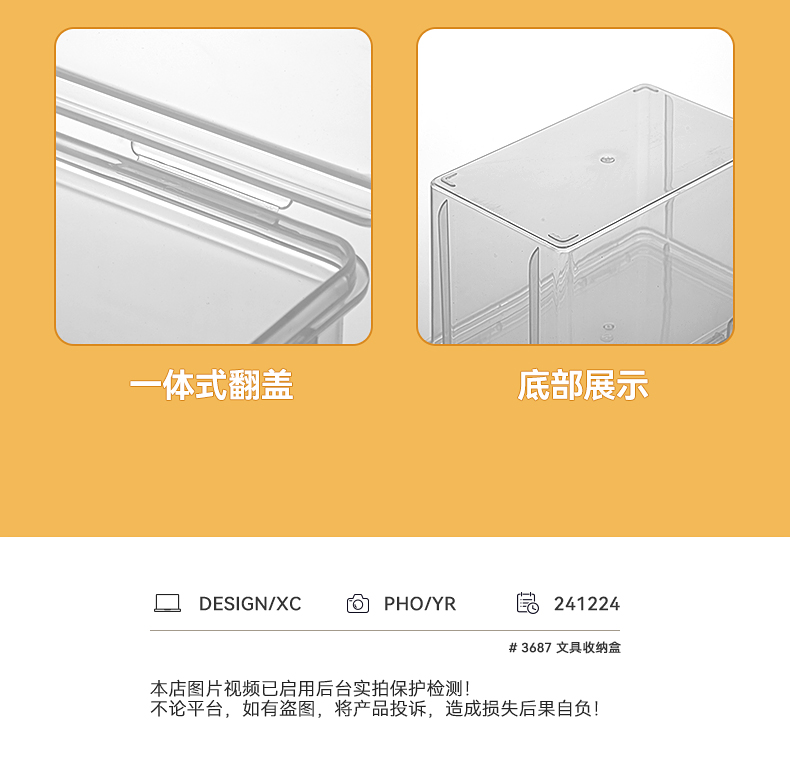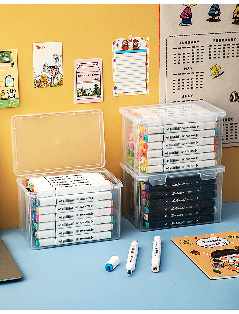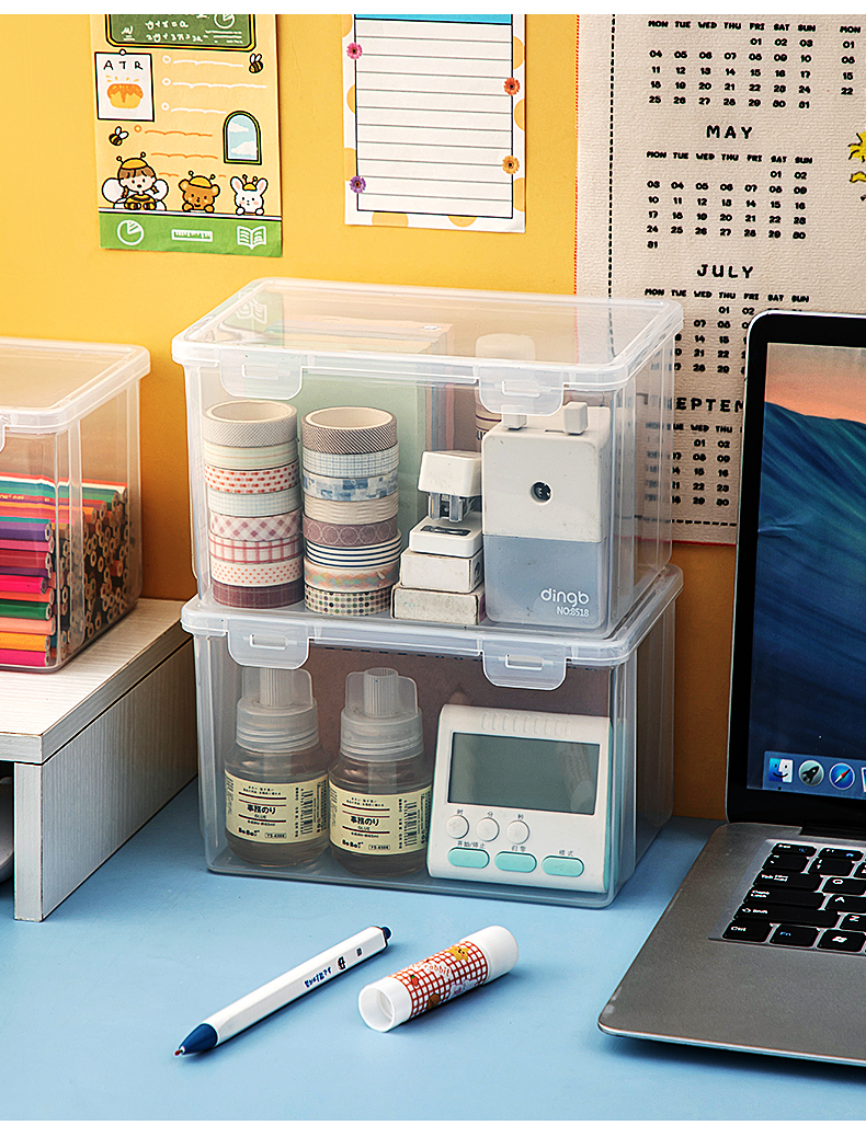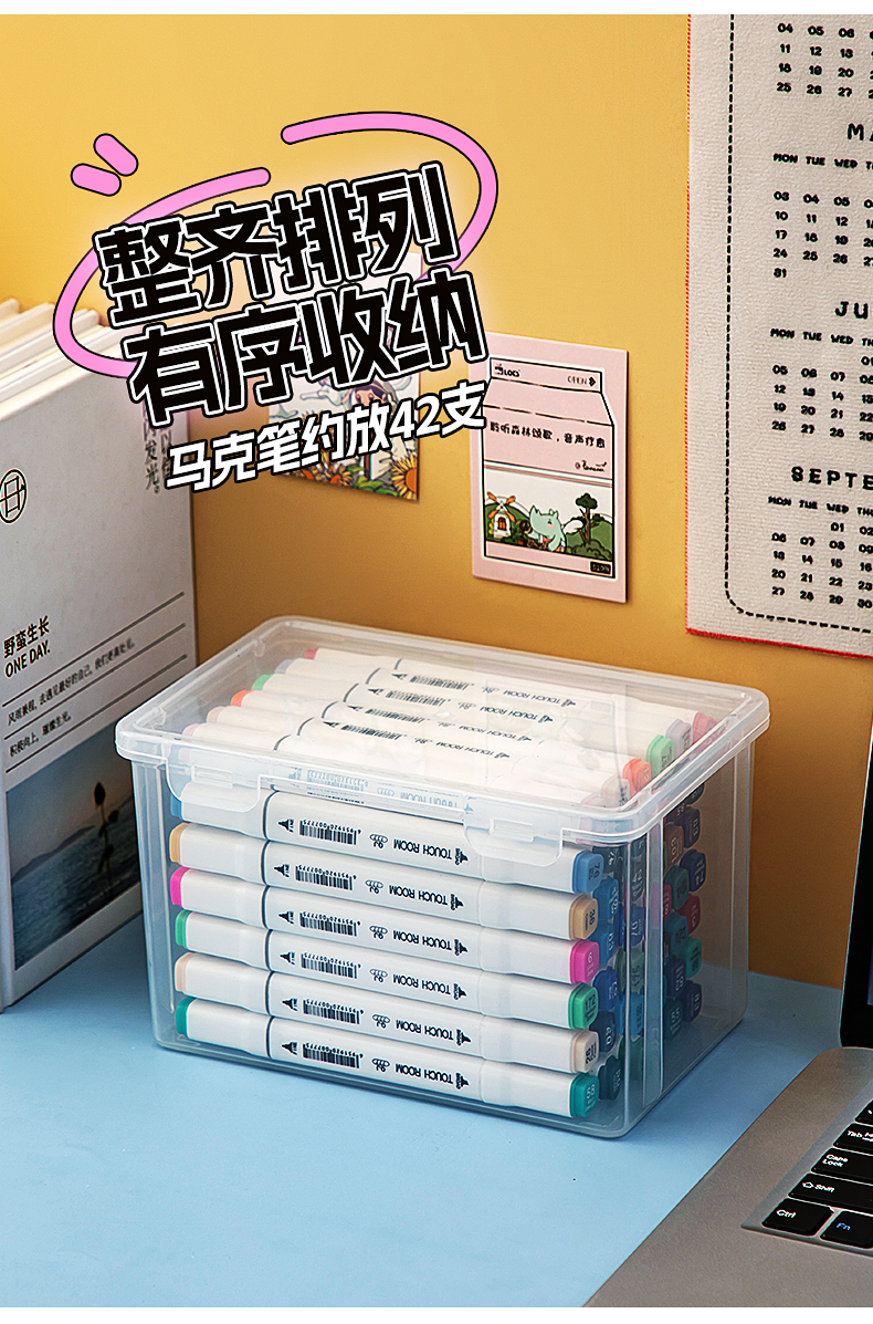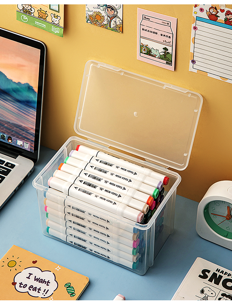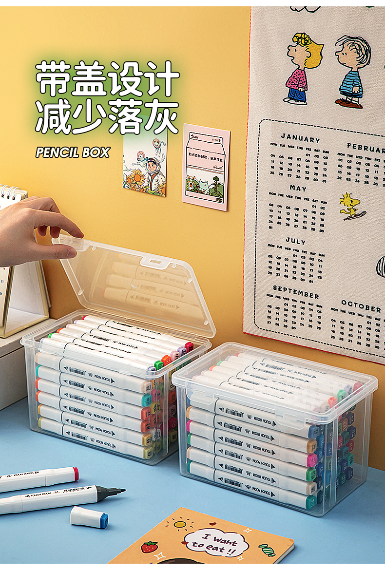 桌面笔盒收纳盒长方形办公桌整理透明铅笔盒马克笔大容量文具盒子