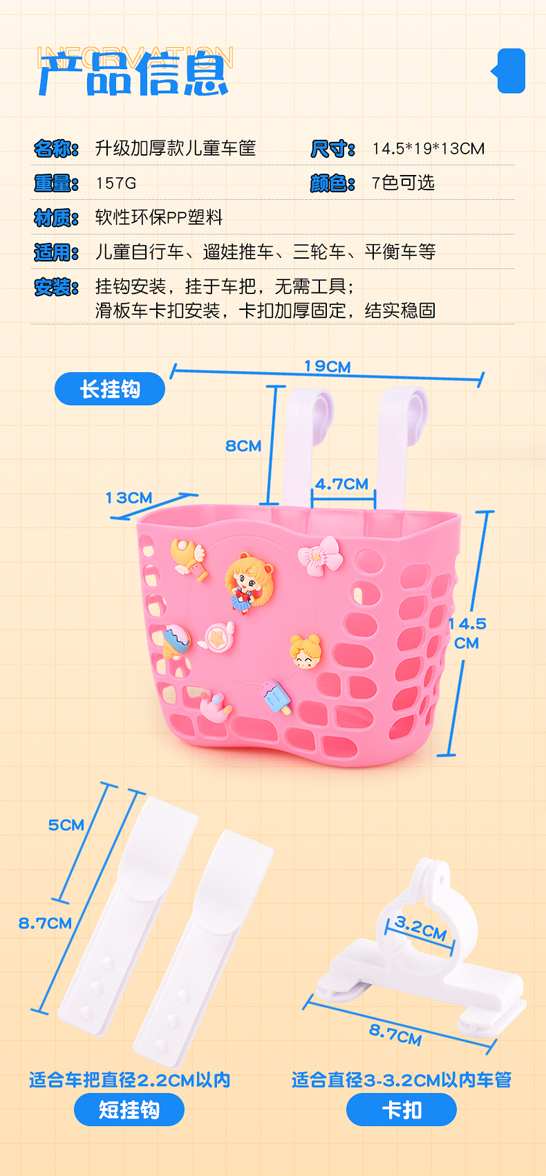 儿童自行车车筐滑板车平衡车筐篓童车塑料车篮子通用配件大全