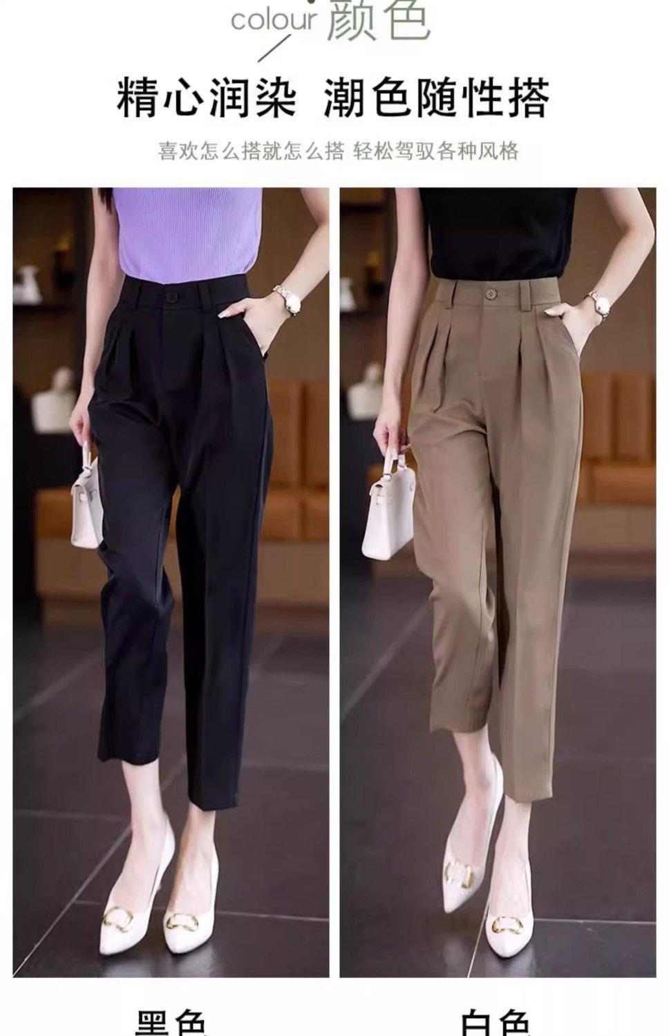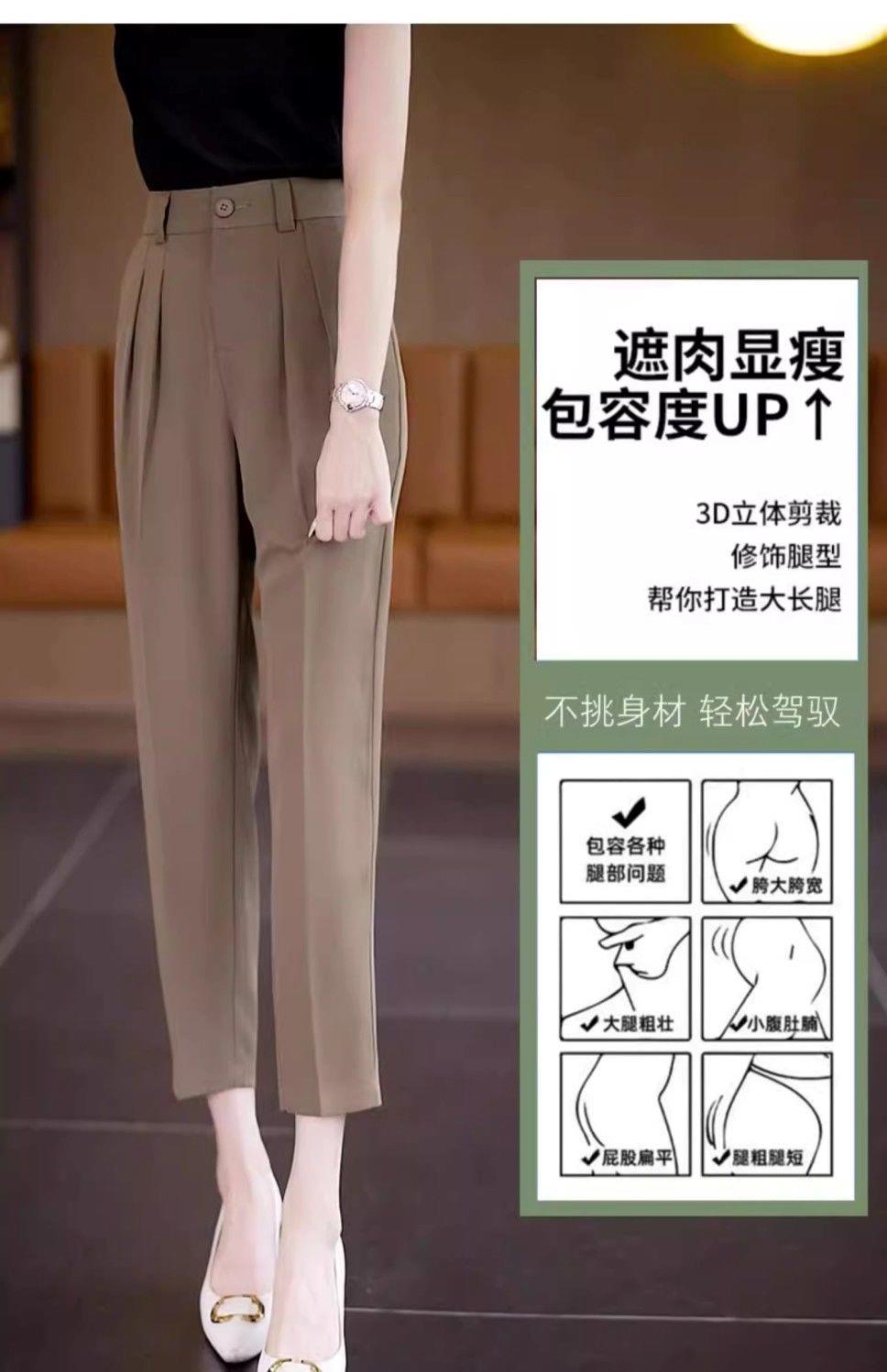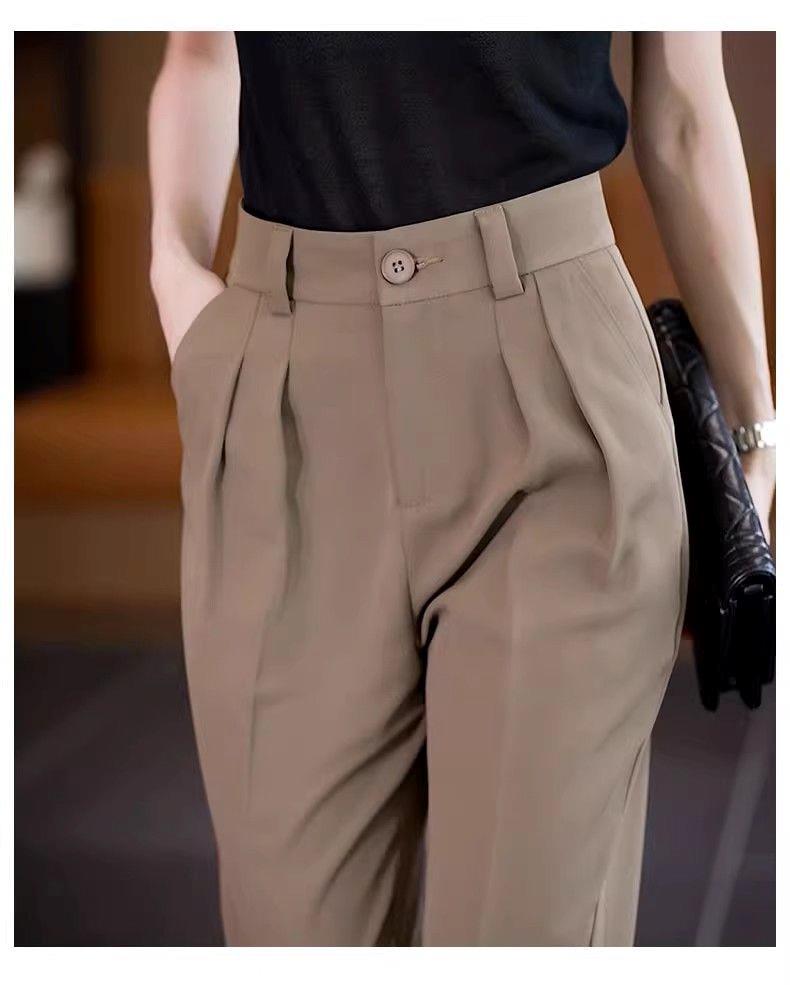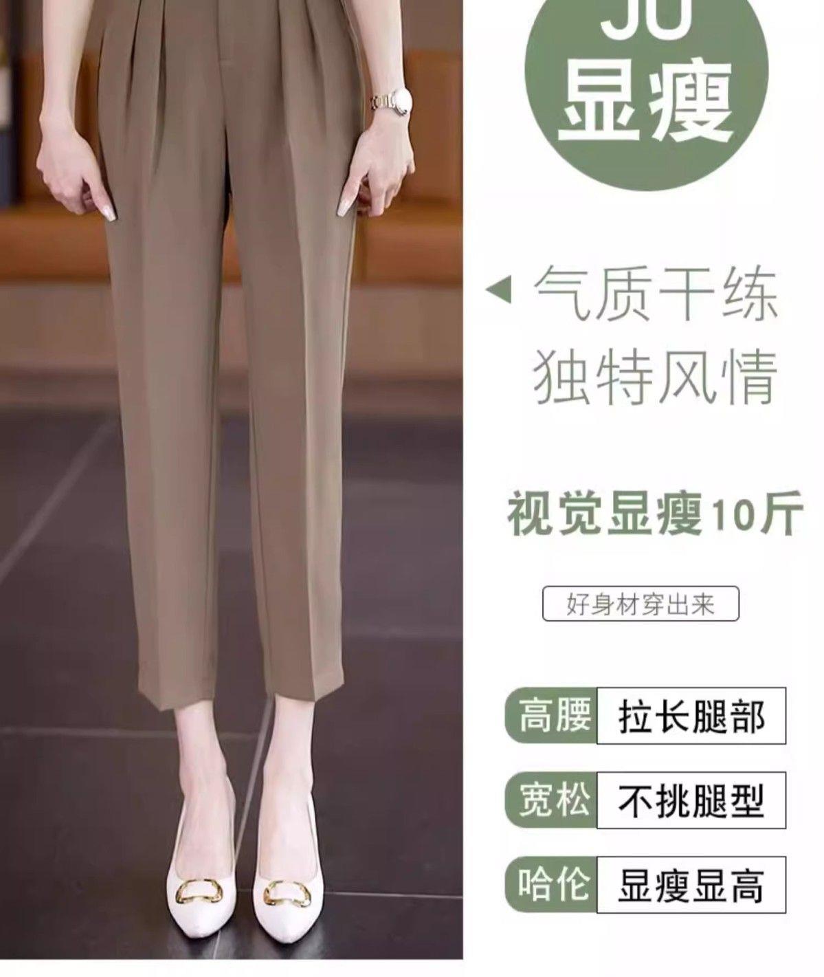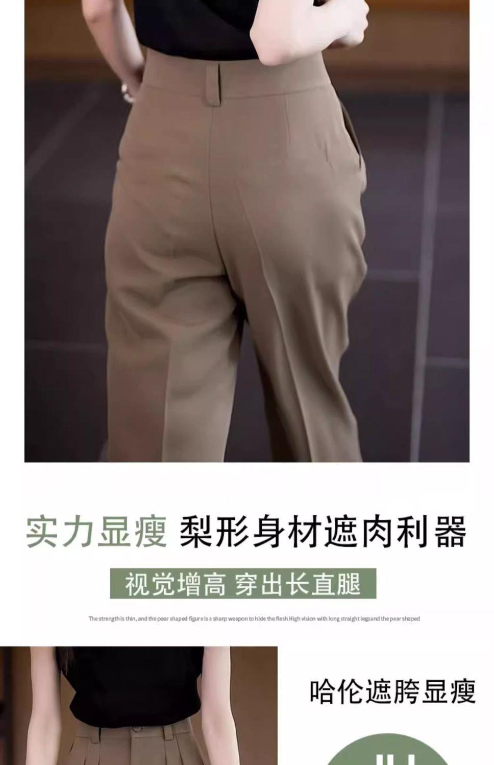 哈伦裤女夏季职业女裤高腰西装裤2025新款卡其色九分直筒烟管裤子