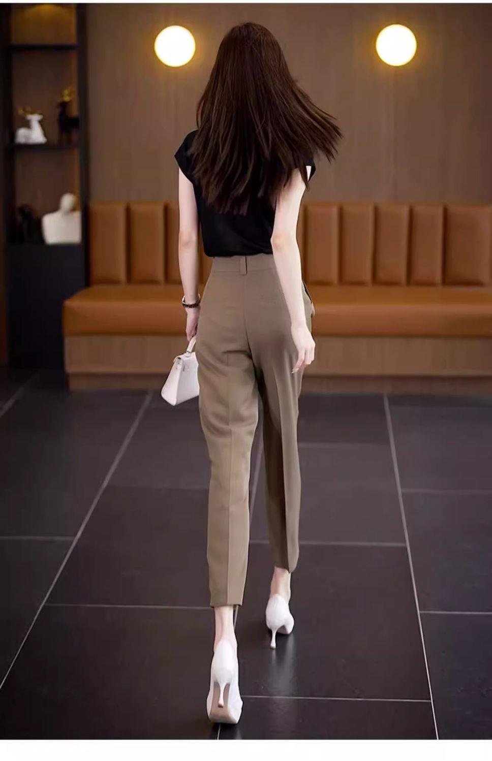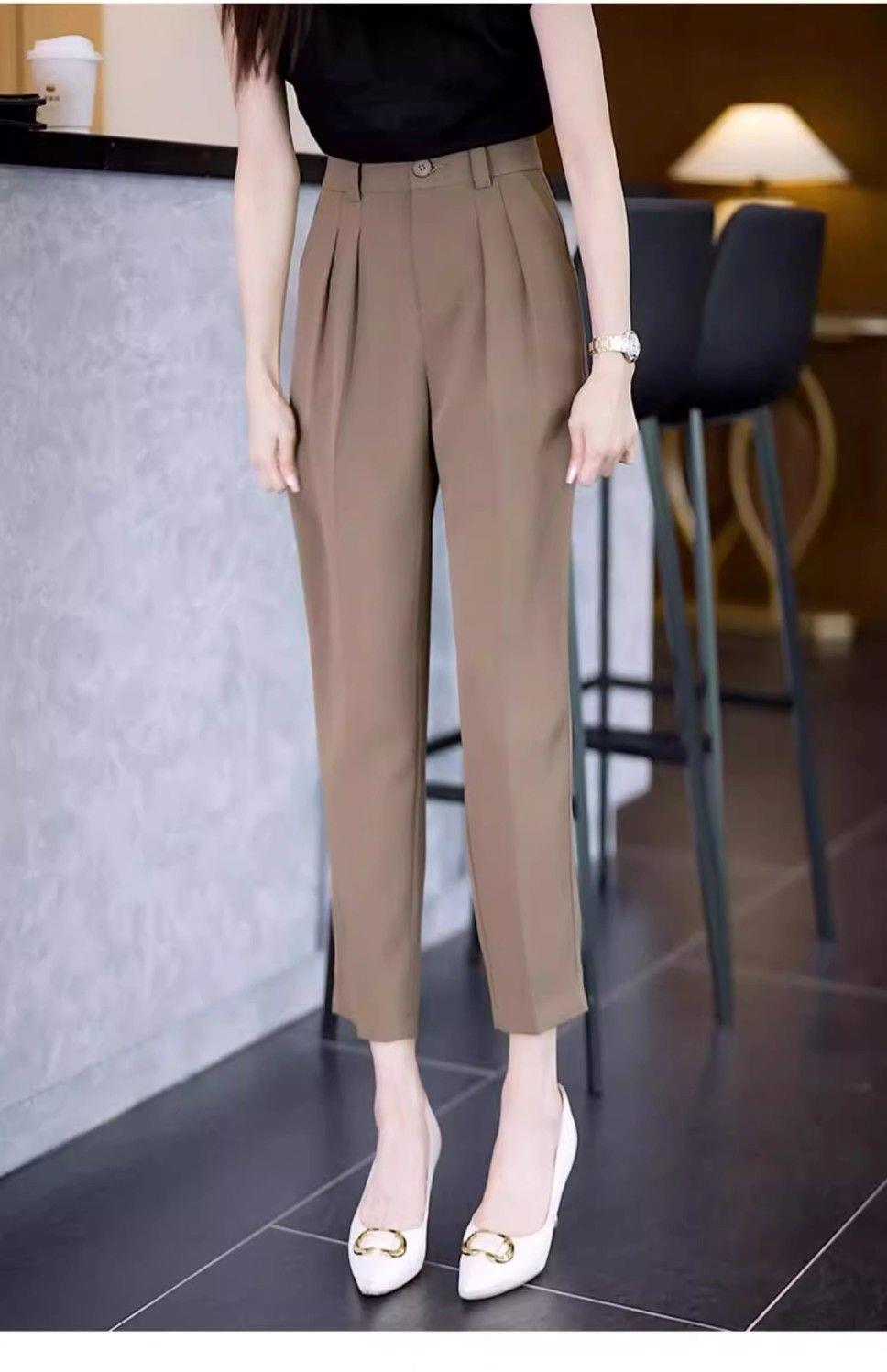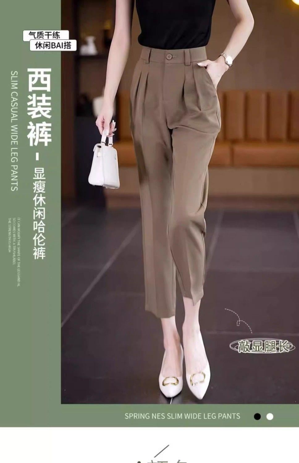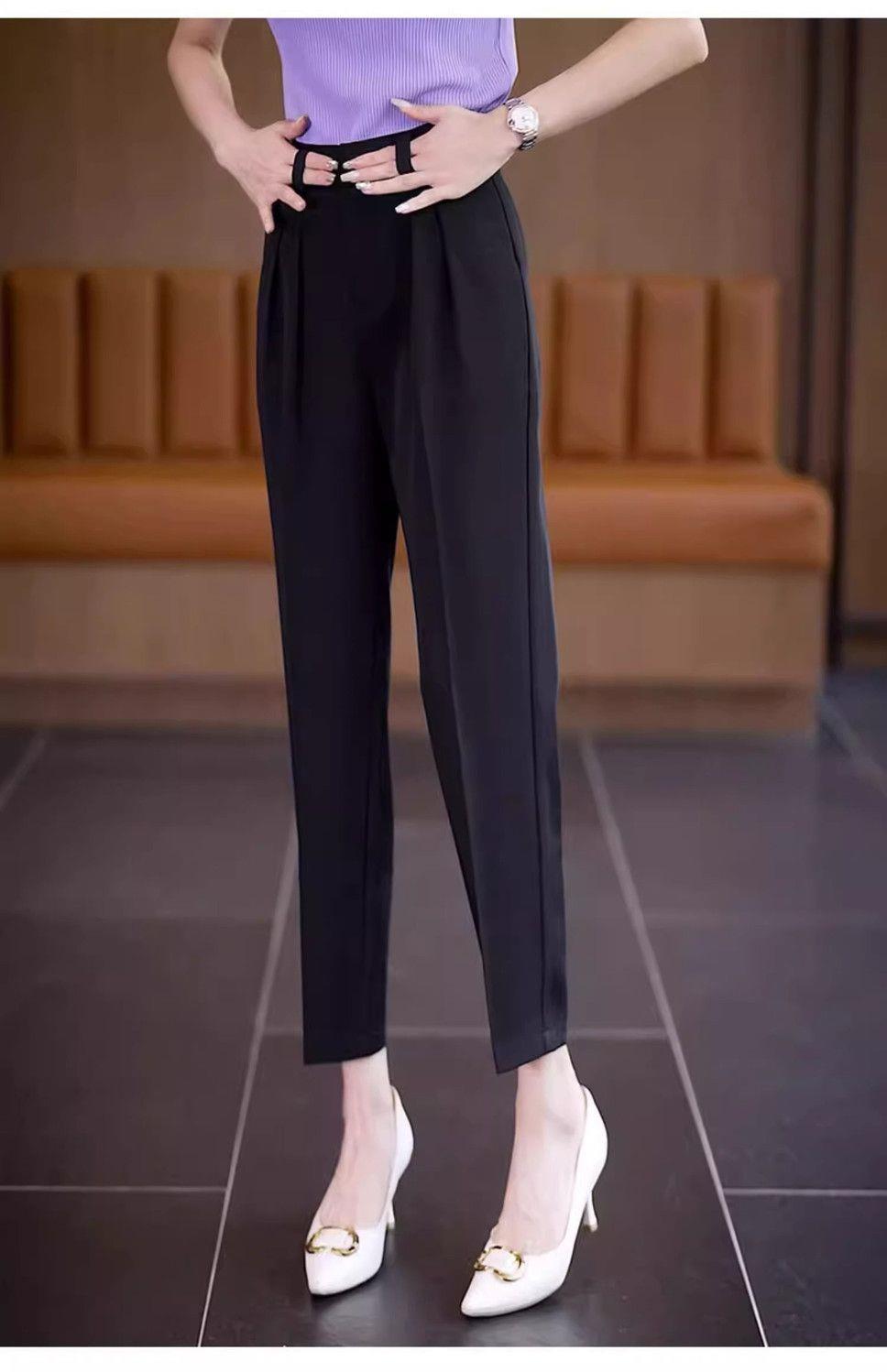 哈伦裤女夏季职业女裤高腰西装裤2025新款卡其色九分直筒烟管裤子
