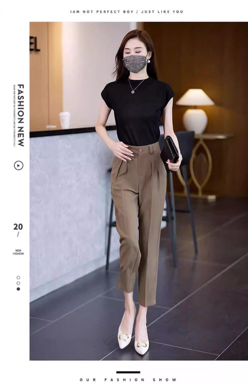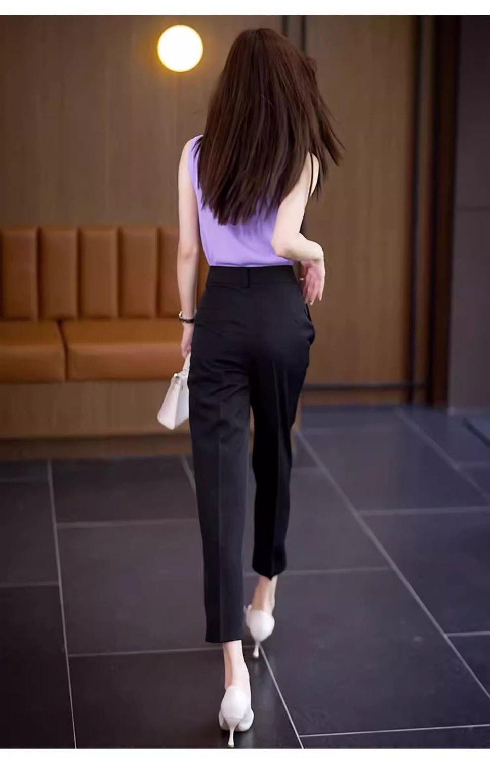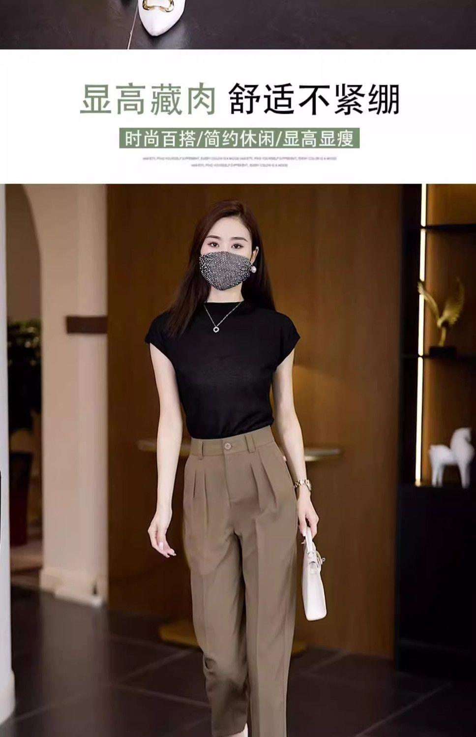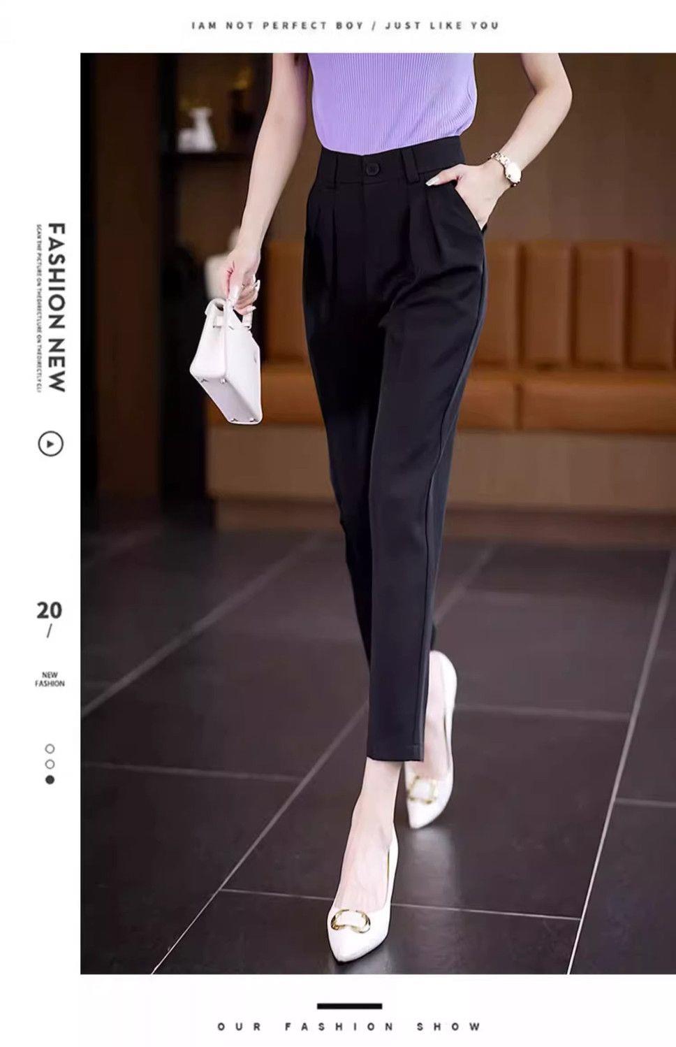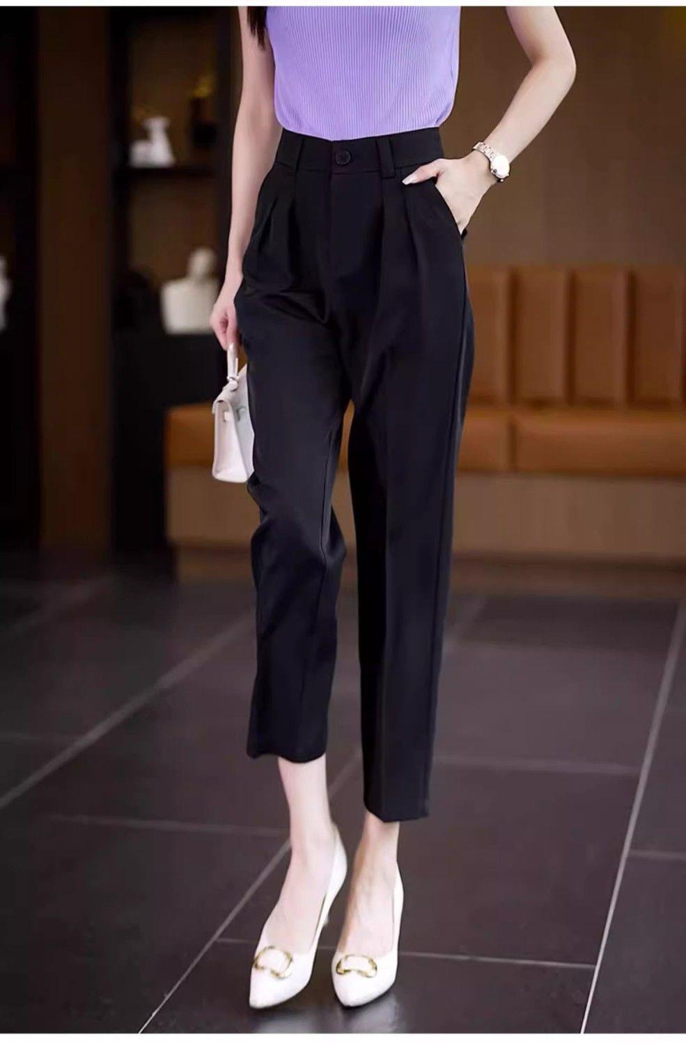 哈伦裤女夏季职业女裤高腰西装裤2025新款卡其色九分直筒烟管裤子