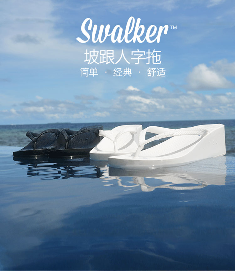 swalker坡跟厚底人字拖女外穿夏高跟夹脚休闲拖鞋度假沙滩松糕