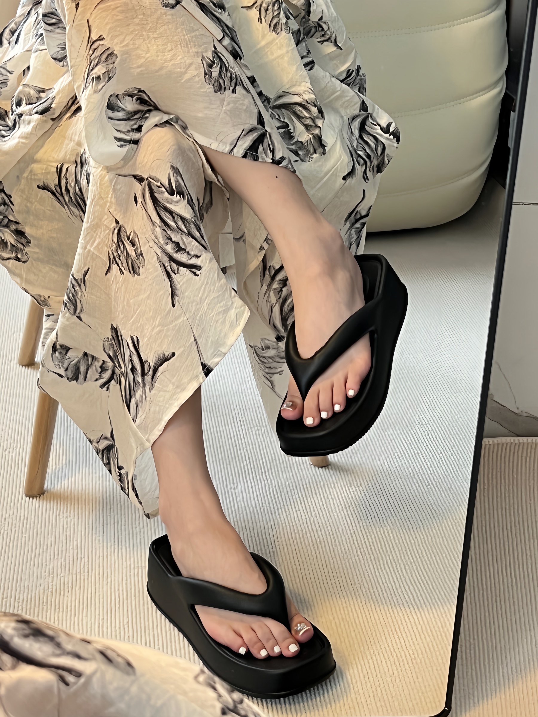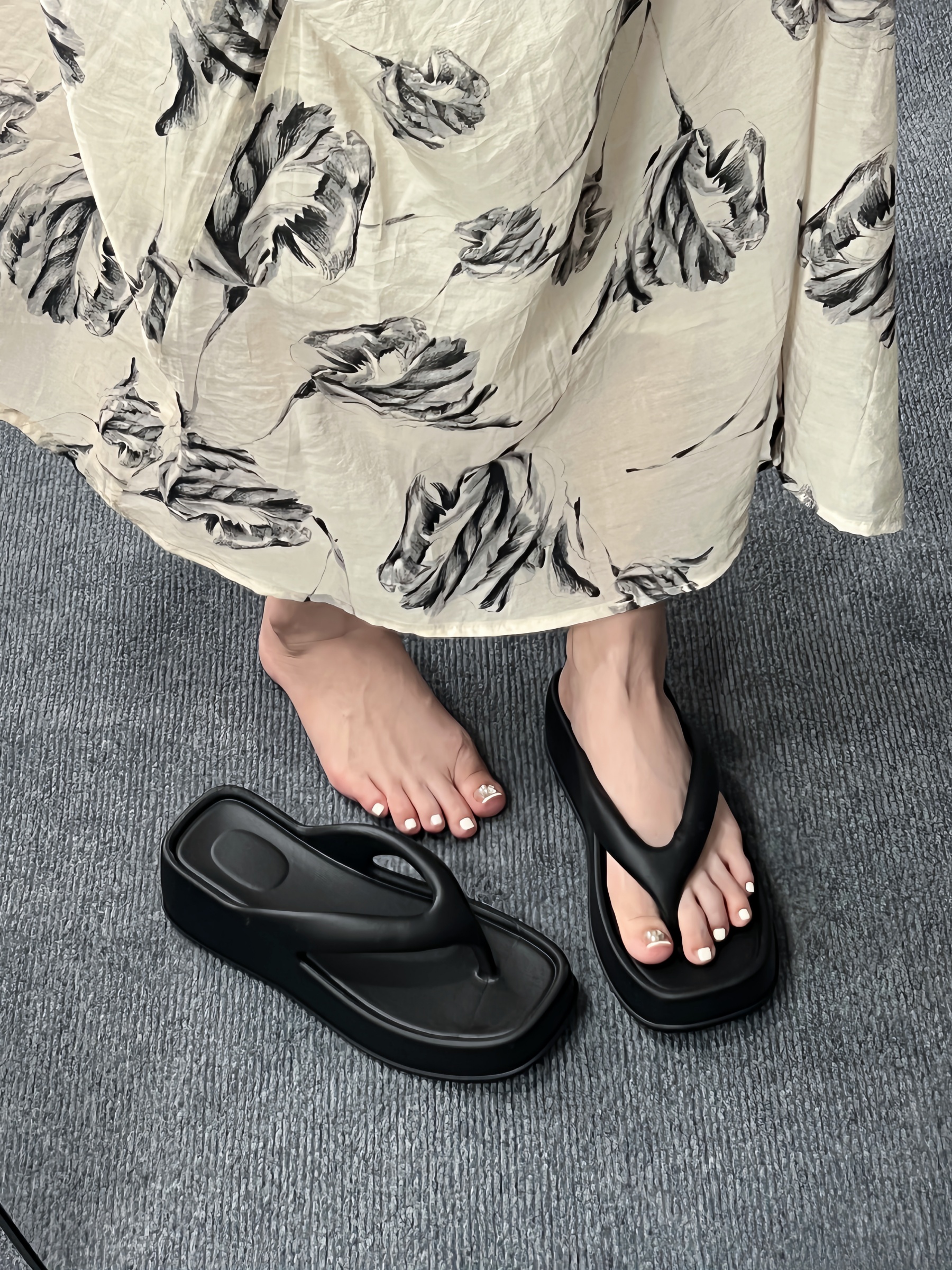 陈气泡 厚底人字拖女款纯色防滑耐磨高跟凉拖鞋EVA防臭外穿女鞋夏