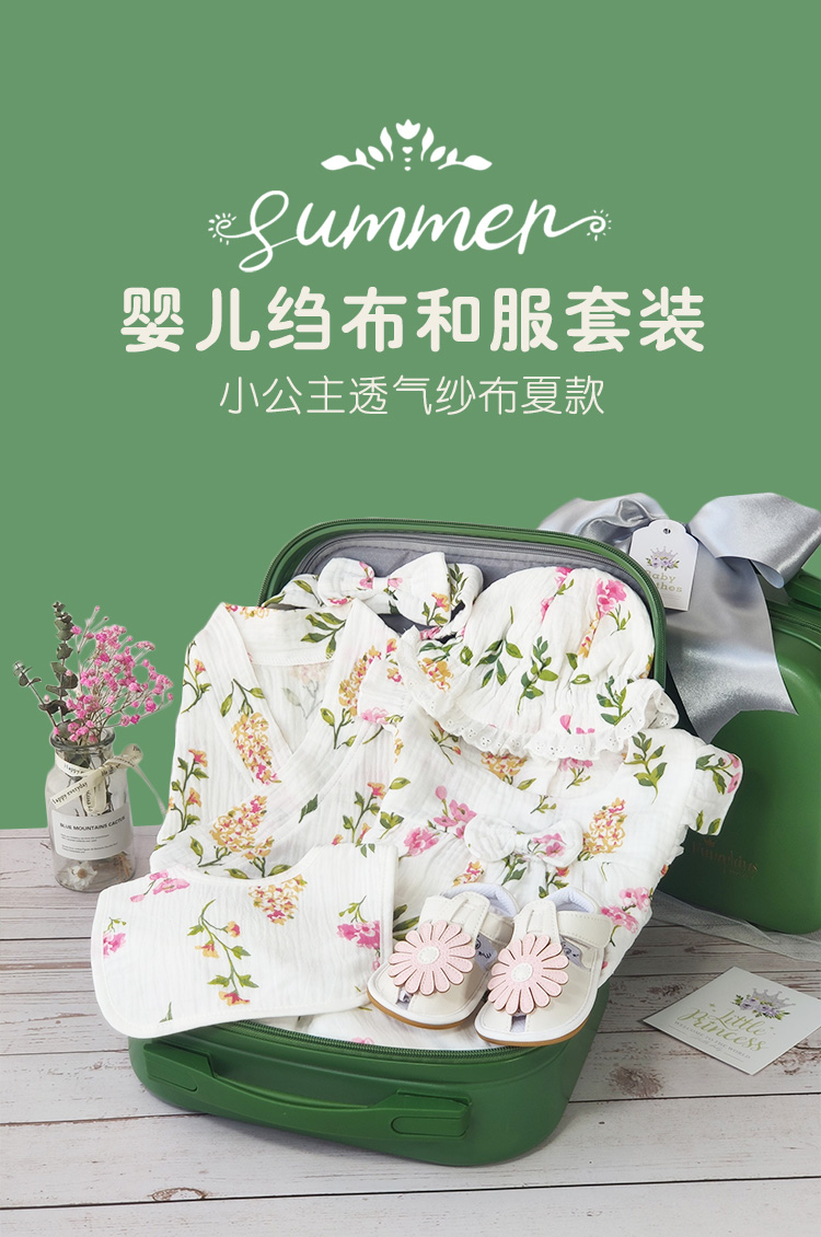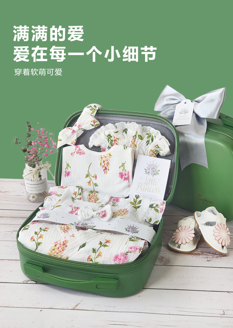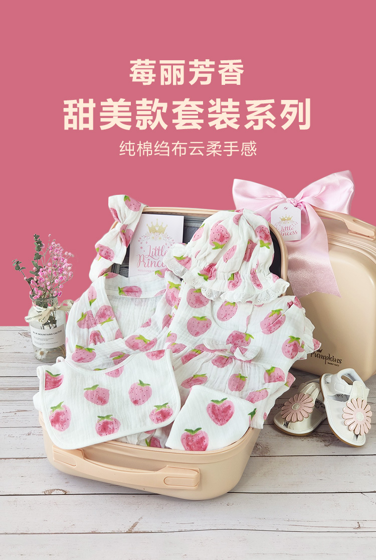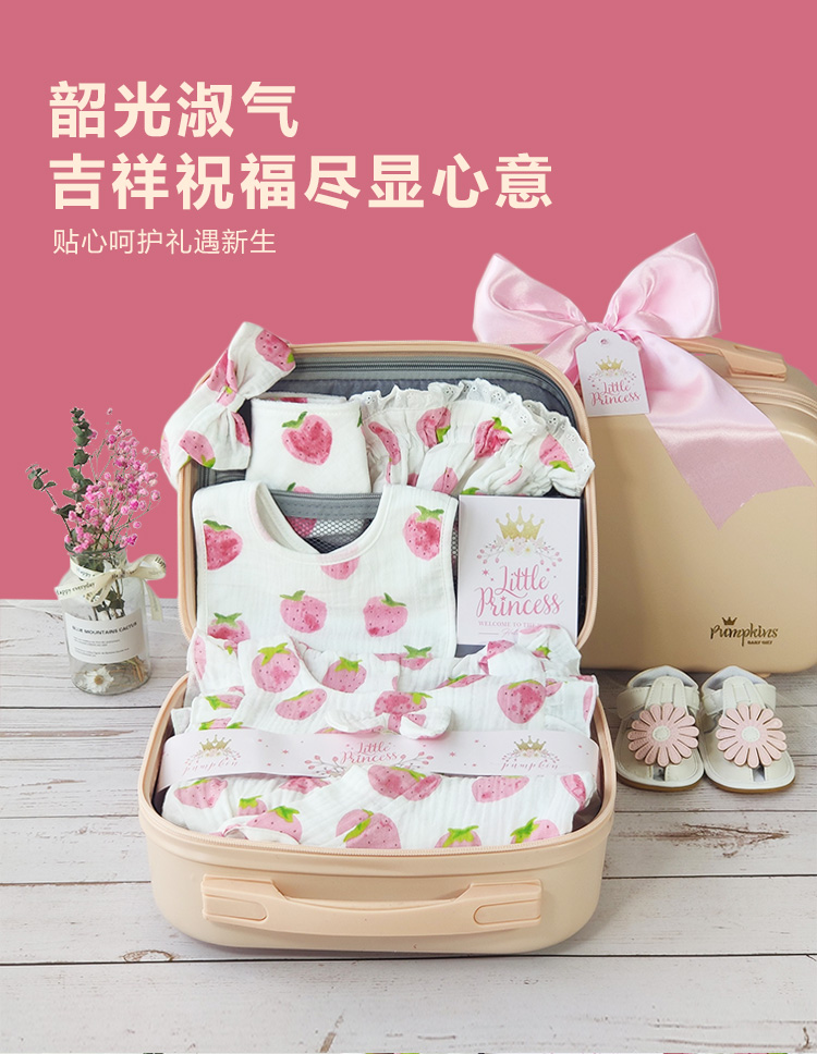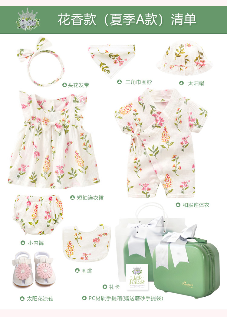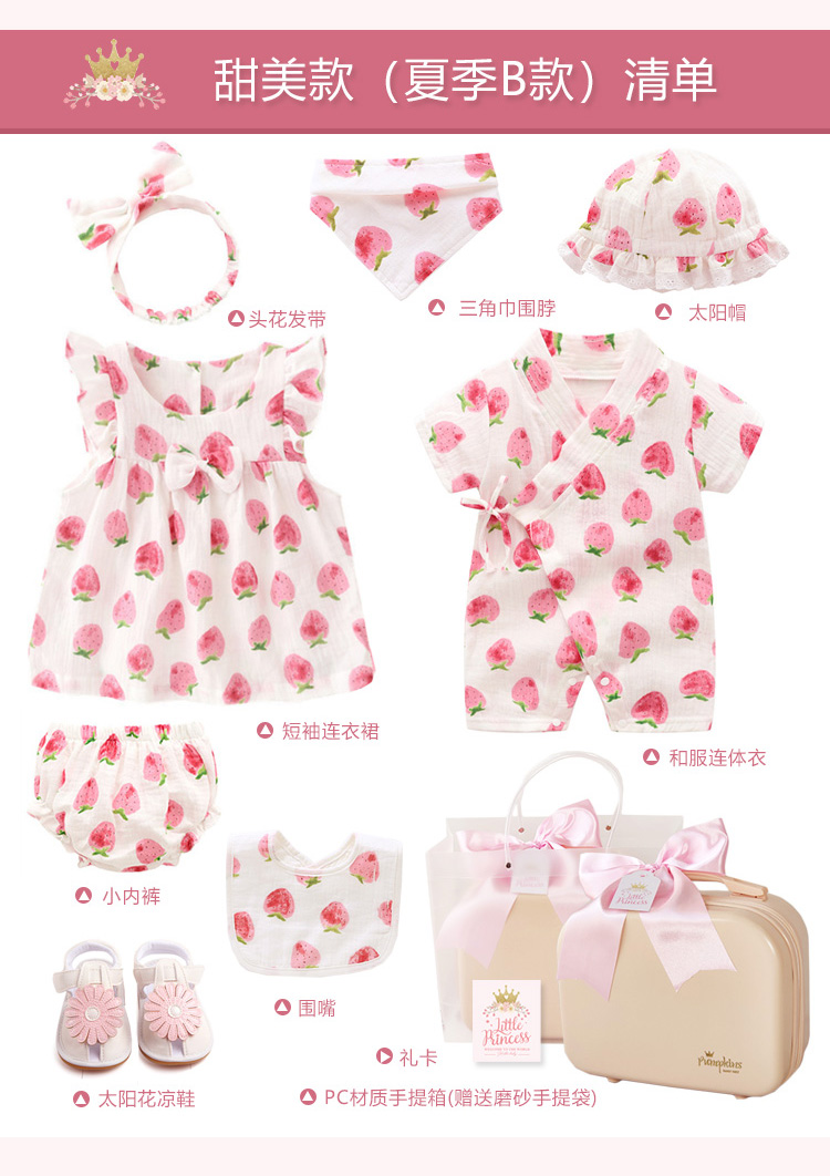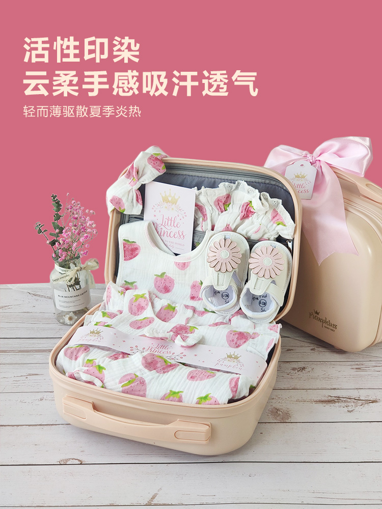 婴儿礼盒纯全棉绉纱布清凉夏季款粉色宝宝0-1岁新生儿套服装礼物