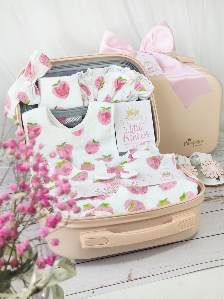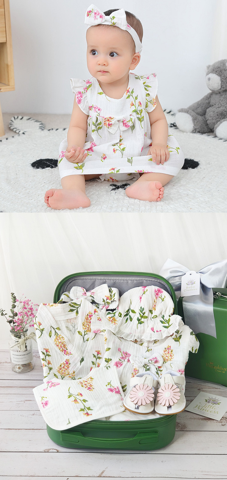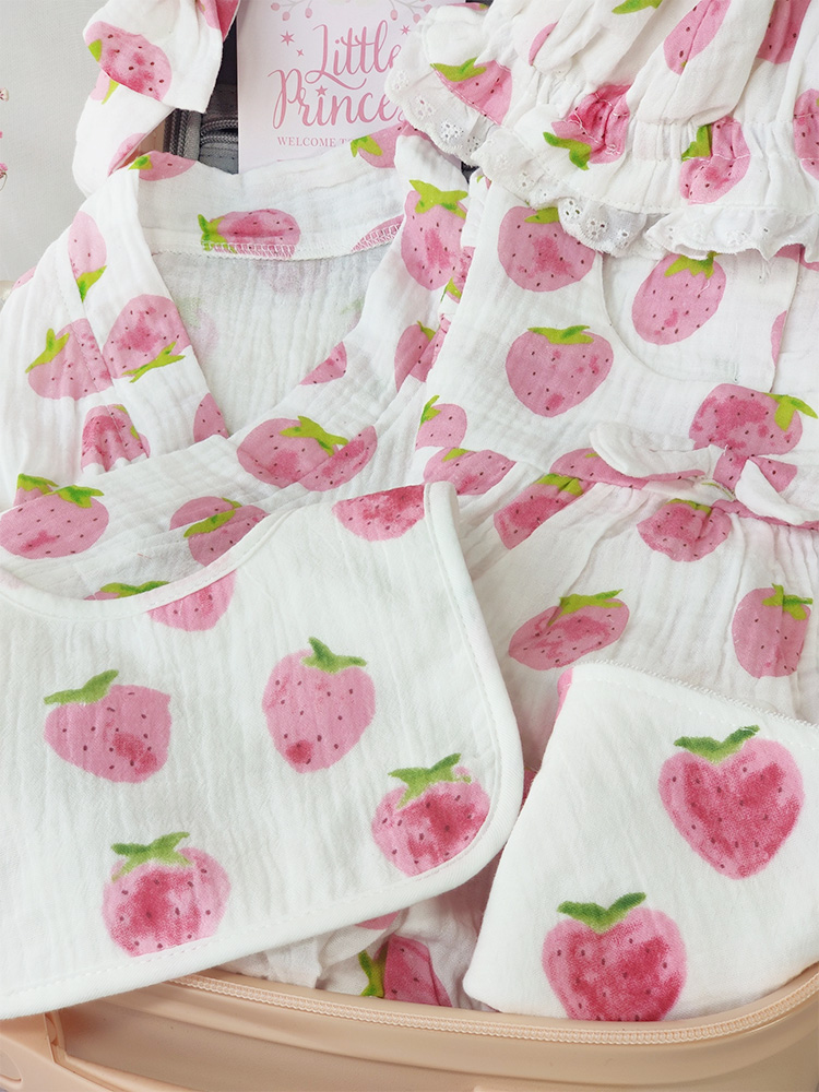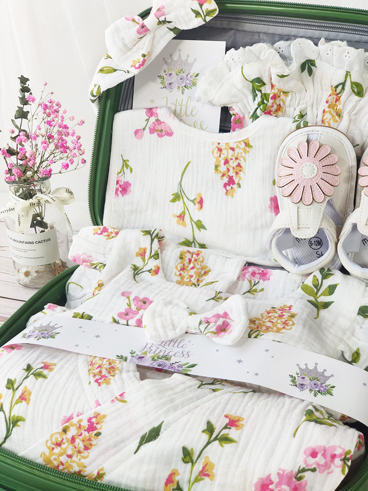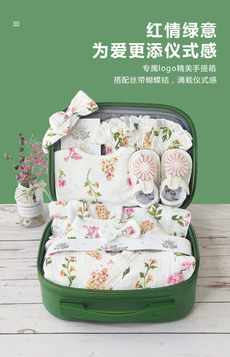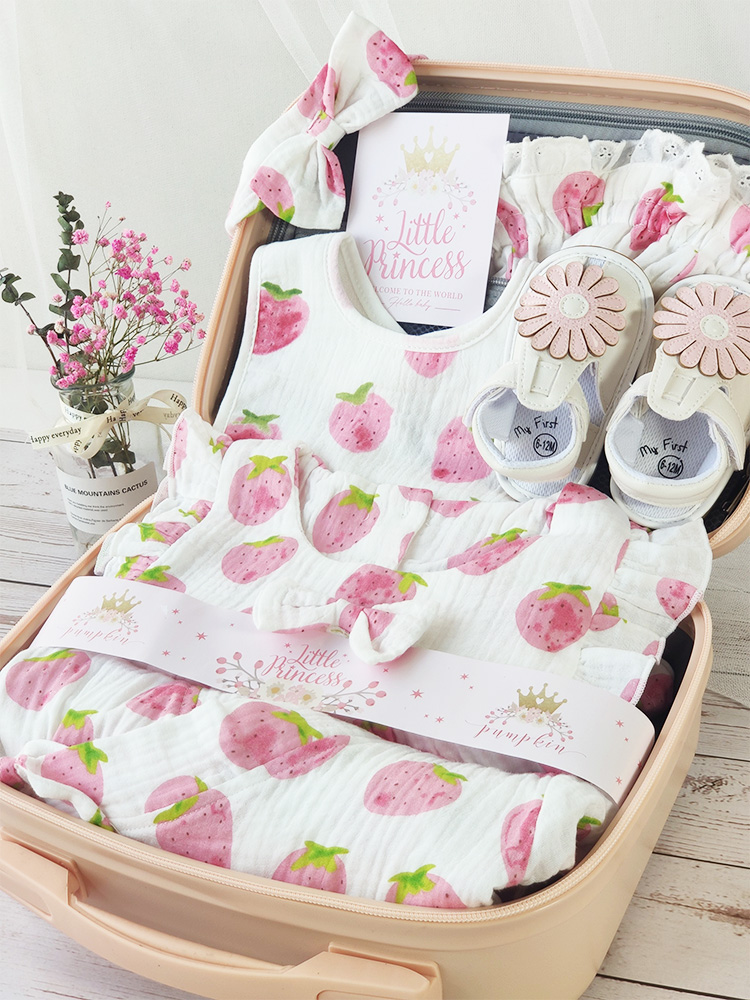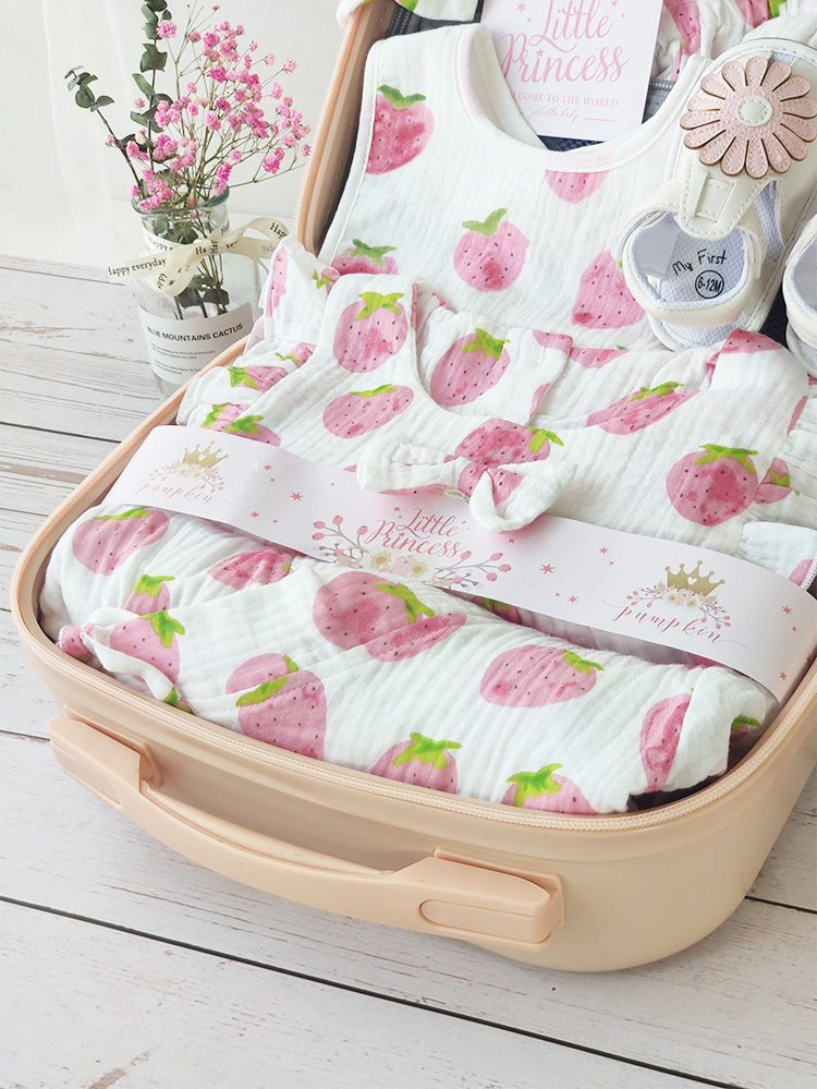 婴儿礼盒纯全棉绉纱布清凉夏季款粉色宝宝0-1岁新生儿套服装礼物