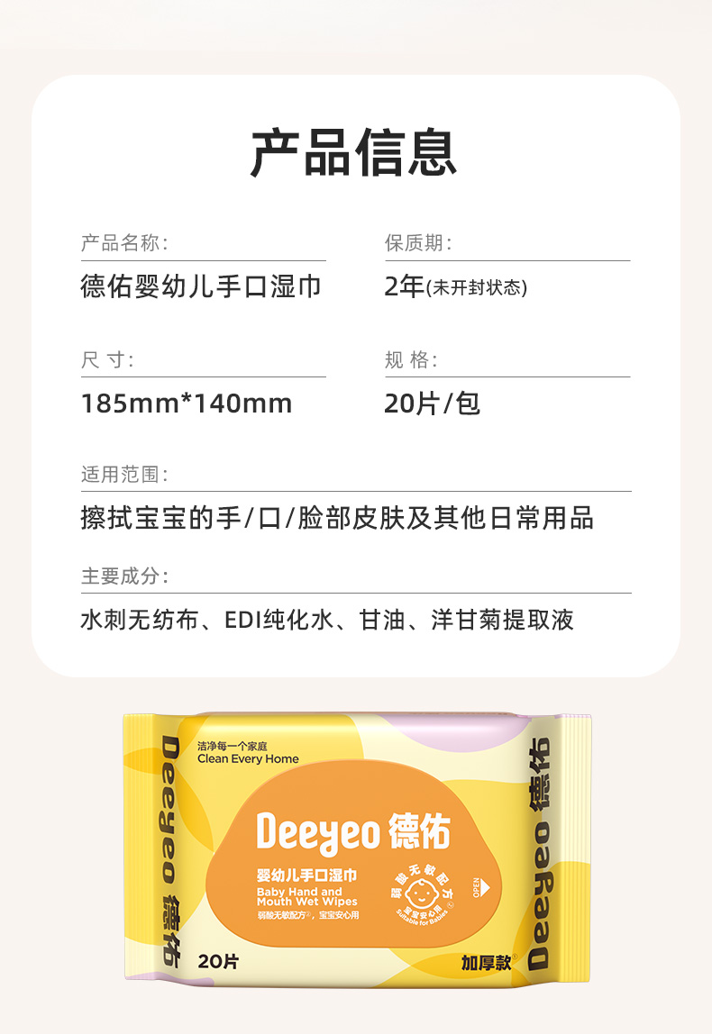 德佑婴儿手口专用宝宝便携湿巾纸小包学生湿纸巾20抽