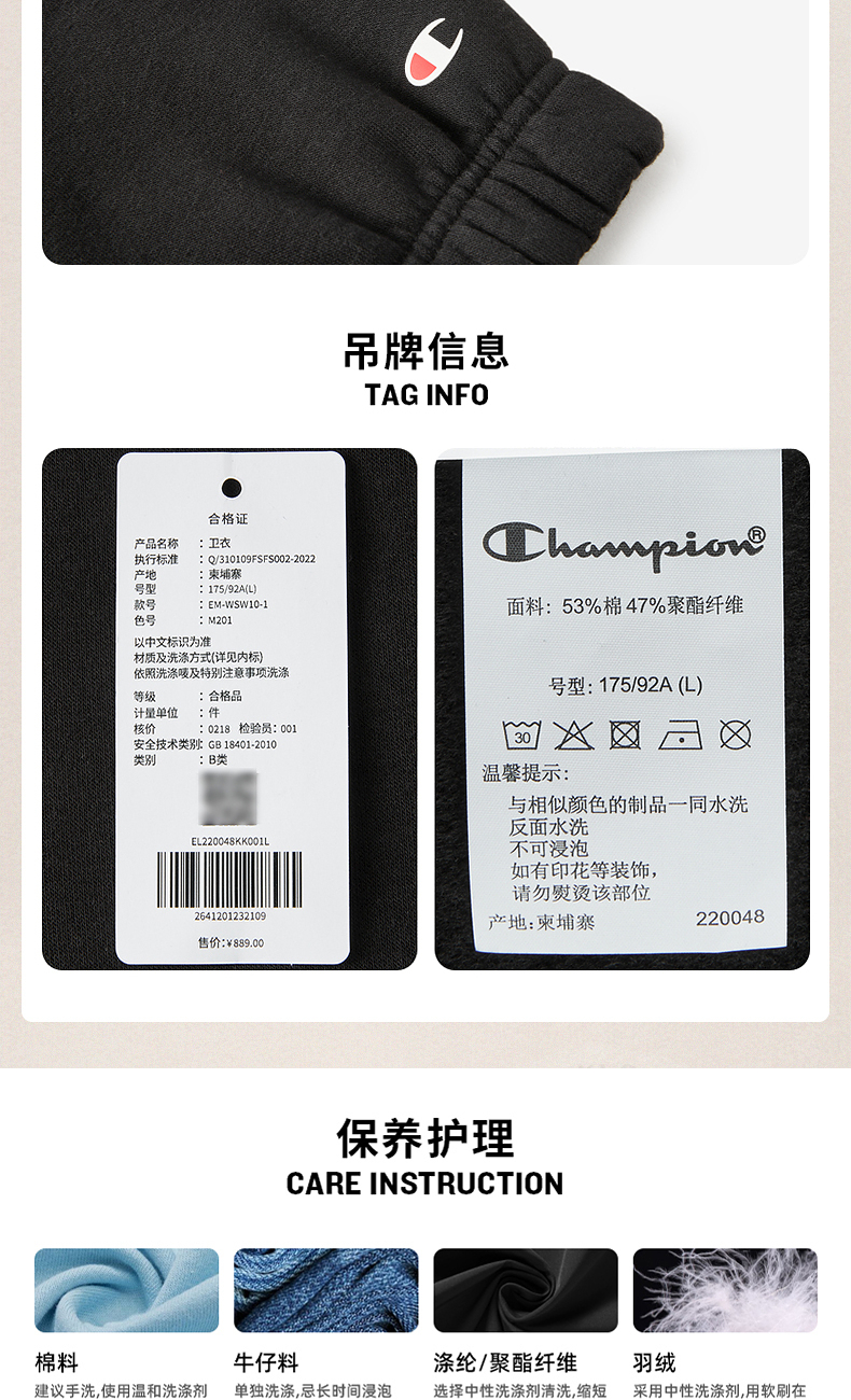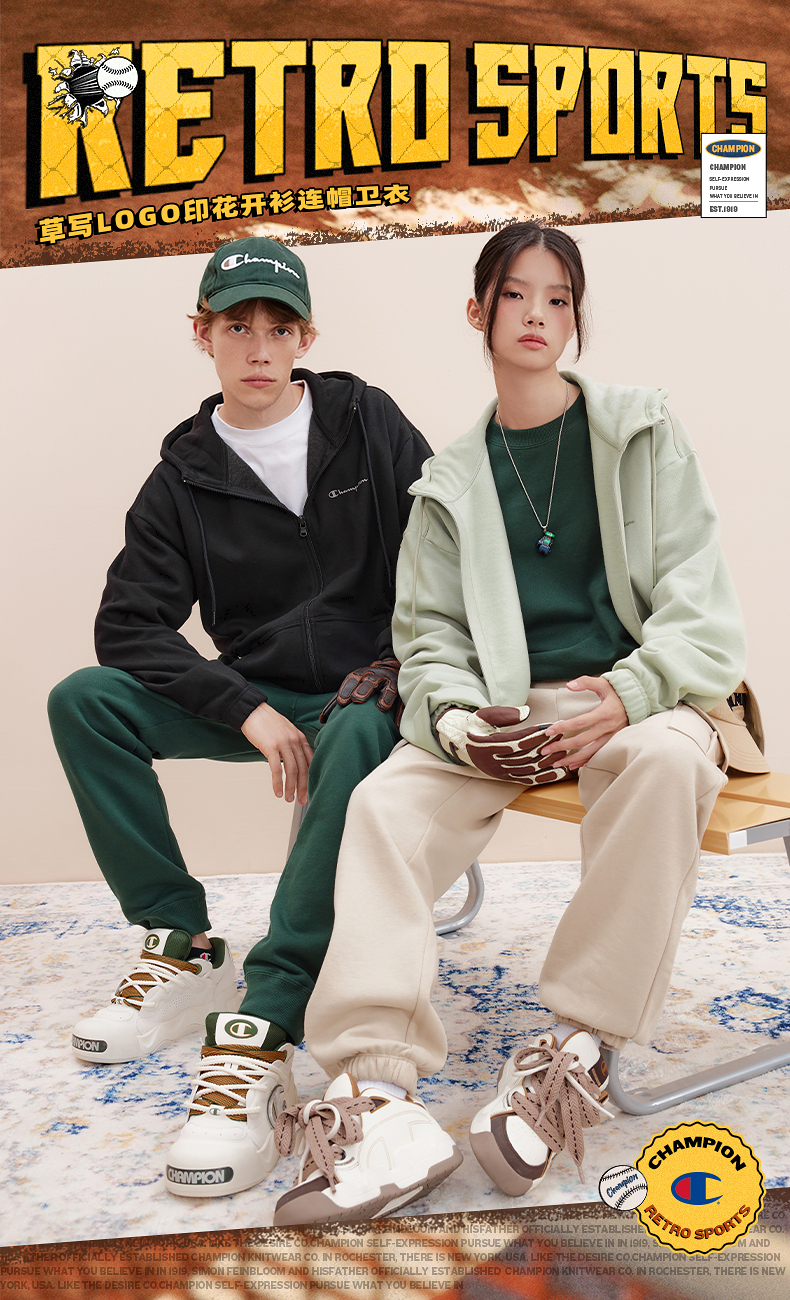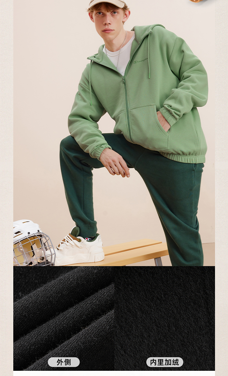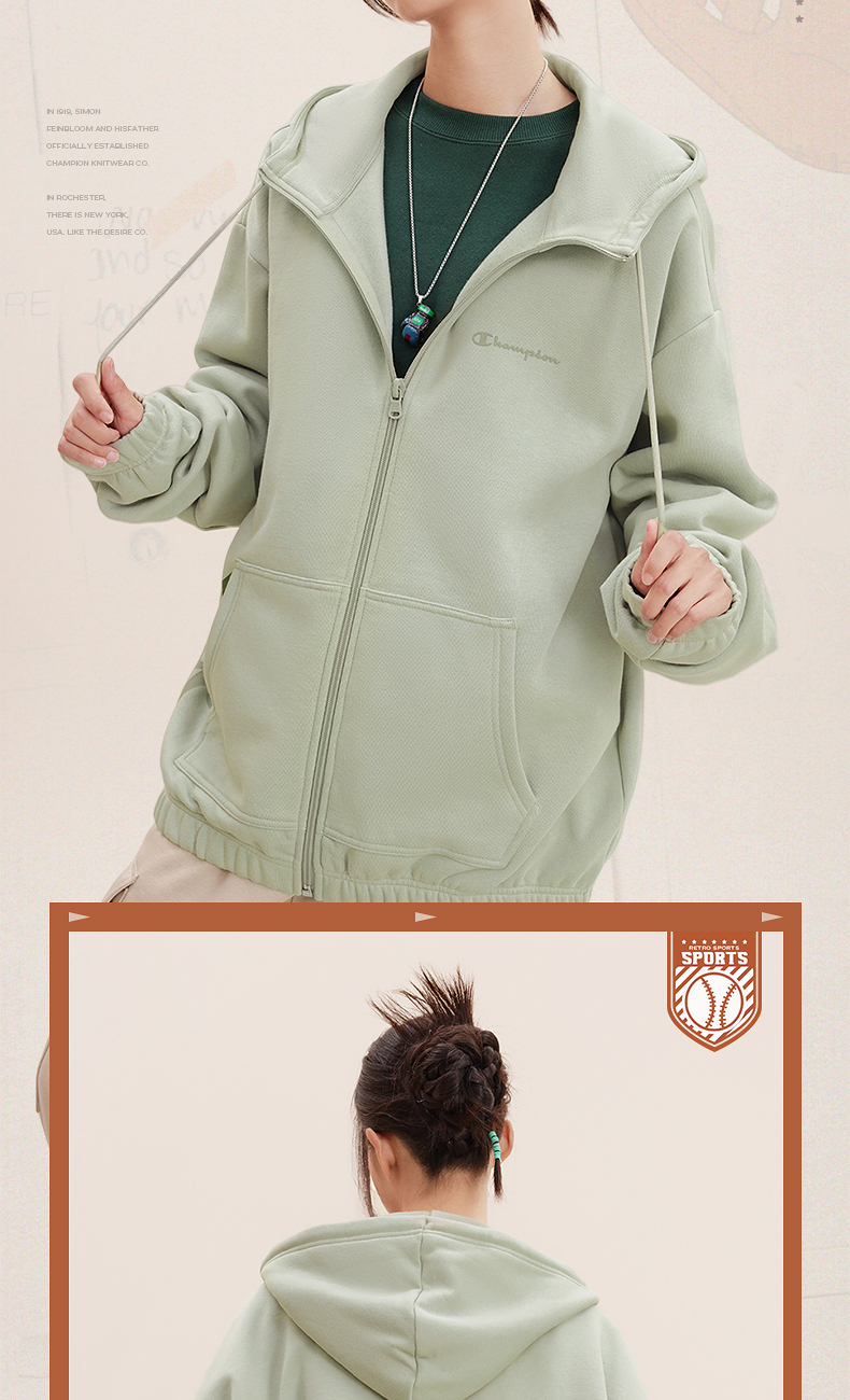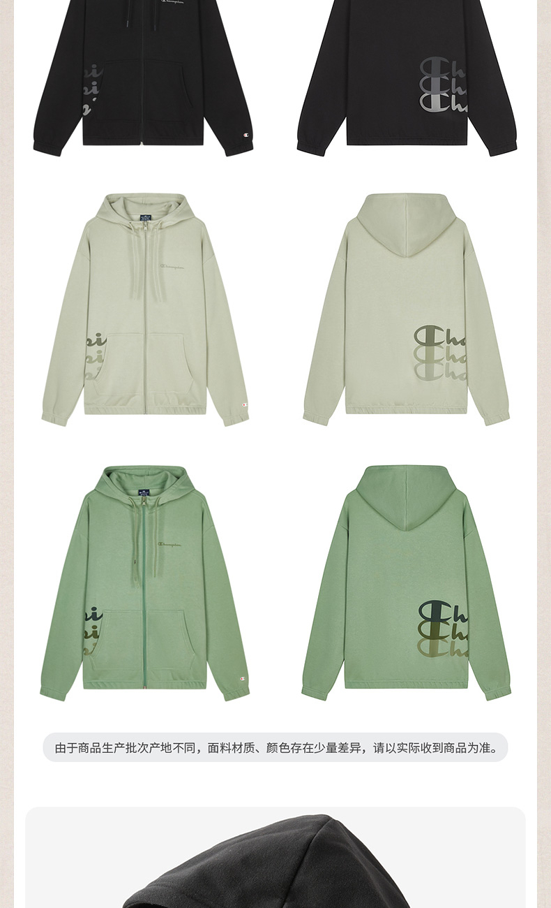 Champion冠军卫衣女2024冬季草写logo情侣印花开衫加绒连帽上衣男