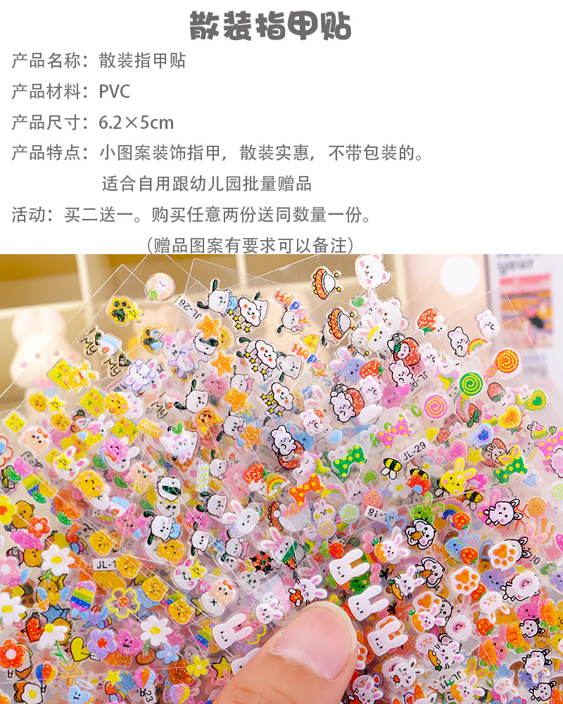 儿童卡通指甲贴公主宝宝防水美甲贴花小孩玩具小兔子背胶美甲贴纸
