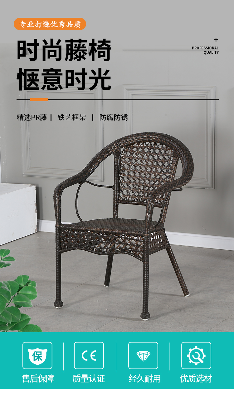 藤椅单人休闲高靠背椅子编织家用老人椅简约现代阳台小腾椅花园椅