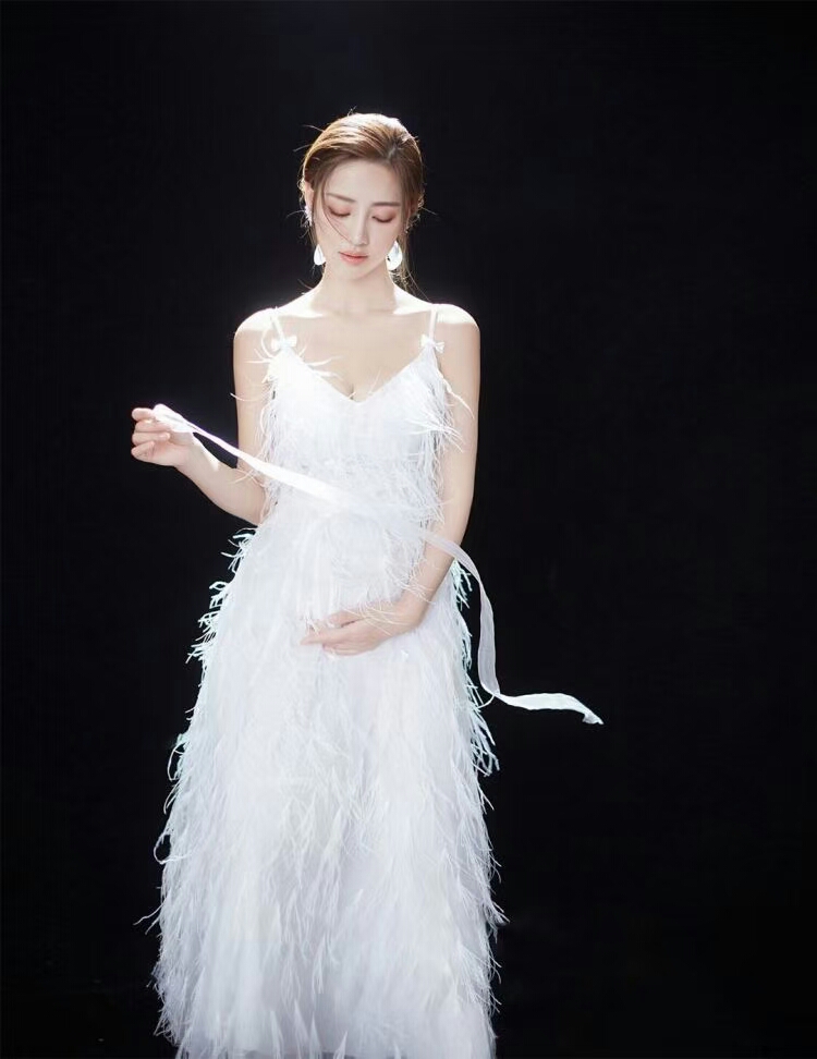 展会新款影楼孕妇拍照写真主题重工羽毛仙吊带裙孕妇照片写真服装