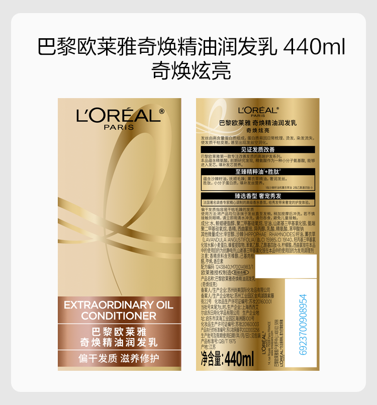 欧莱雅大金瓶奇焕护发精油润发乳护发素修护烫染受损柔顺头发