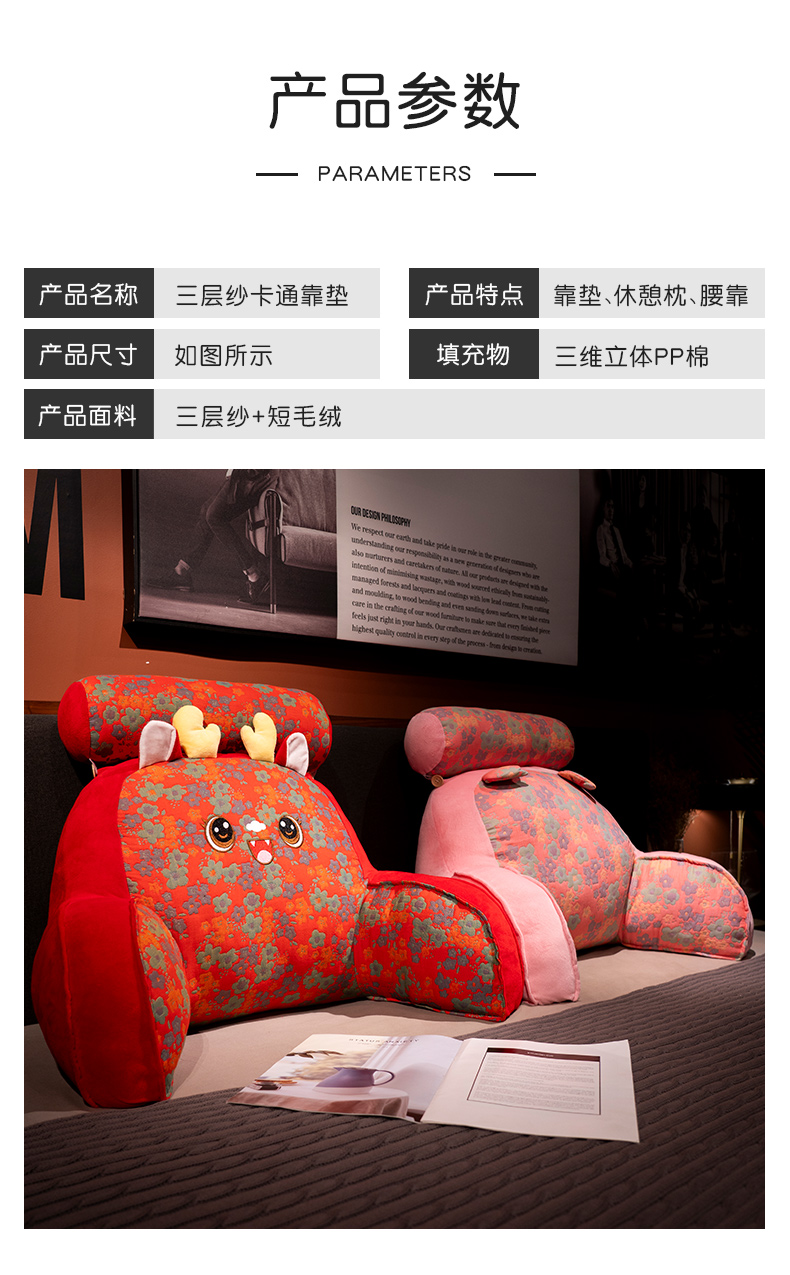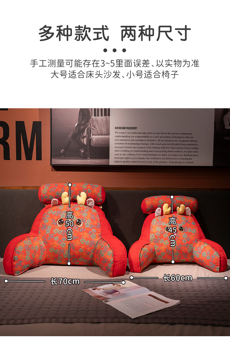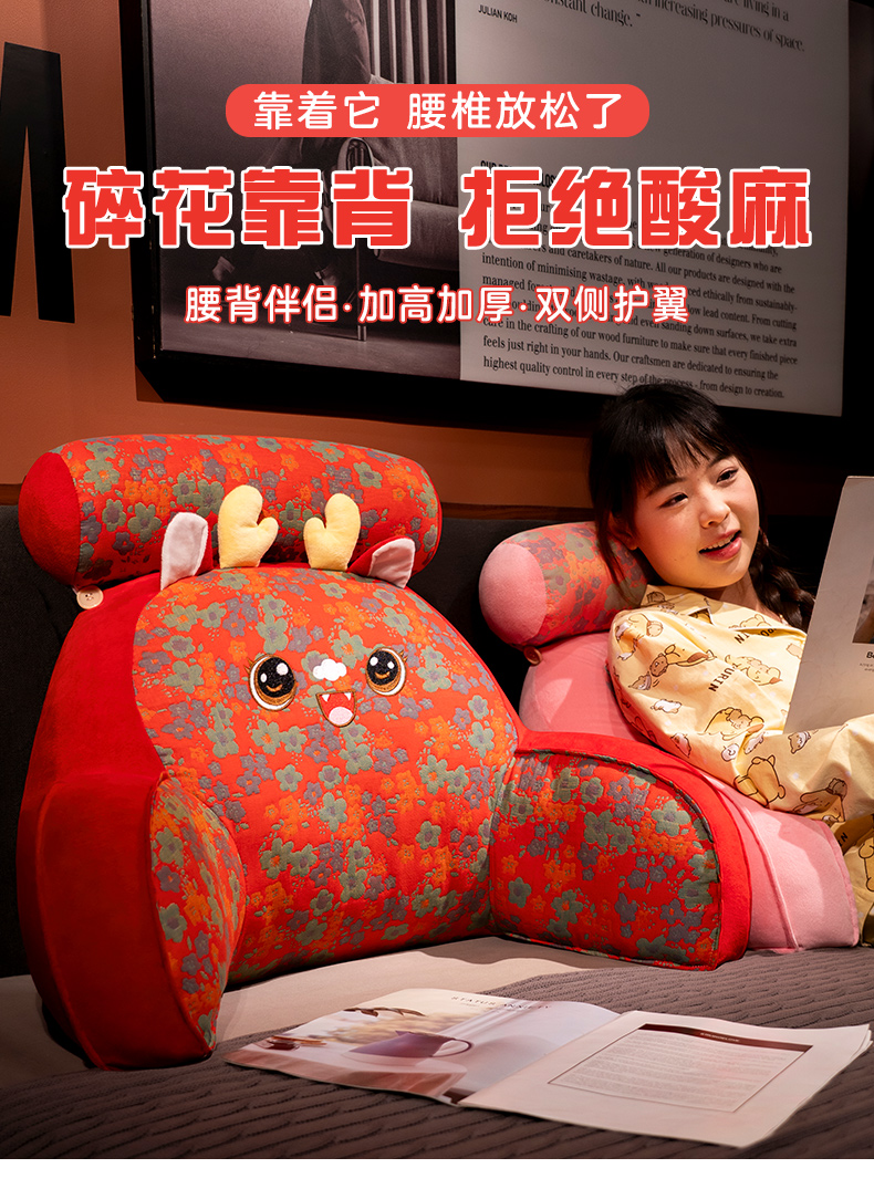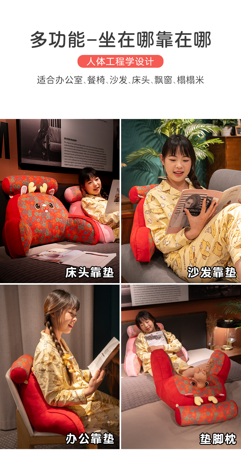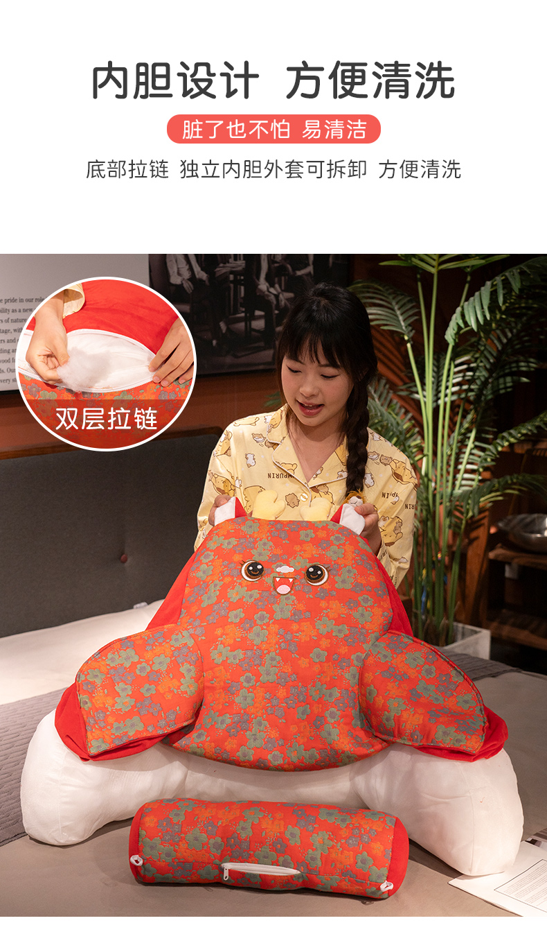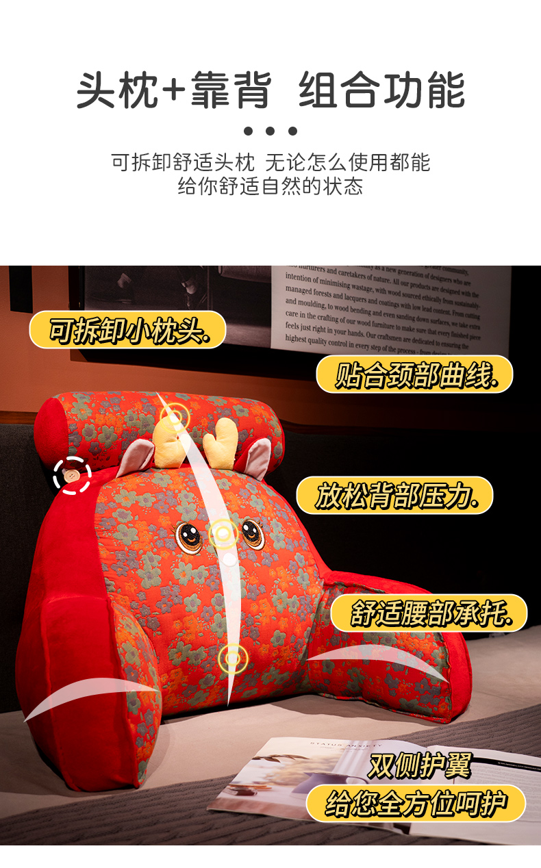 蛇年吉祥物床头靠垫软包护腰靠枕大靠背沙发抱枕床上看书床靠枕头