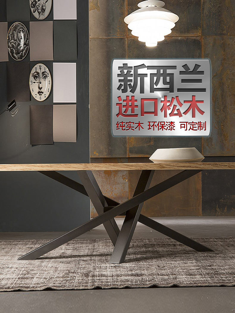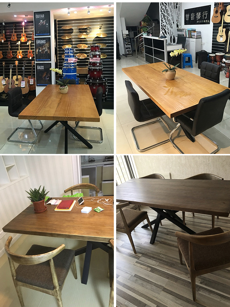 北欧实木餐桌原木长桌工作台办公桌会议桌简约现代创意桌洽谈桌椅