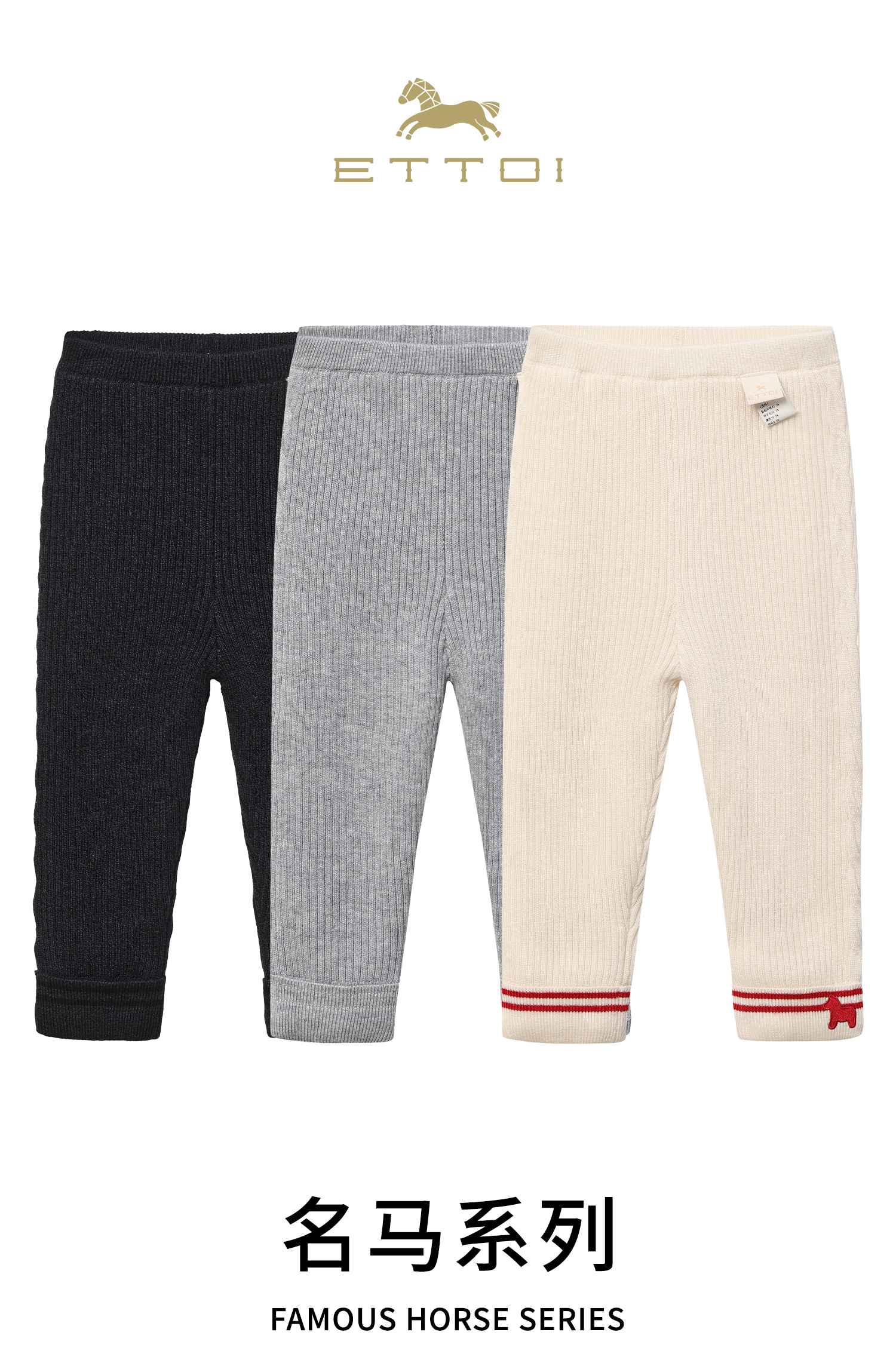ETTOI爱多娃儿童加绒打底裤秋冬时尚简约保暖直筒三色羊毛毛线裤