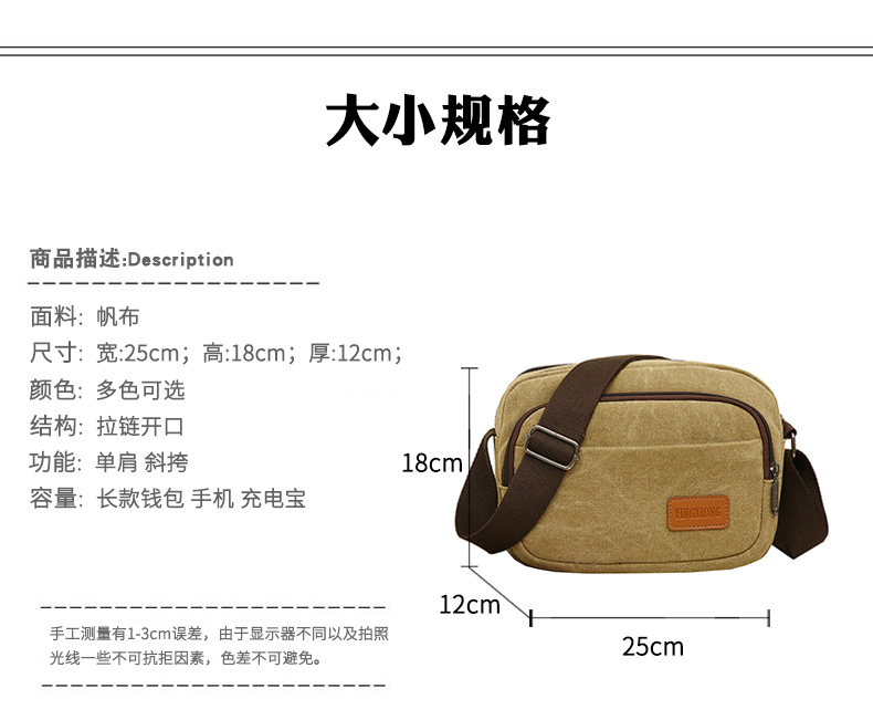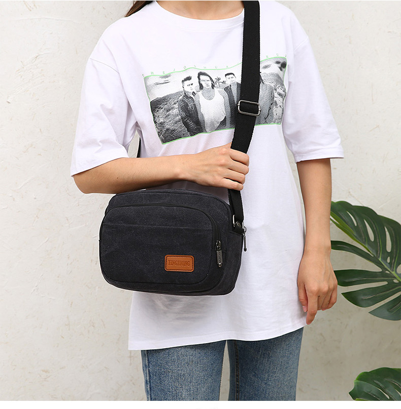 男女休闲单肩包女士斜挎小包耐磨帆布包男包斜跨包生意包收钱包