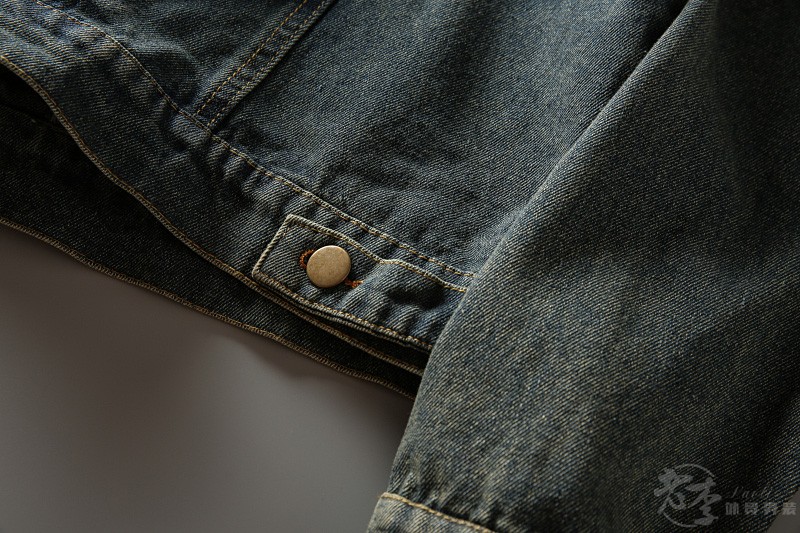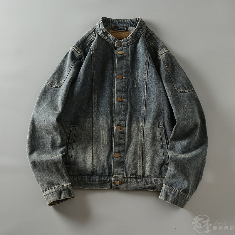 春季新款阿美咔叽复古水洗做旧男士立领休闲机车牛仔夹克外套潮