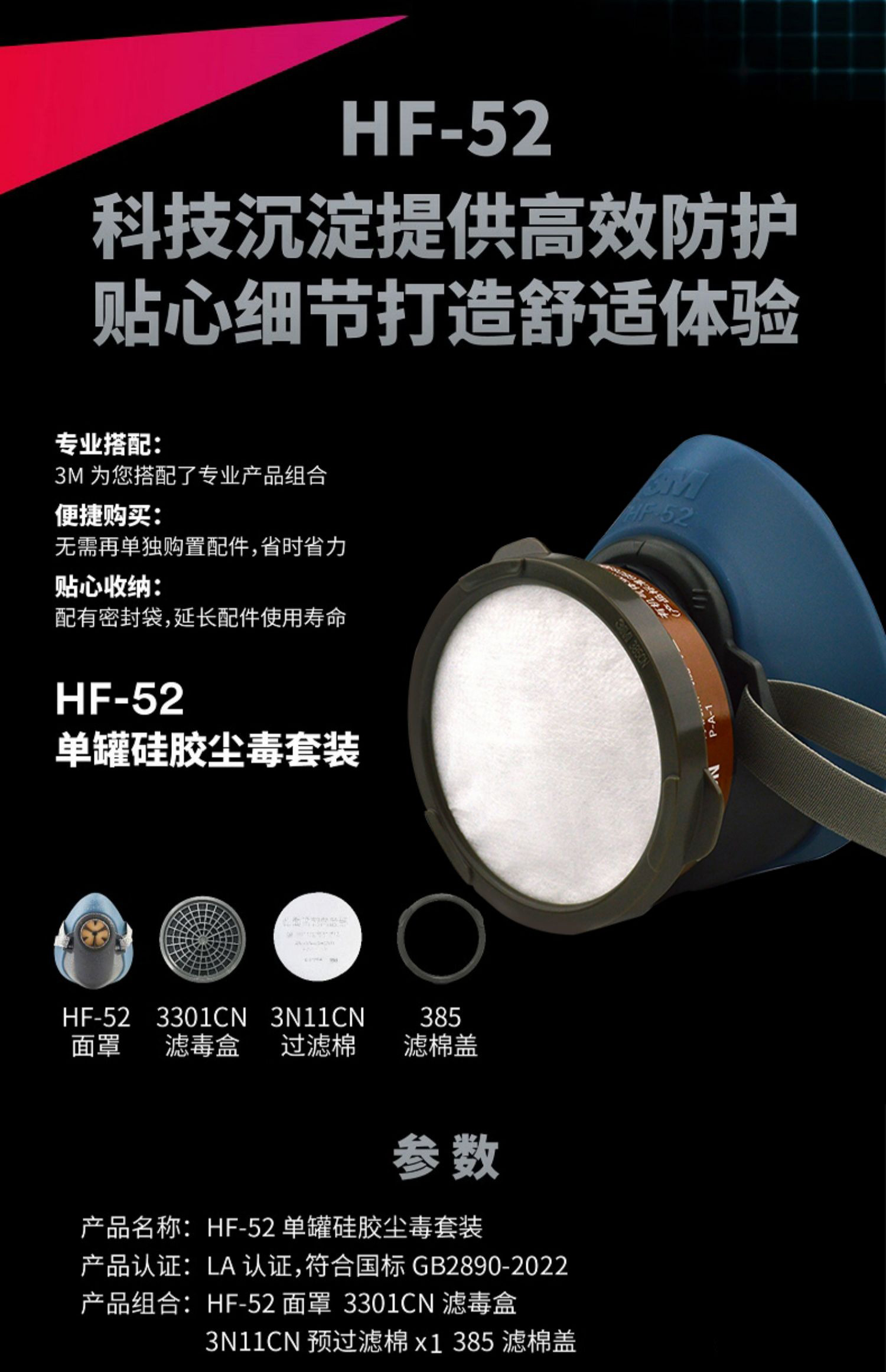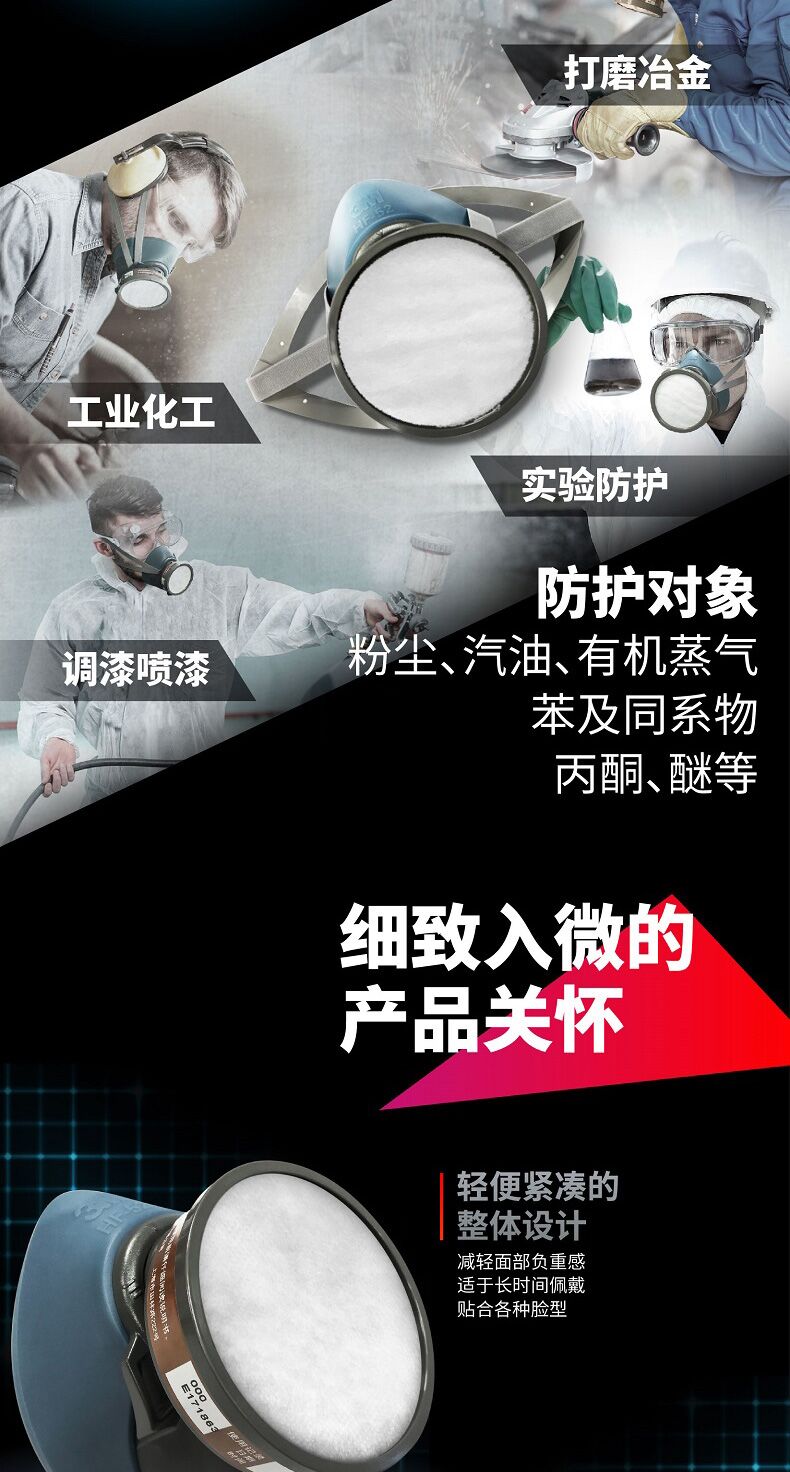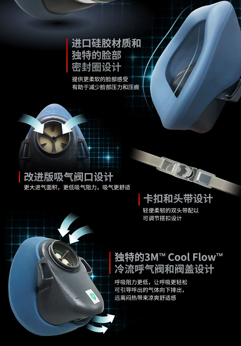 3M硅胶防尘毒面具HF-52工业粉尘防护透气硅胶猪鼻罩面罩打磨煤矿