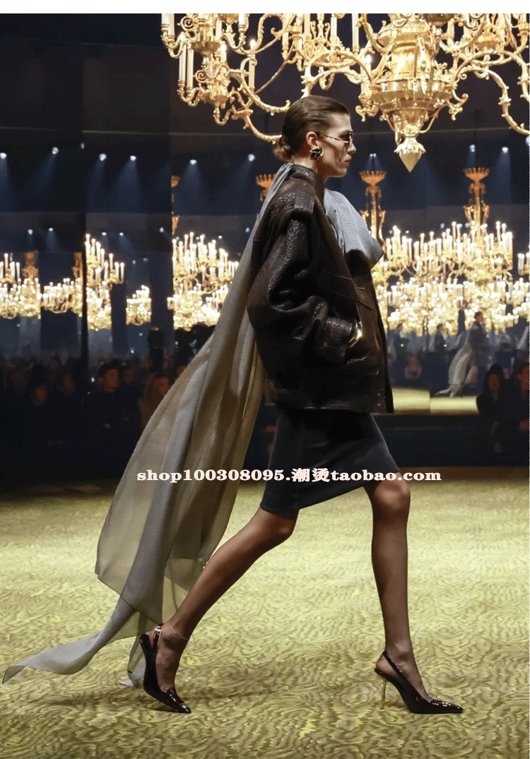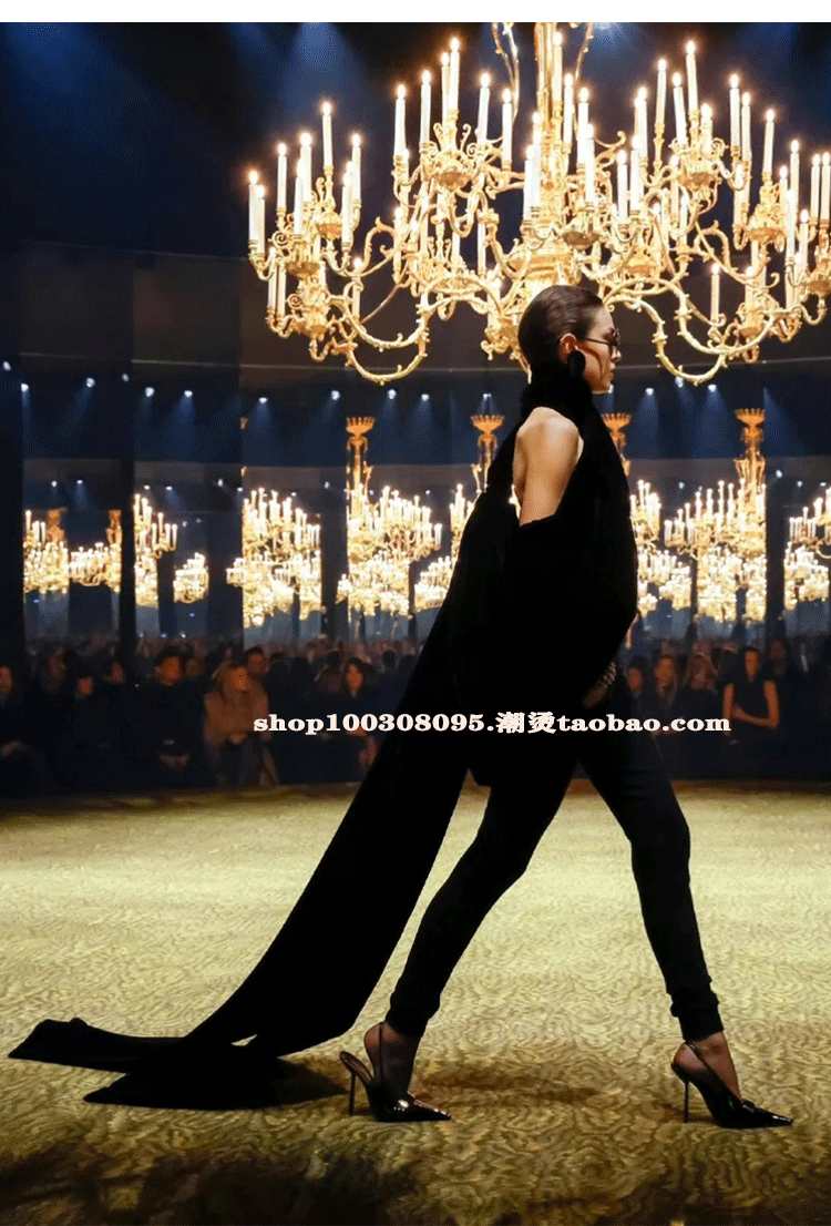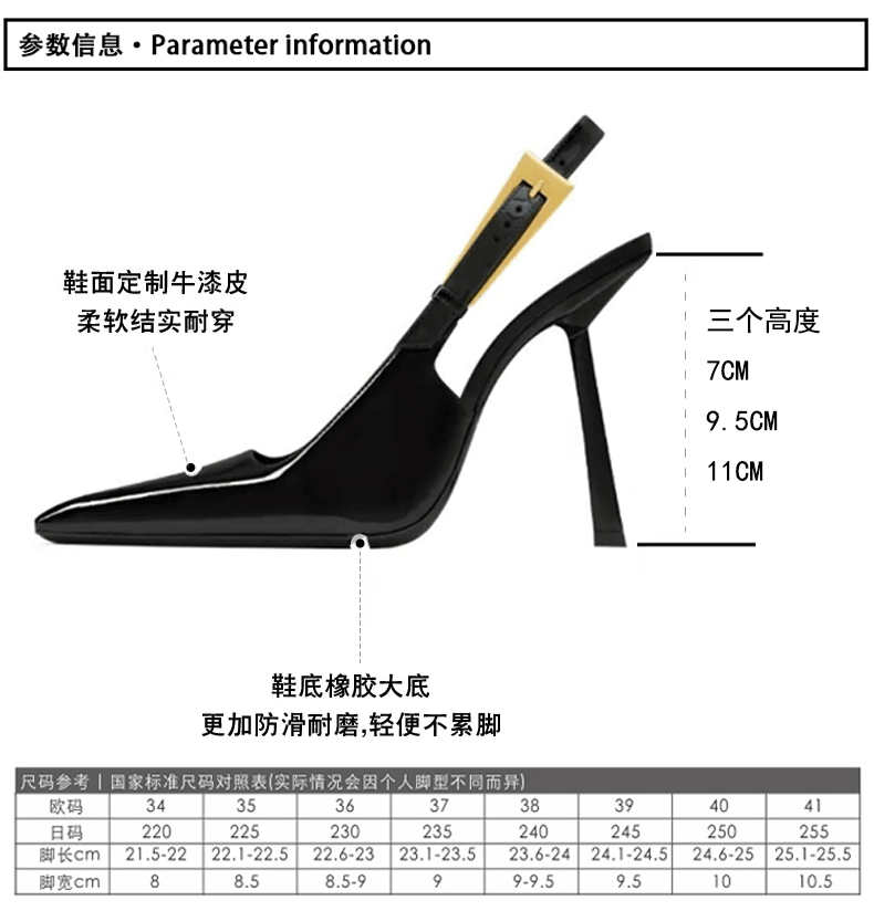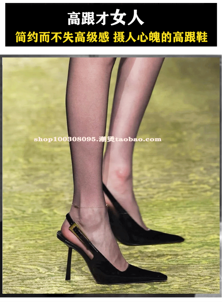 高跟鞋2024新款方头细跟黑色漆皮性感外穿包头后空走秀时装凉鞋女