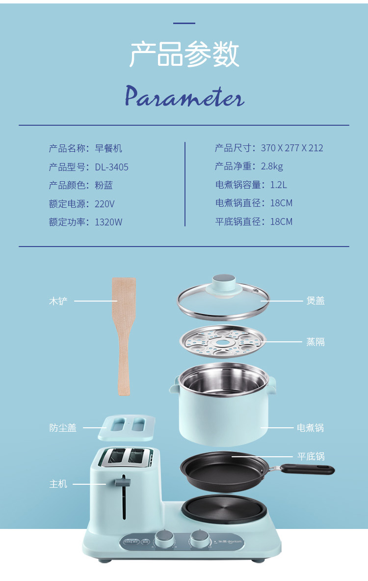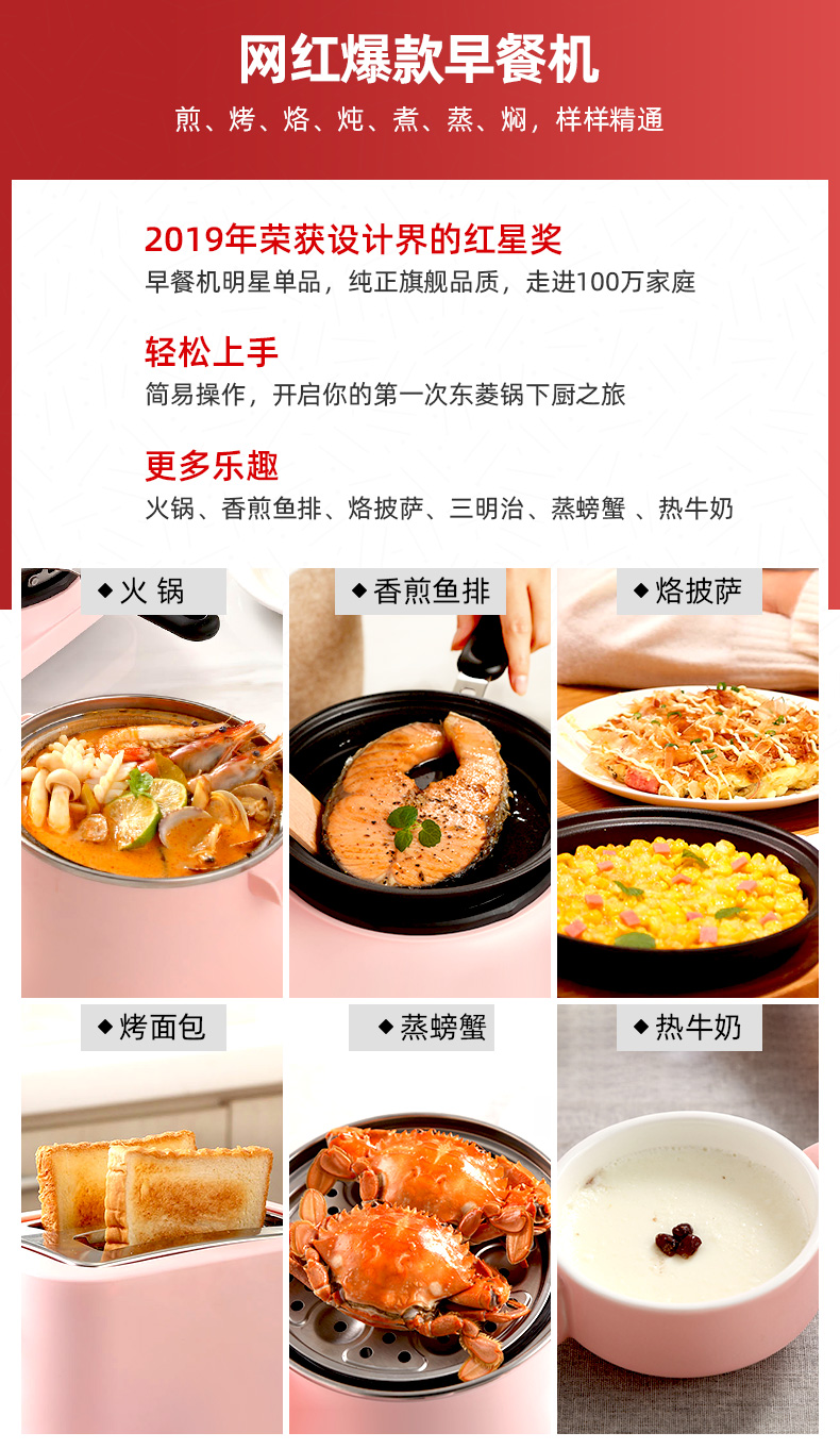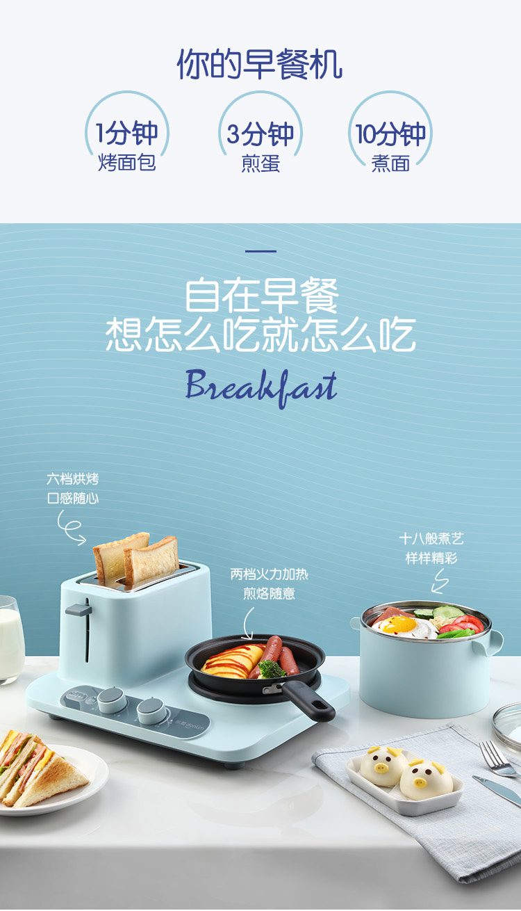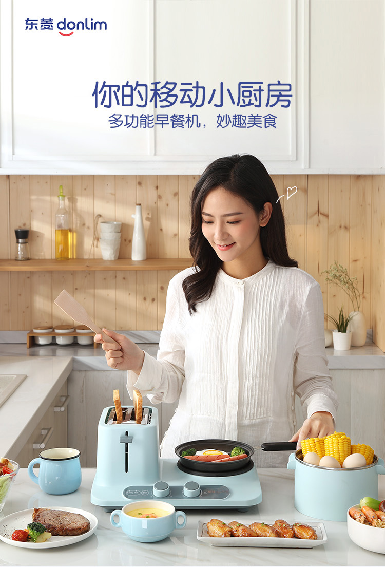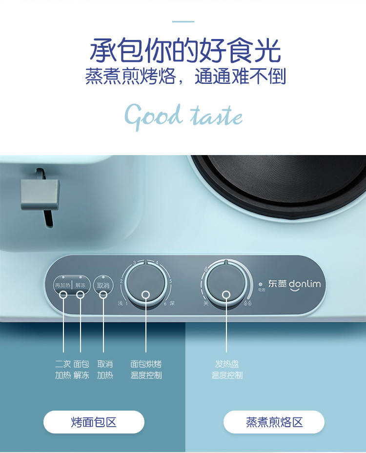 东菱早餐机烤面包片多功能多士炉家用轻食机烤面包片煮面煎烤煮蒸