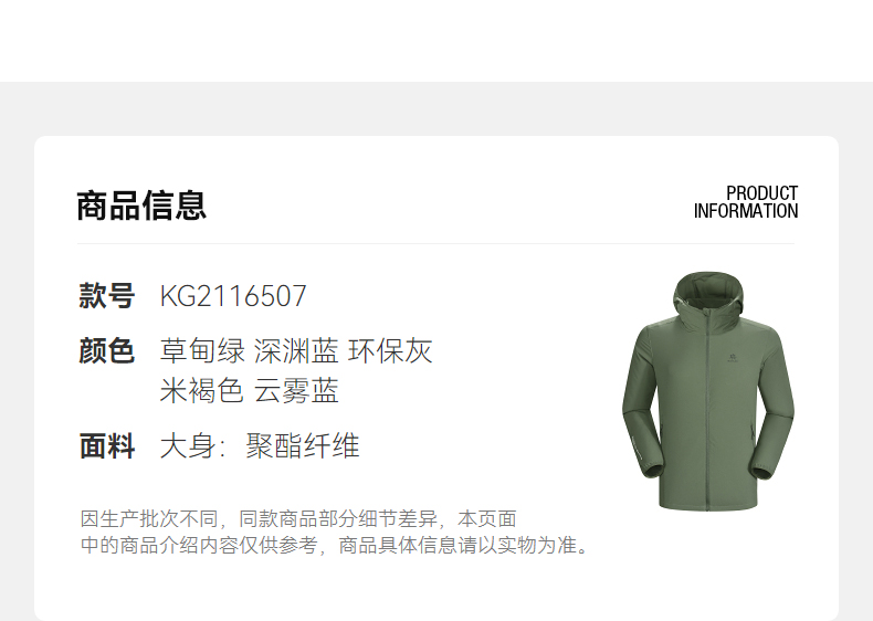 凯乐石春夏男女款连帽超薄透气防晒衣upf50+升级版皮肤风衣116507
