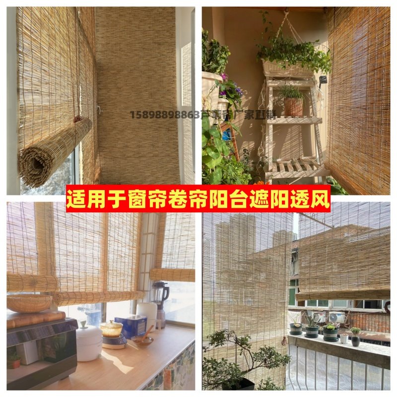 定做白线芦苇帘子竹帘窗帘拉升卷帘工程帘遮光墙面复古装饰草席帘