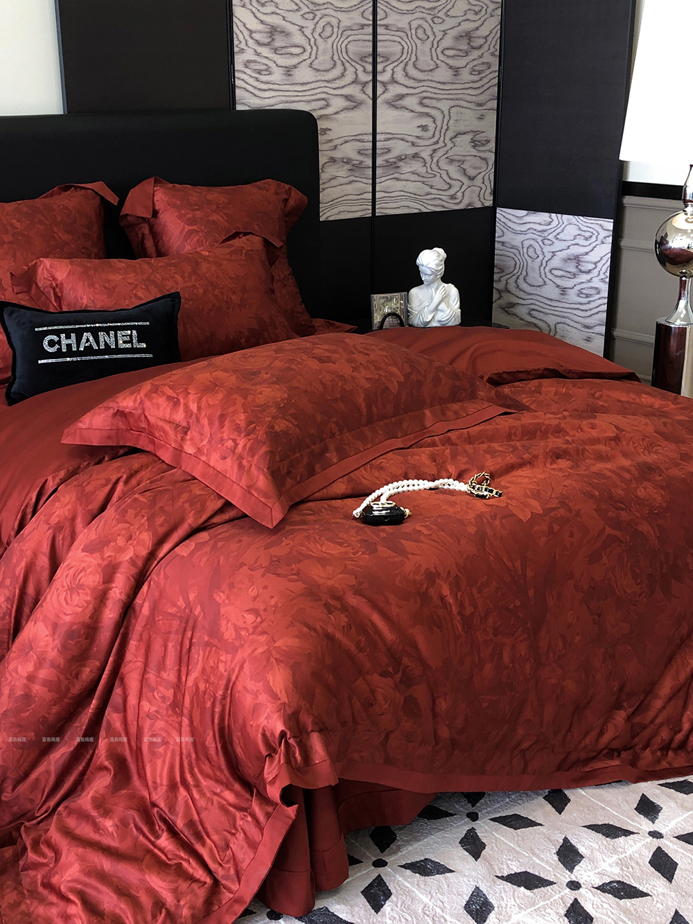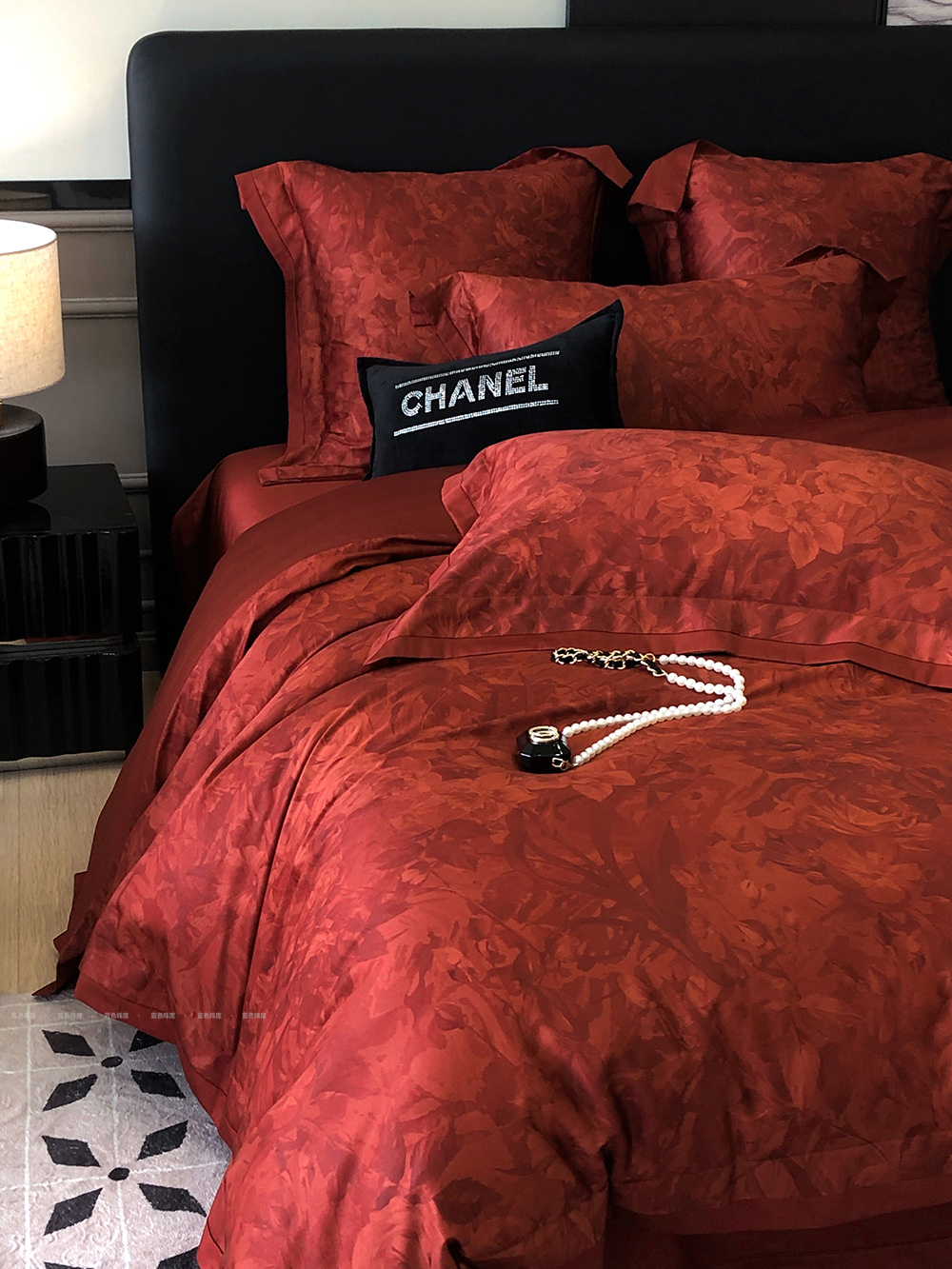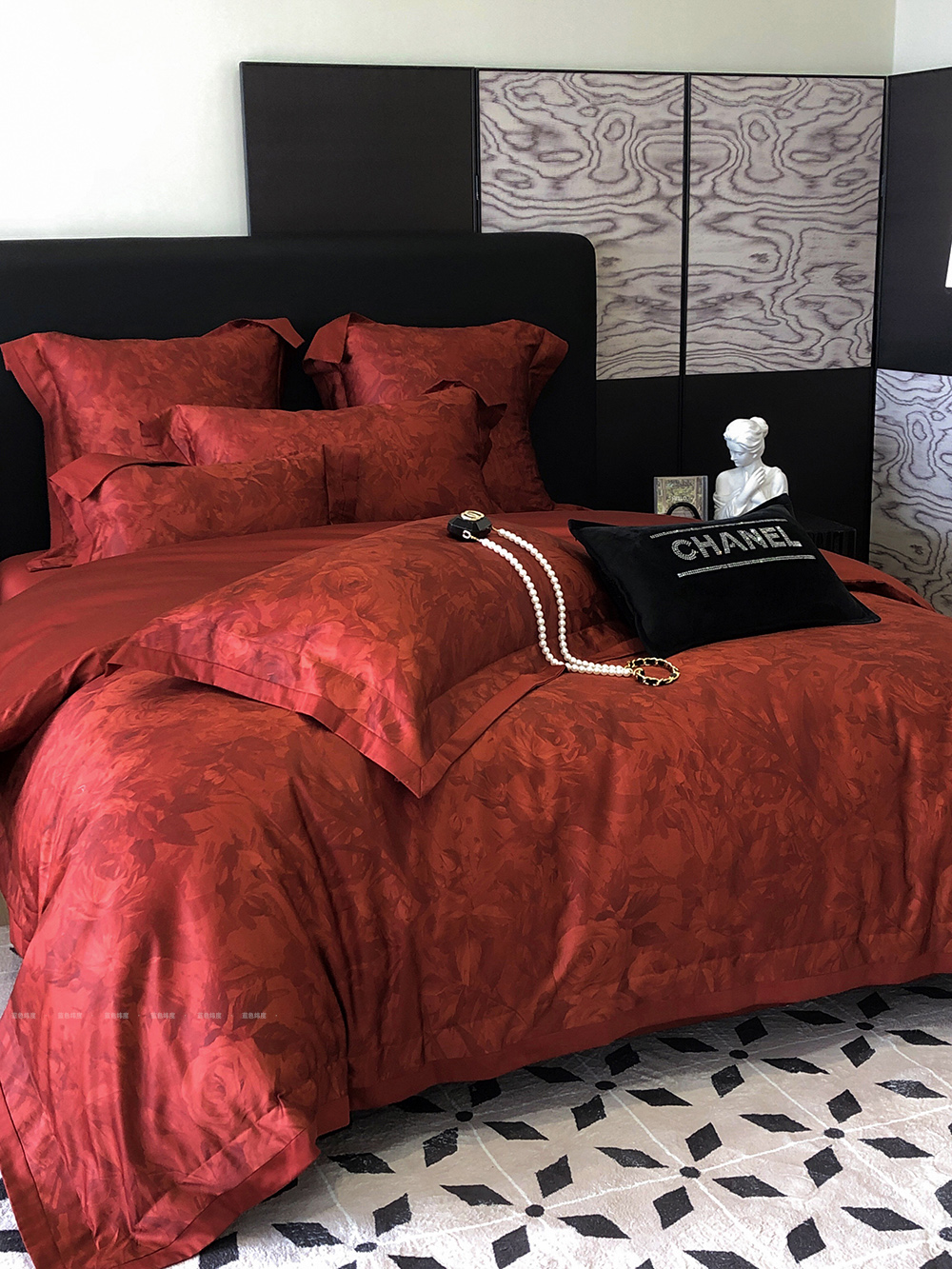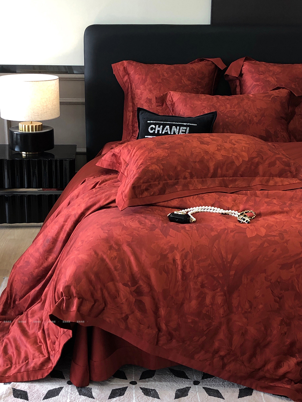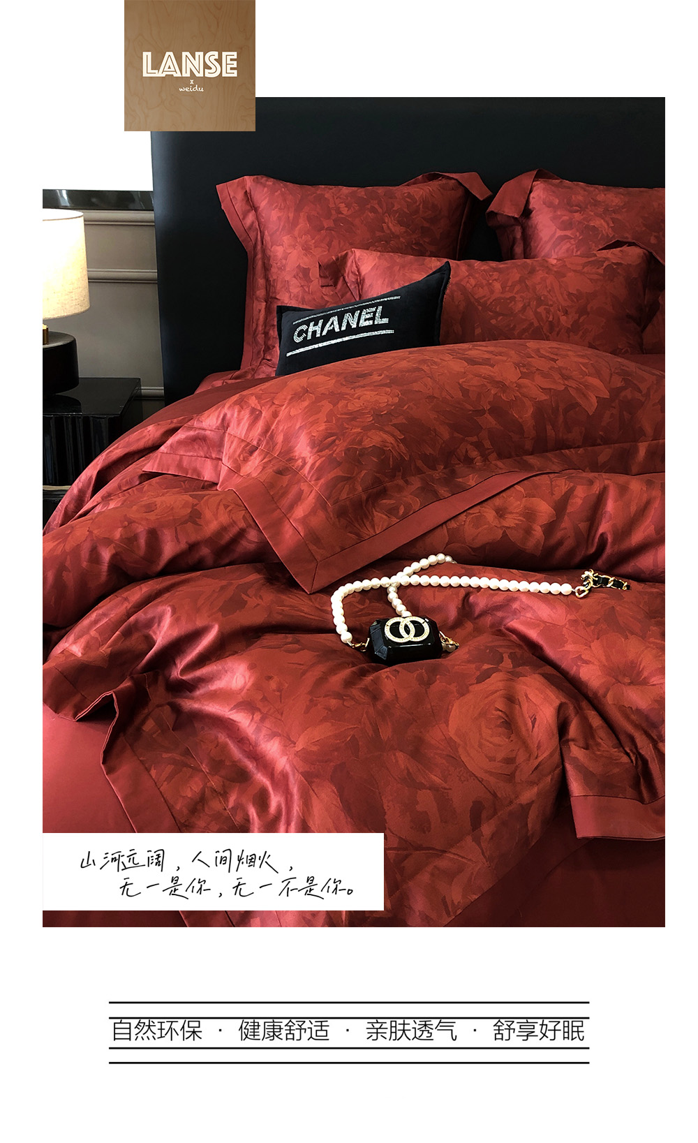 爱之蔓轻奢风数码印花婚庆四件套全棉酒红色结婚被套床单床上用品