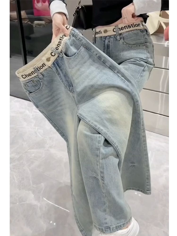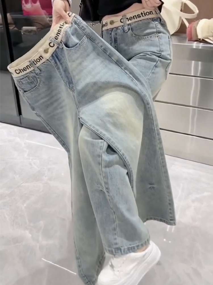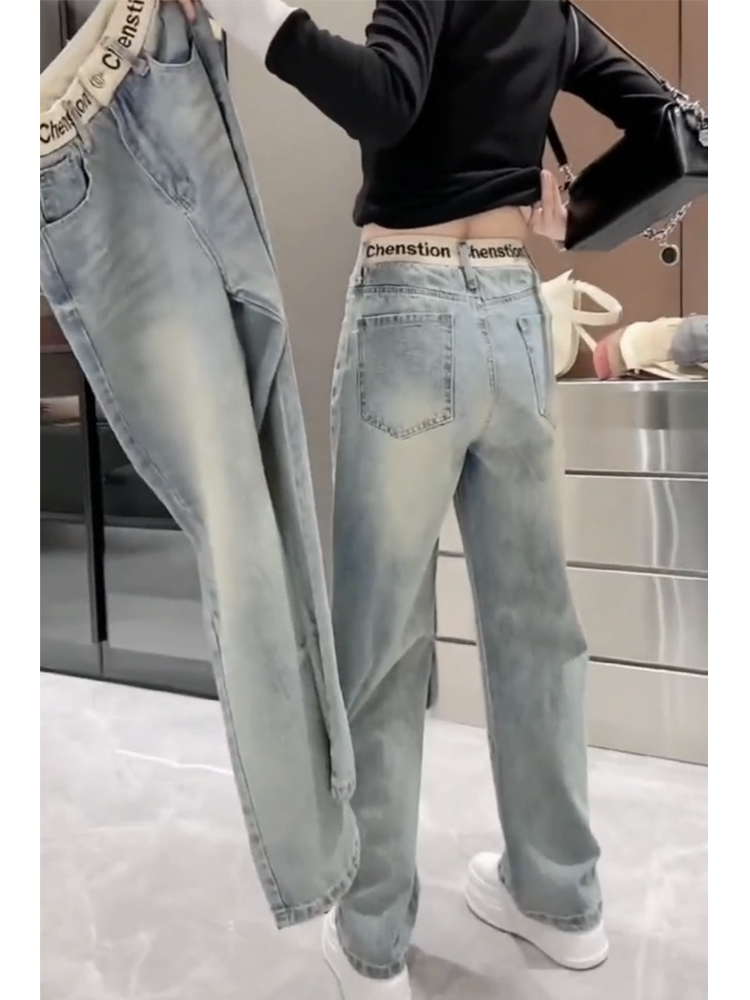 窄版弹力直筒牛仔裤女2025新款早春显瘦拖地裤大码刺绣加绒阔腿裤
