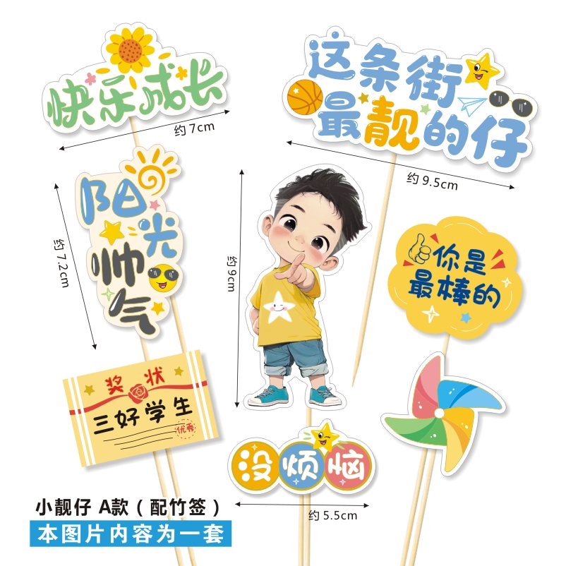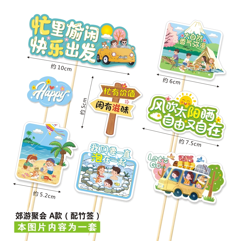 蛋糕纸质装饰插卡男孩女孩卡通篮球郊游寿司花艺水果冷饮