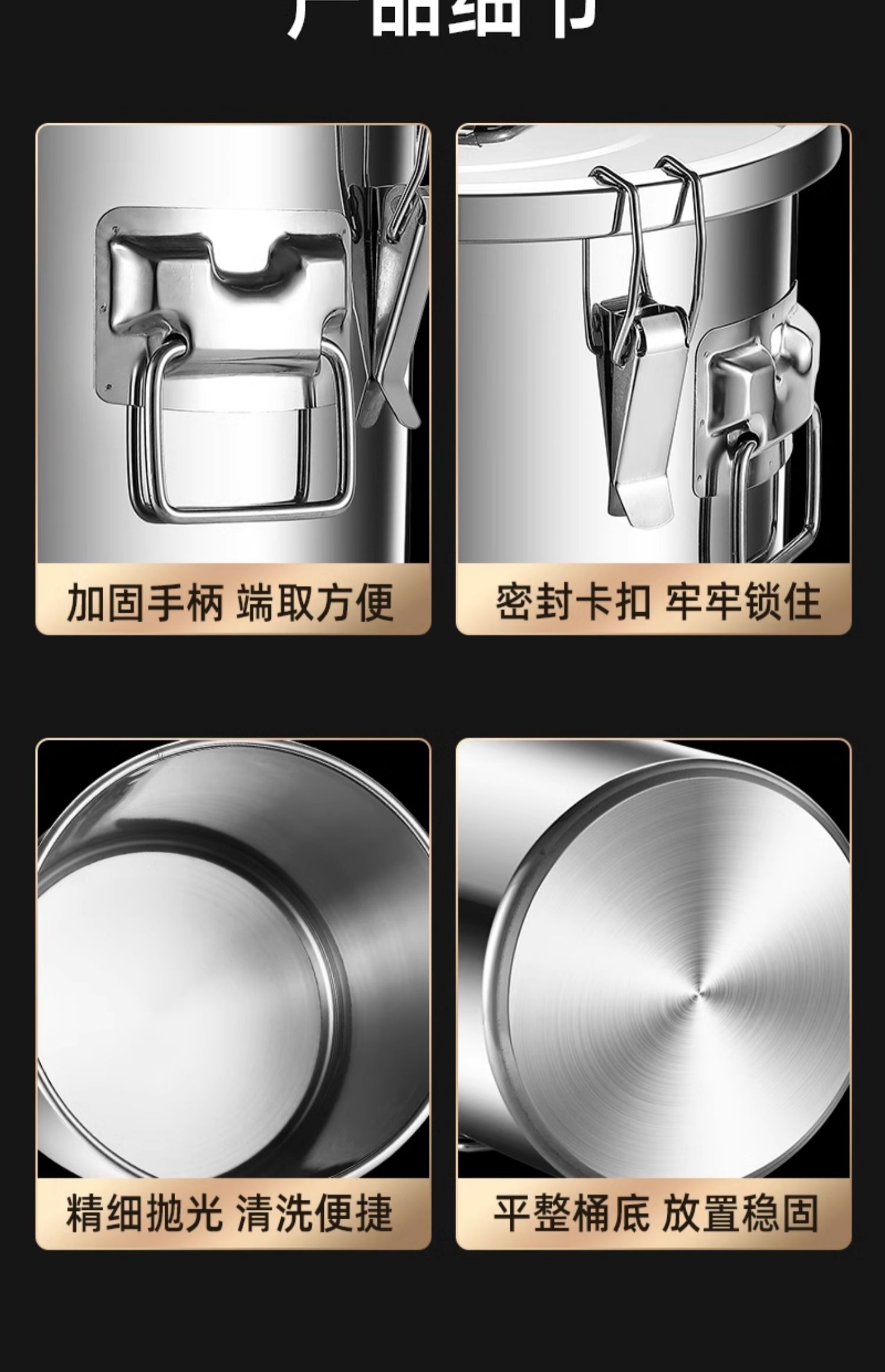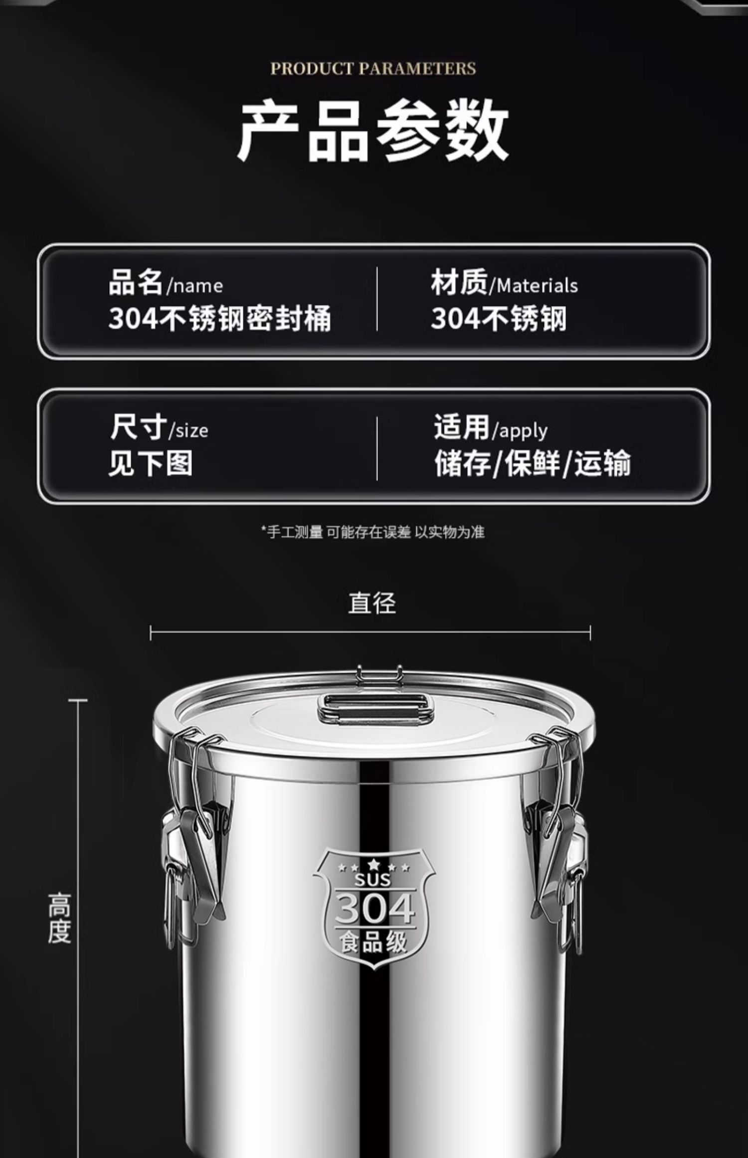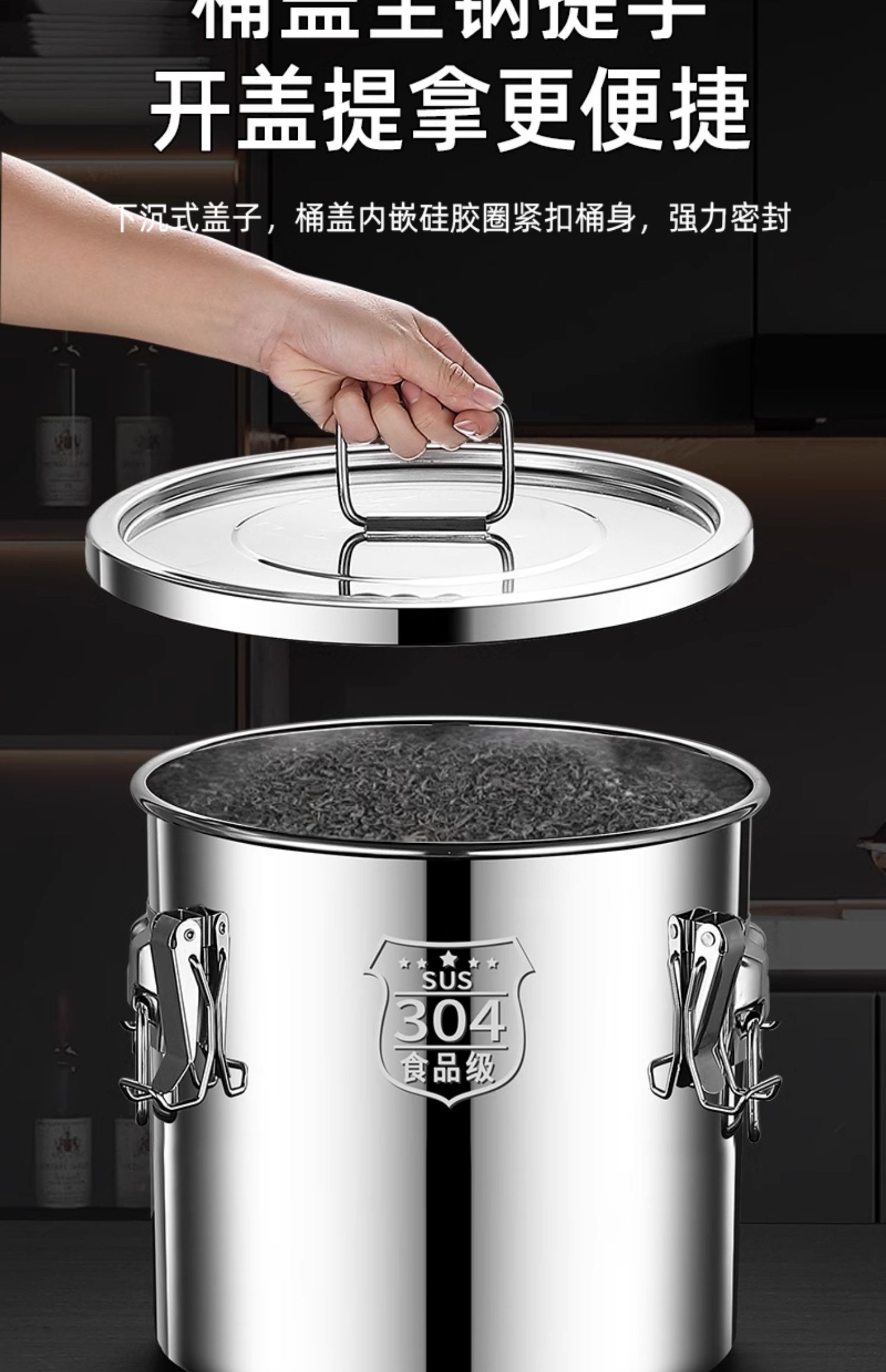 304不锈钢密封桶大容量圆桶食品级米桶加厚商用防虫防潮储物茶罐