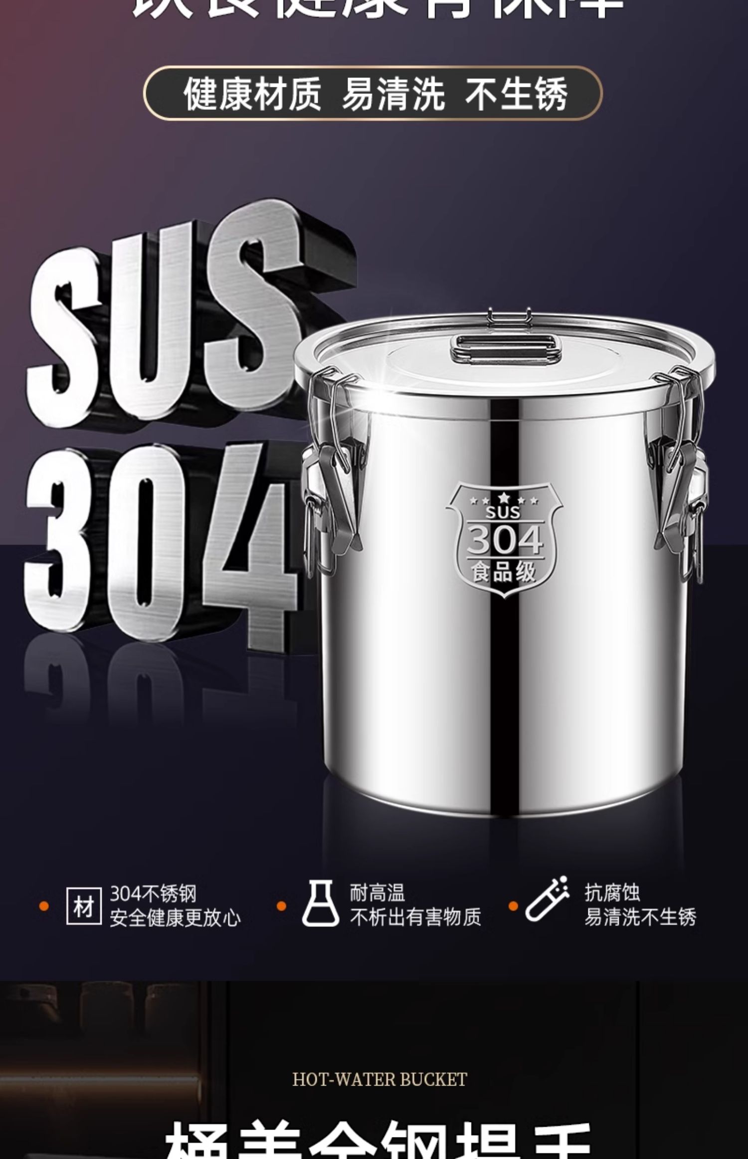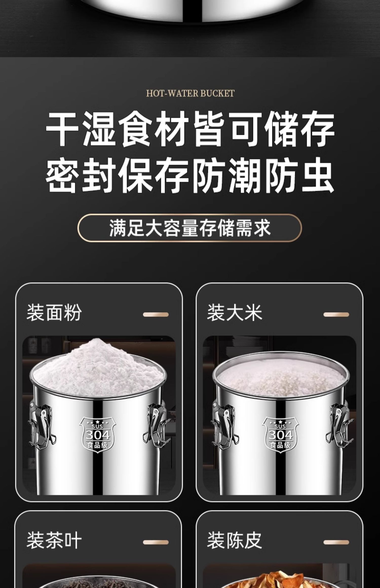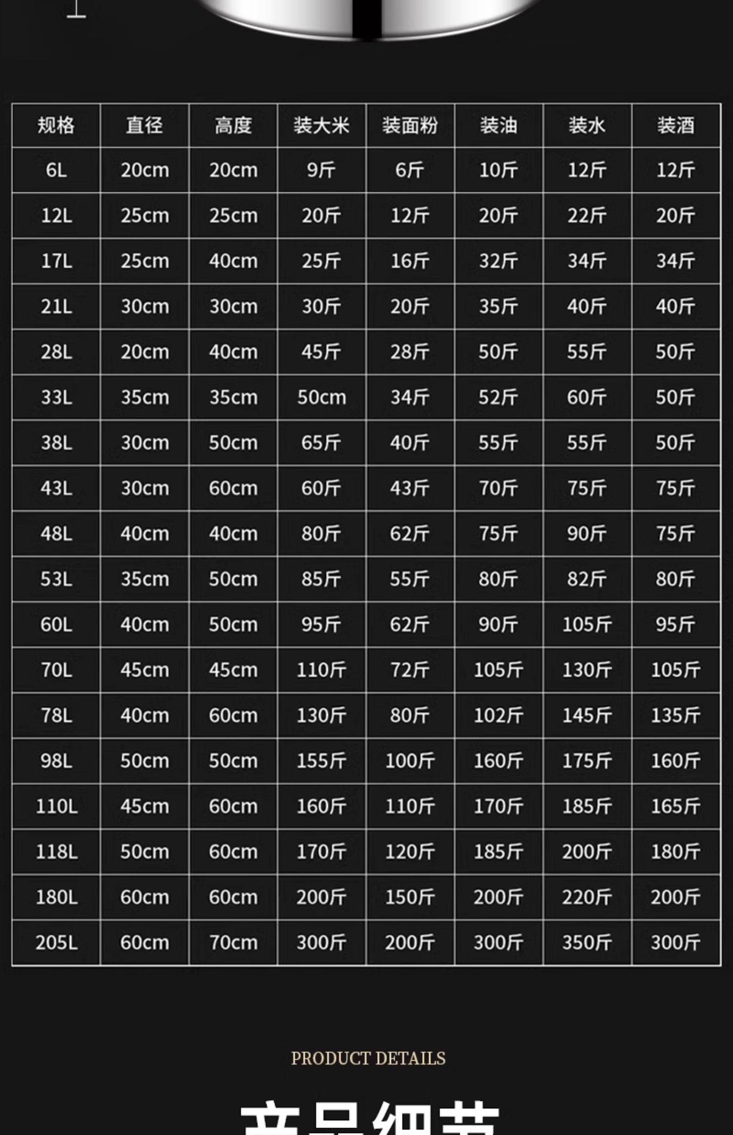 304不锈钢密封桶大容量圆桶食品级米桶加厚商用防虫防潮储物茶罐