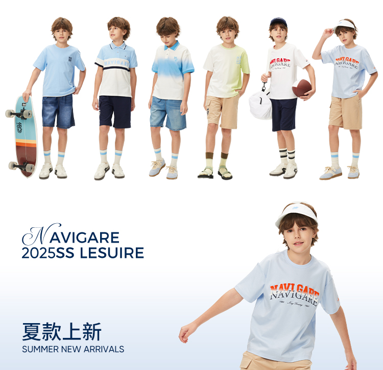 Navigare意大利小帆船儿童POLO衫2025年夏季新款男童短袖T恤上衣