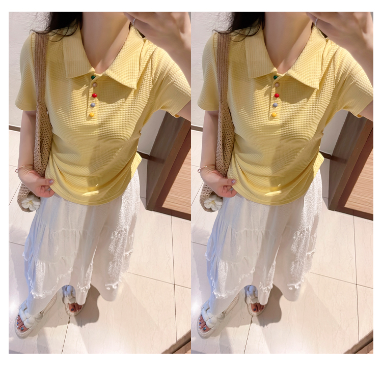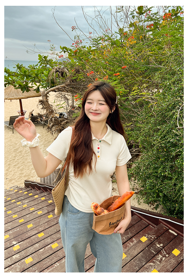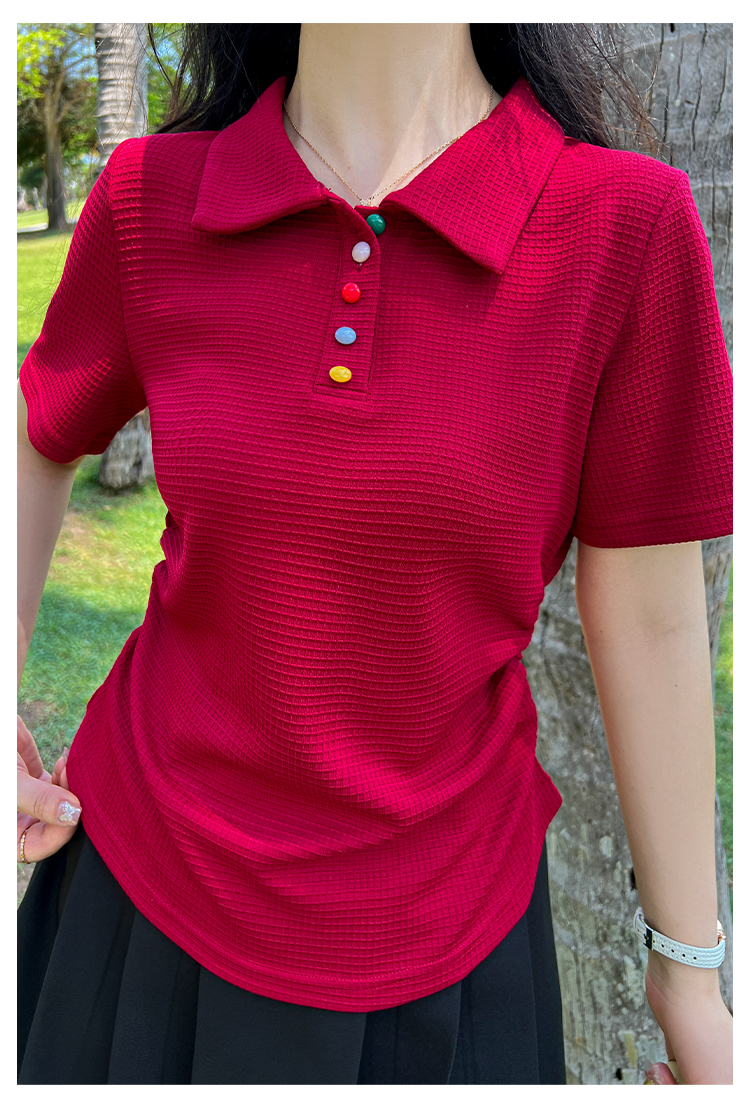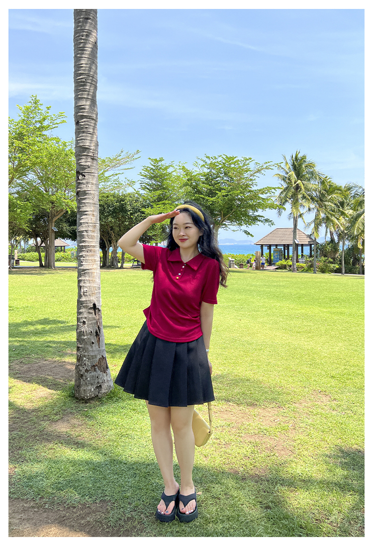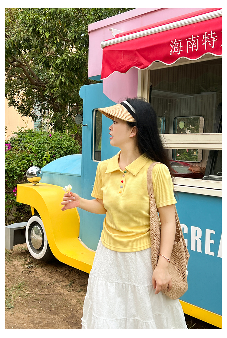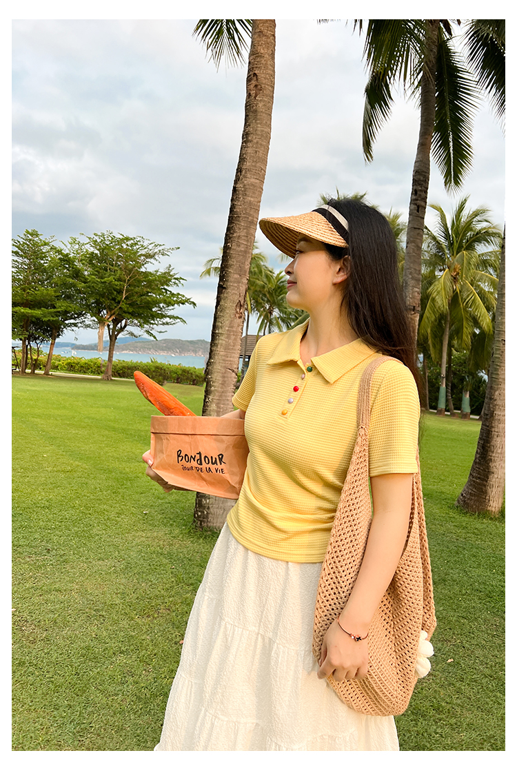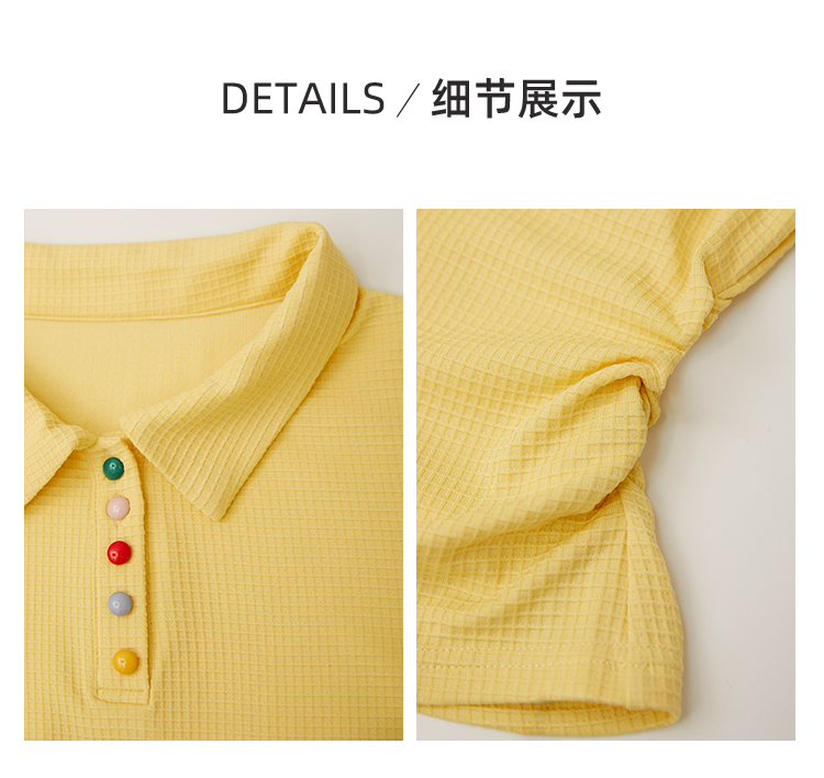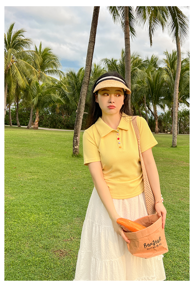 DM100大码百分百2025年夏季新款女装休闲收腰上衣华夫格polo领T恤