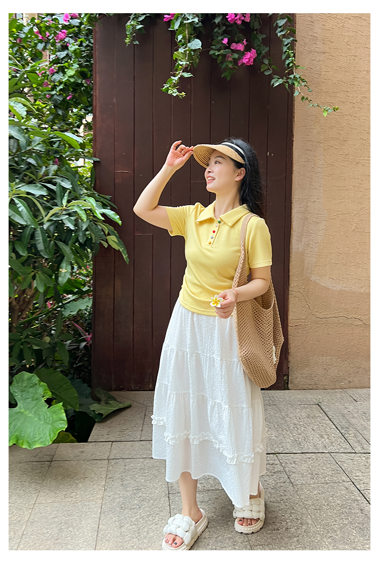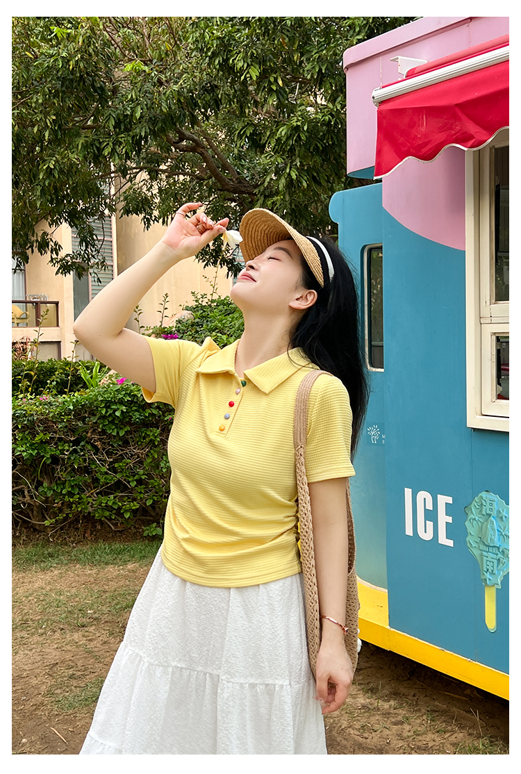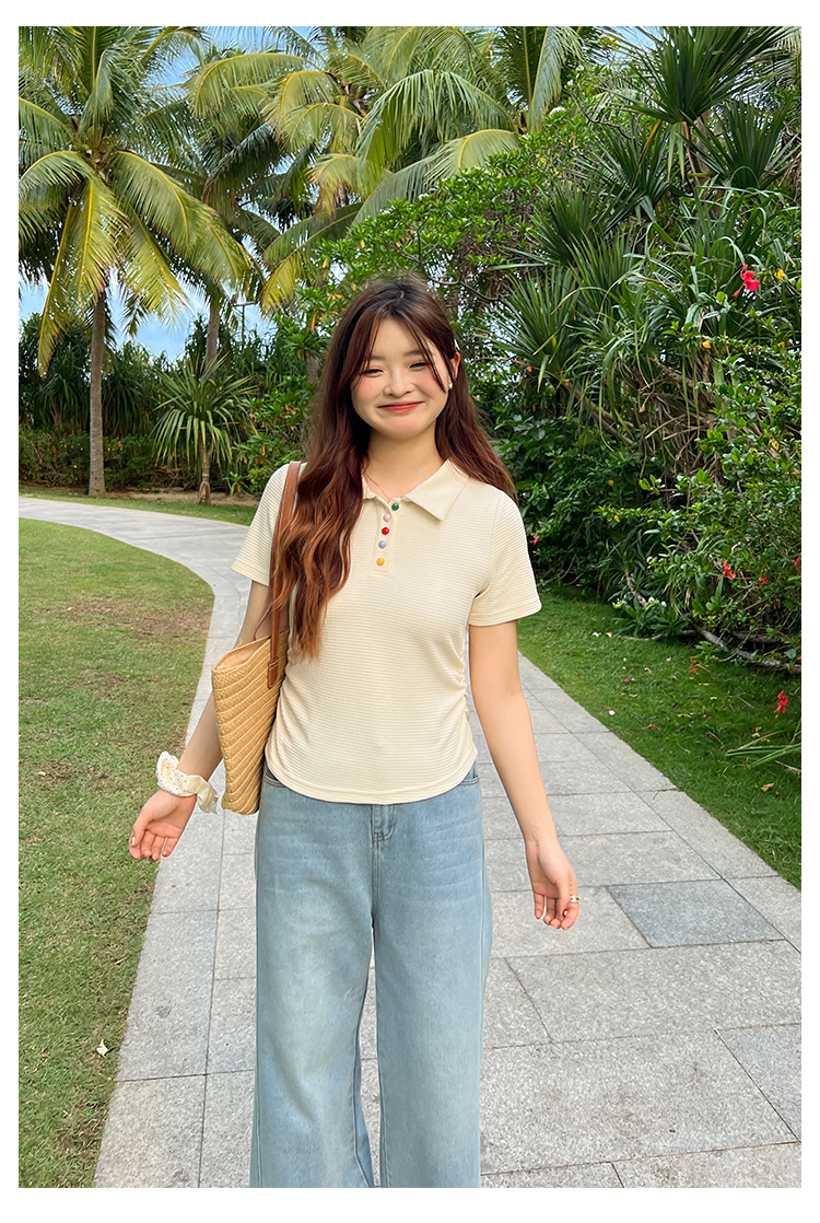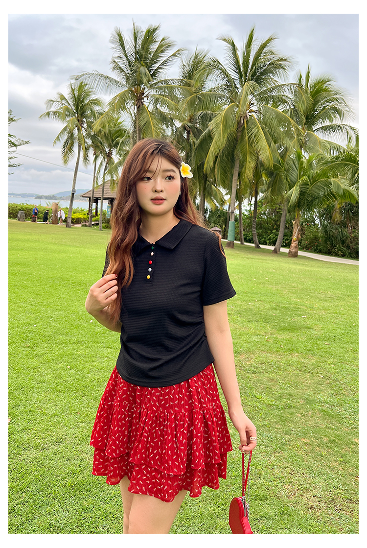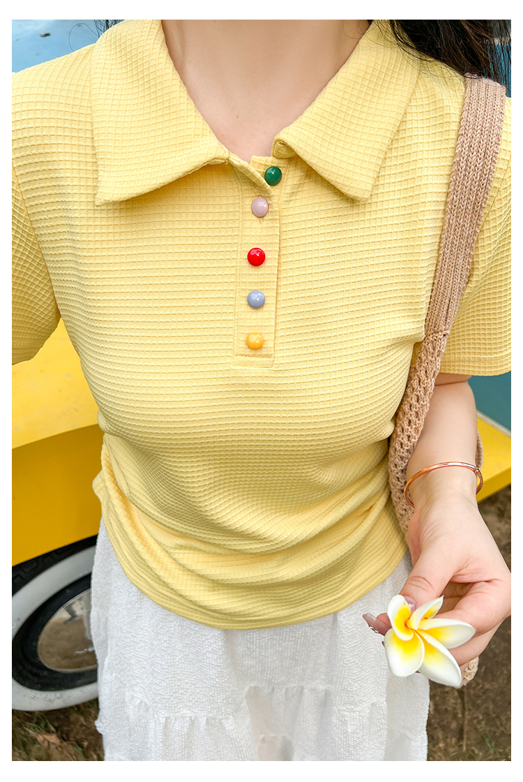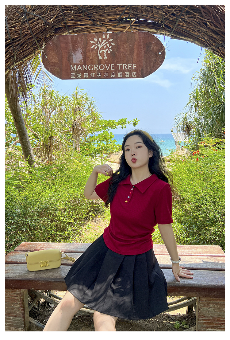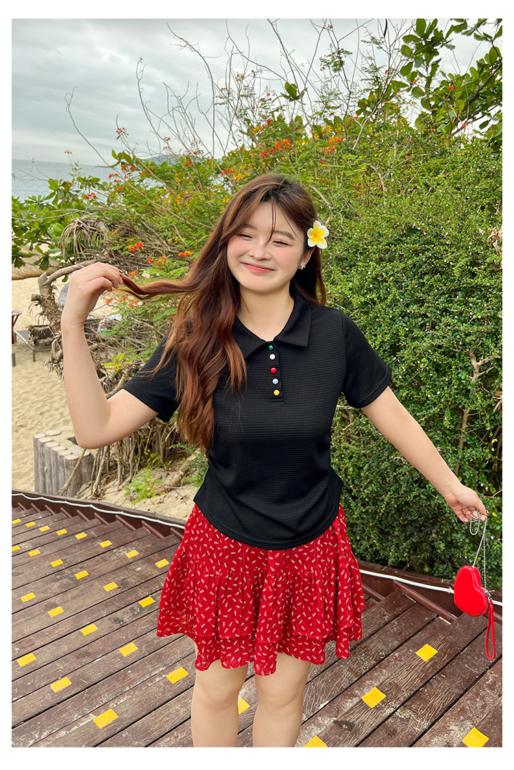 DM100大码百分百2025年夏季新款女装休闲收腰上衣华夫格polo领T恤