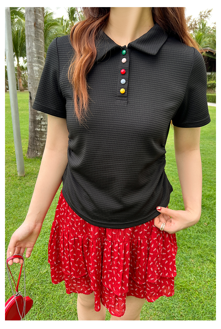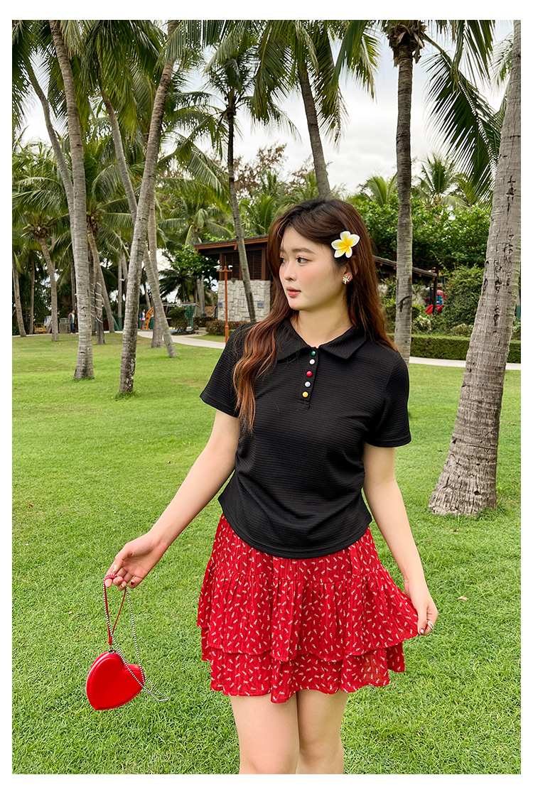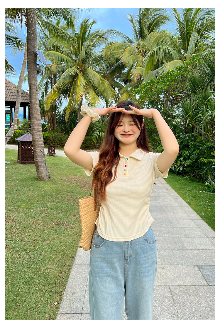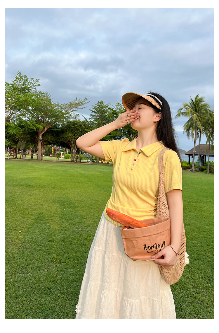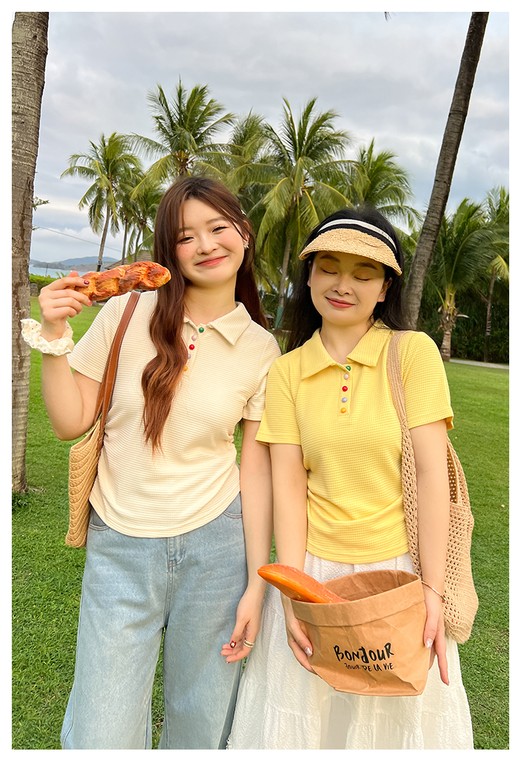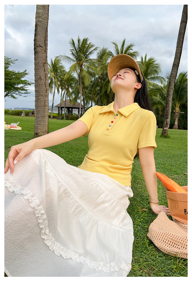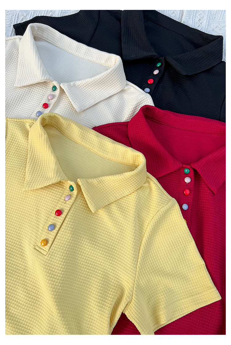 DM100大码百分百2025年夏季新款女装休闲收腰上衣华夫格polo领T恤
