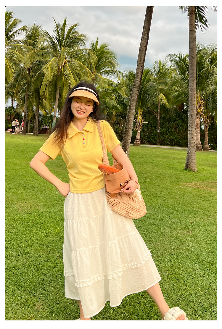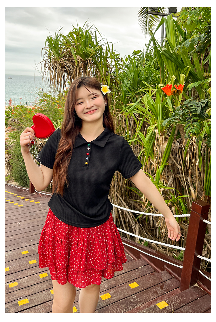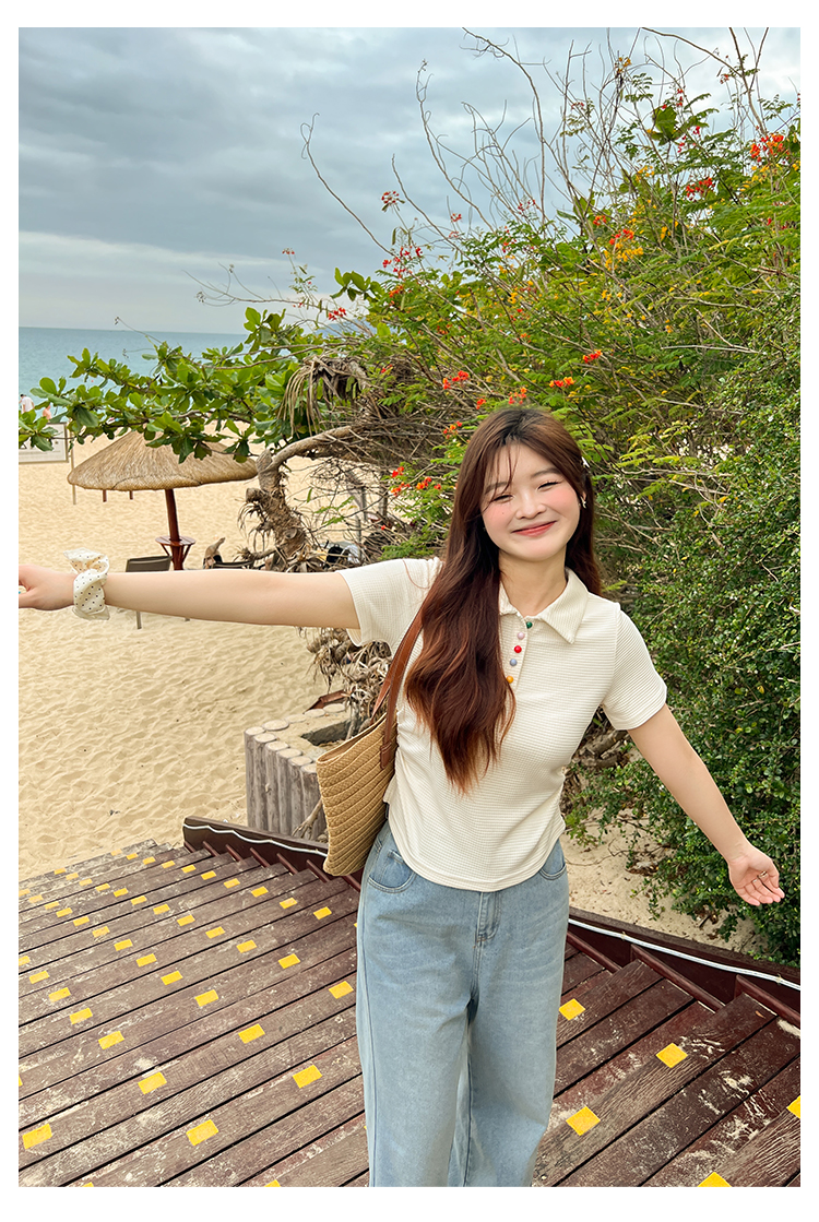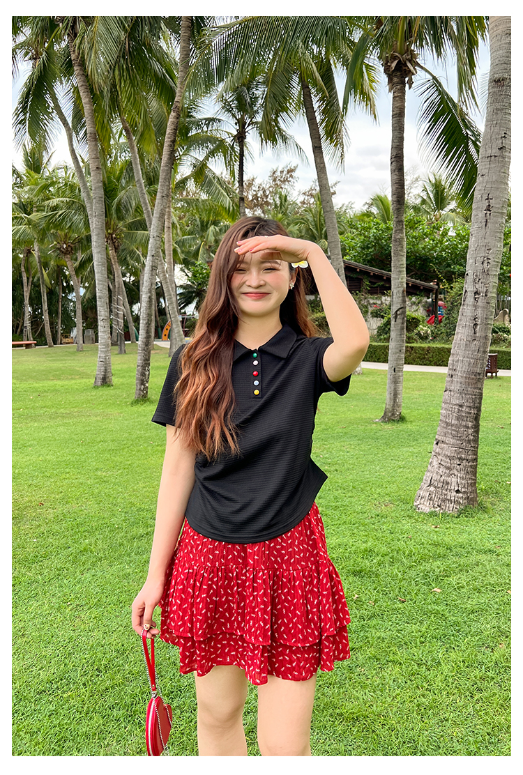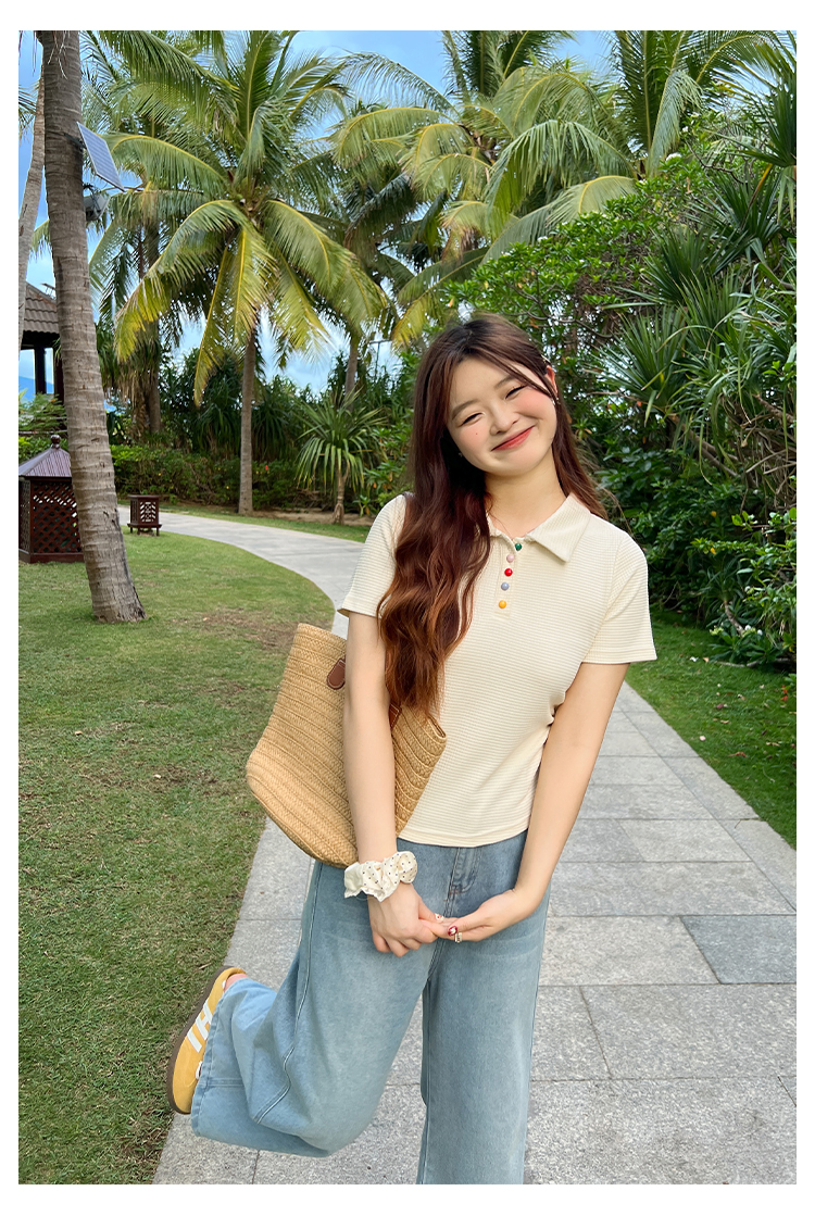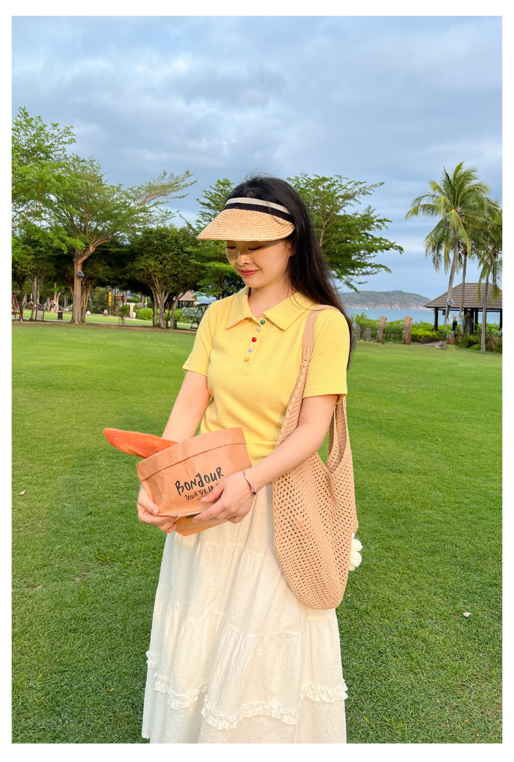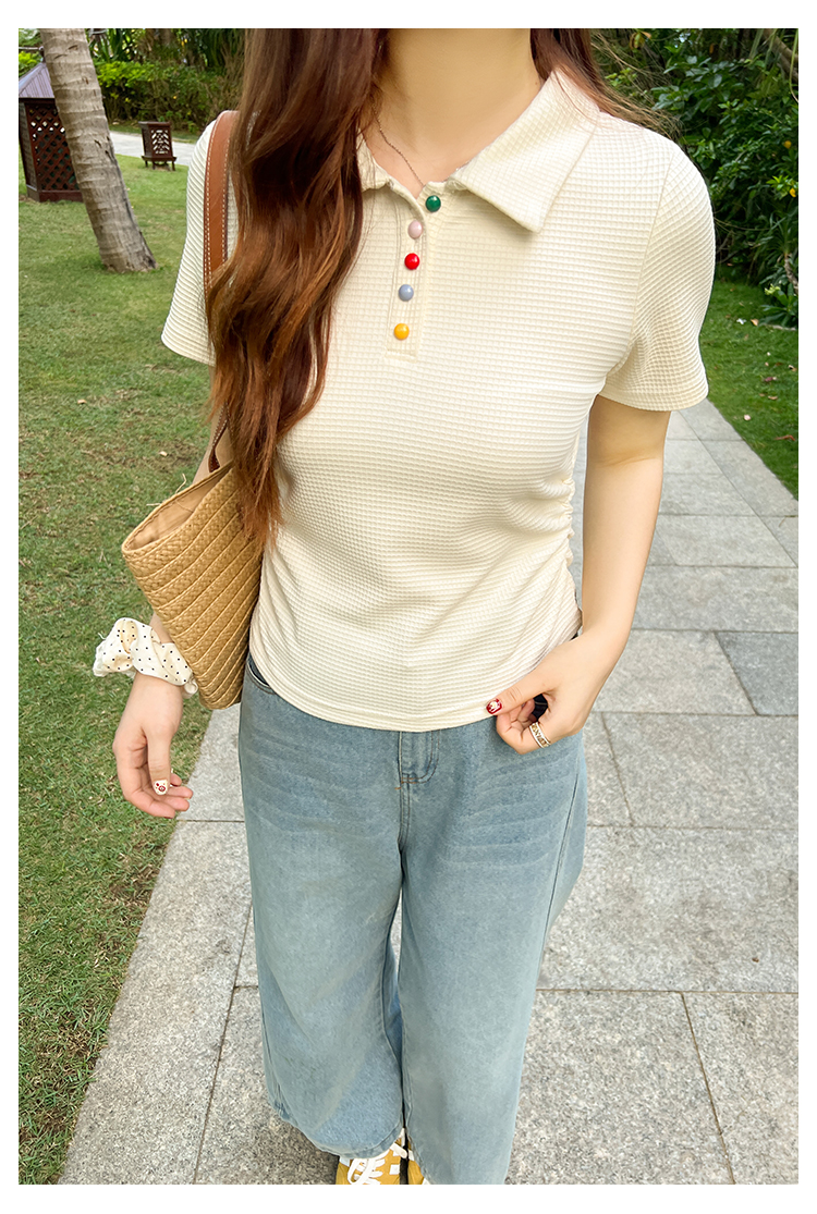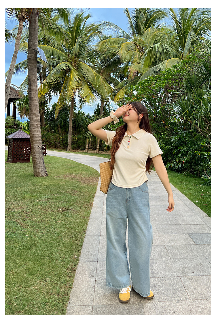 DM100大码百分百2025年夏季新款女装休闲收腰上衣华夫格polo领T恤