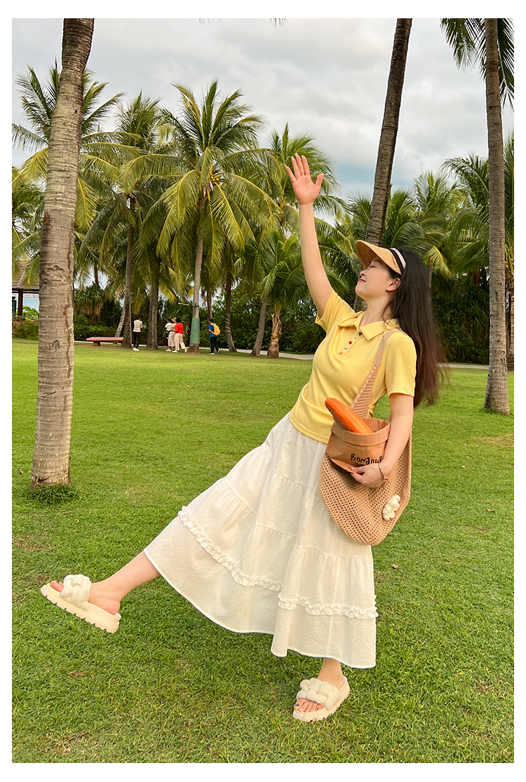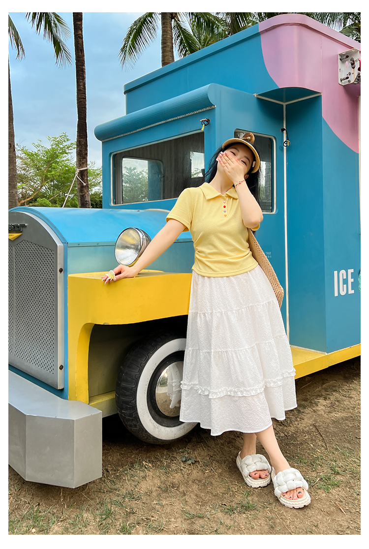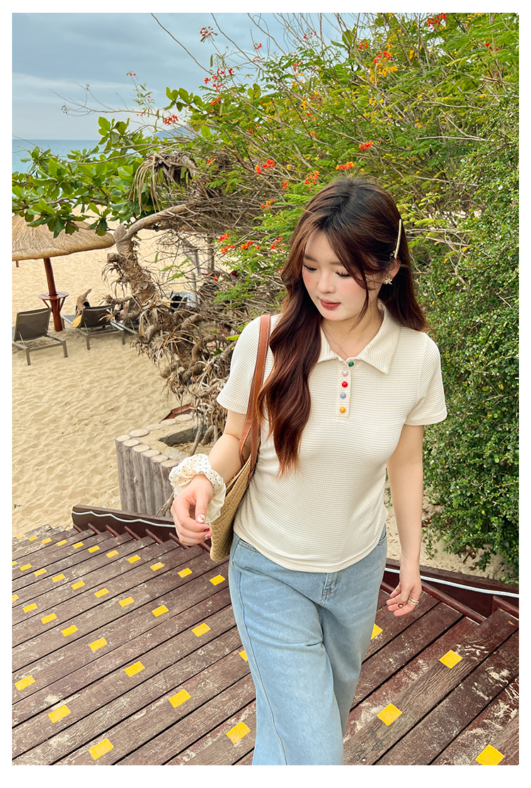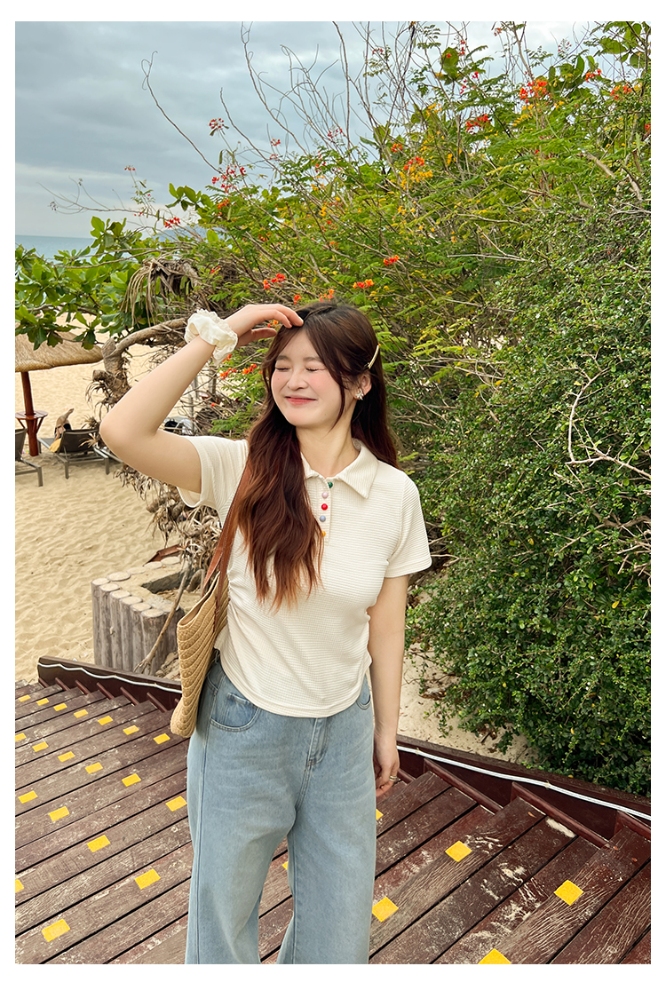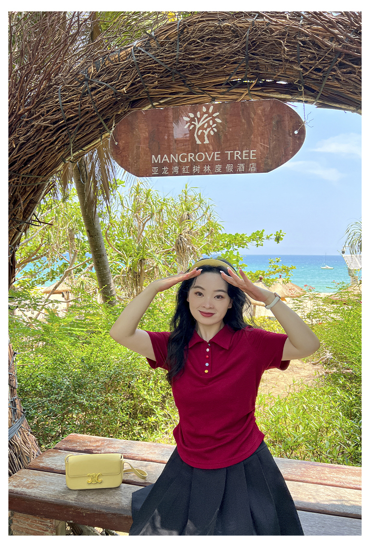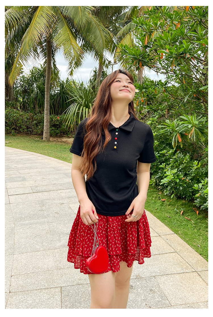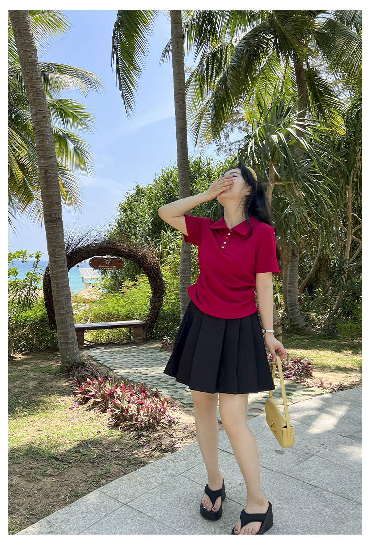 DM100大码百分百2025年夏季新款女装休闲收腰上衣华夫格polo领T恤