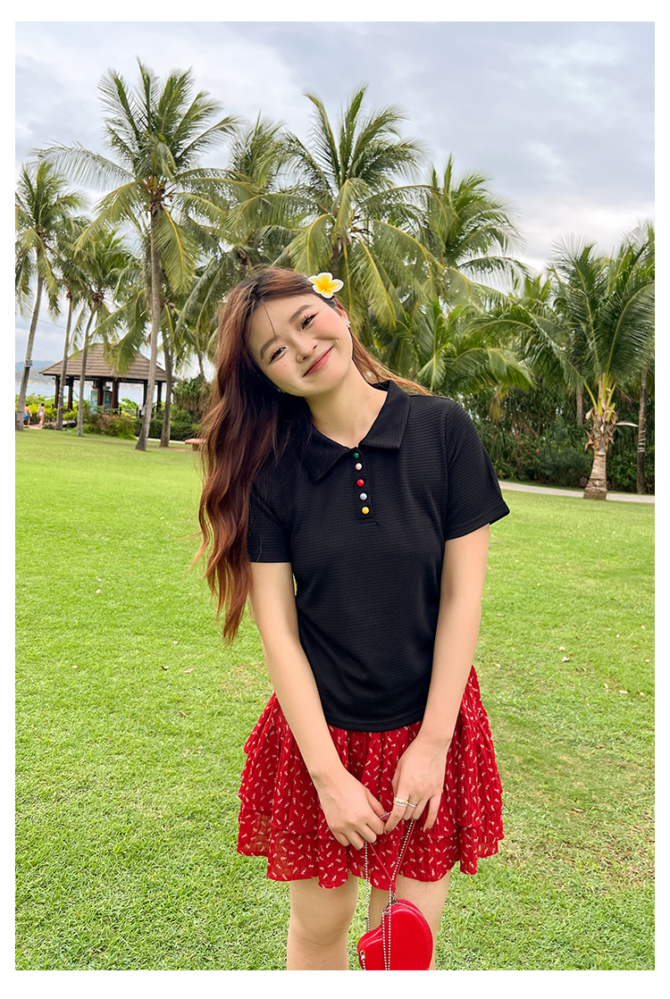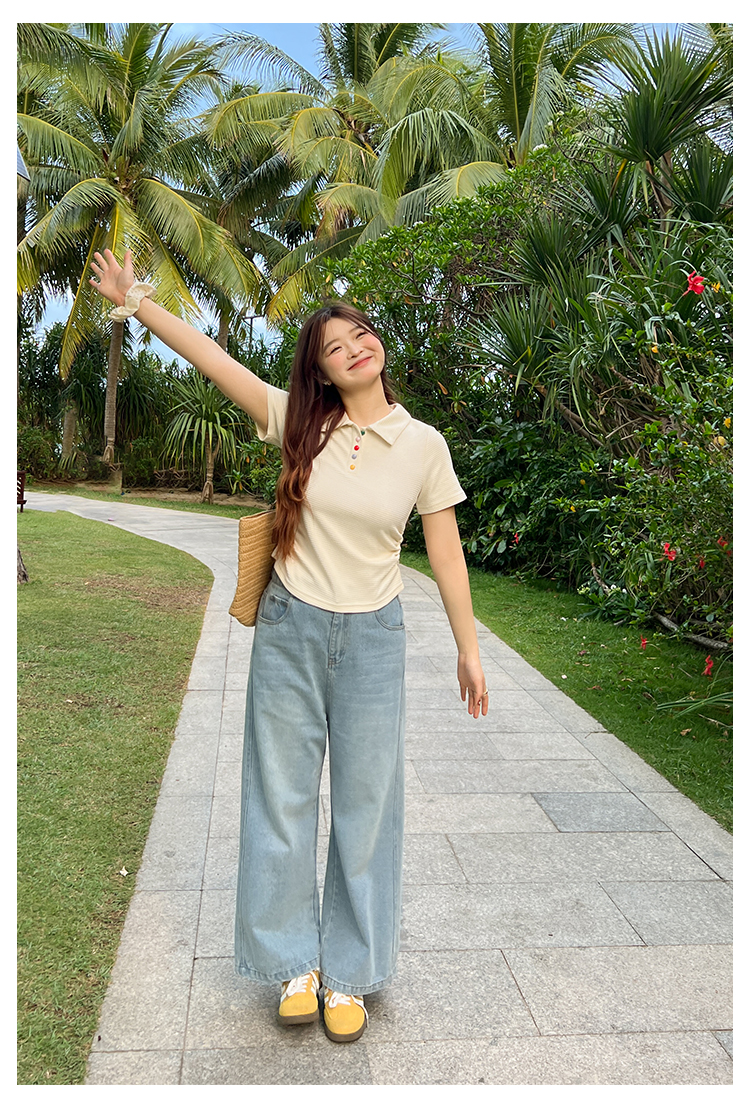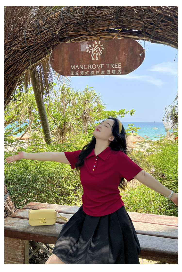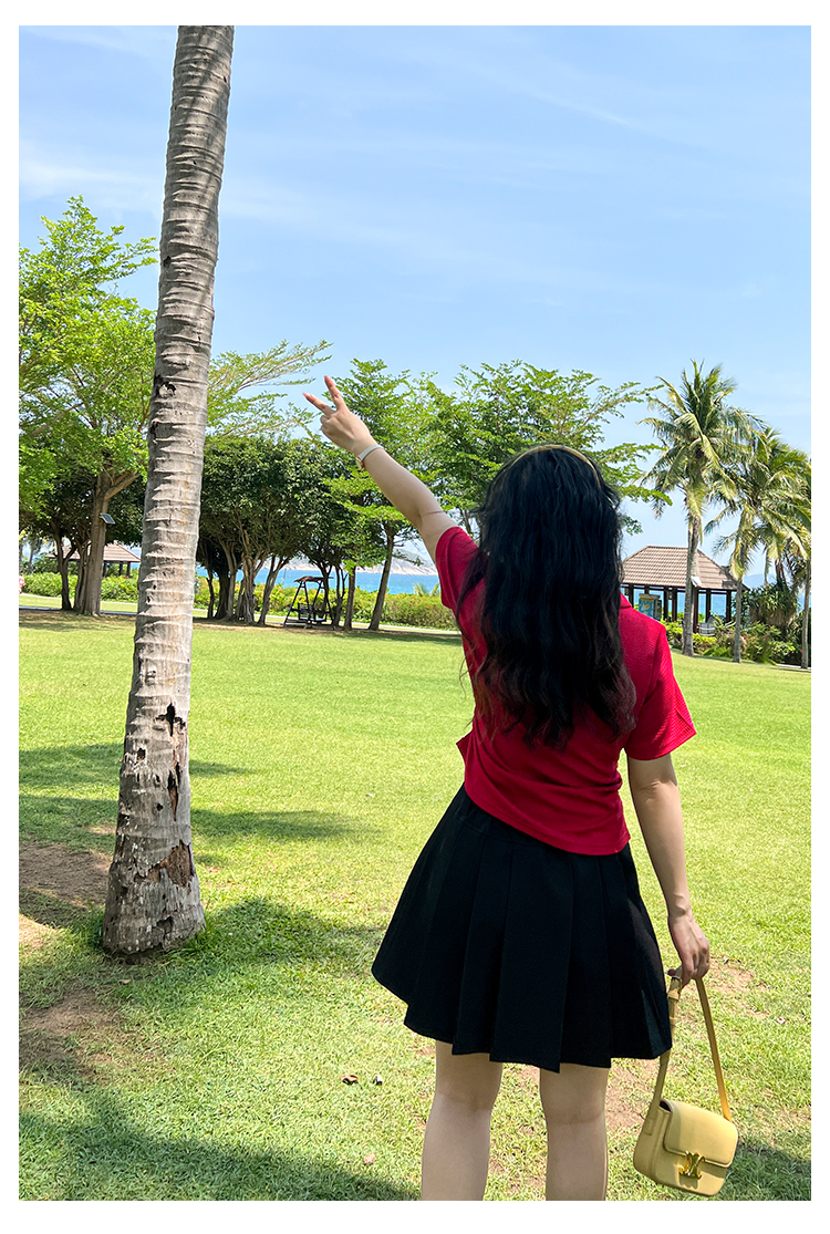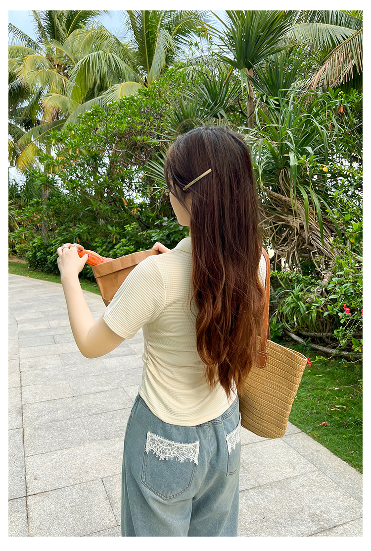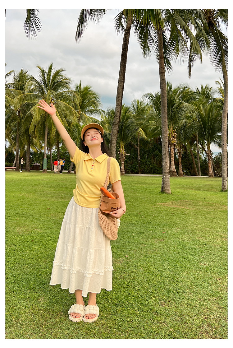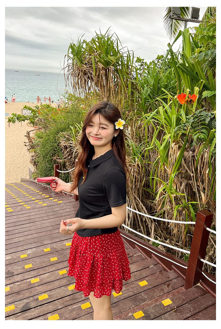 DM100大码百分百2025年夏季新款女装休闲收腰上衣华夫格polo领T恤