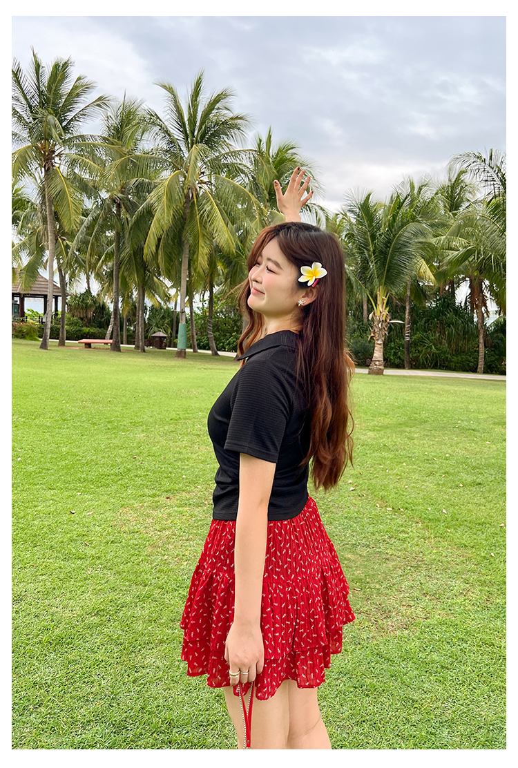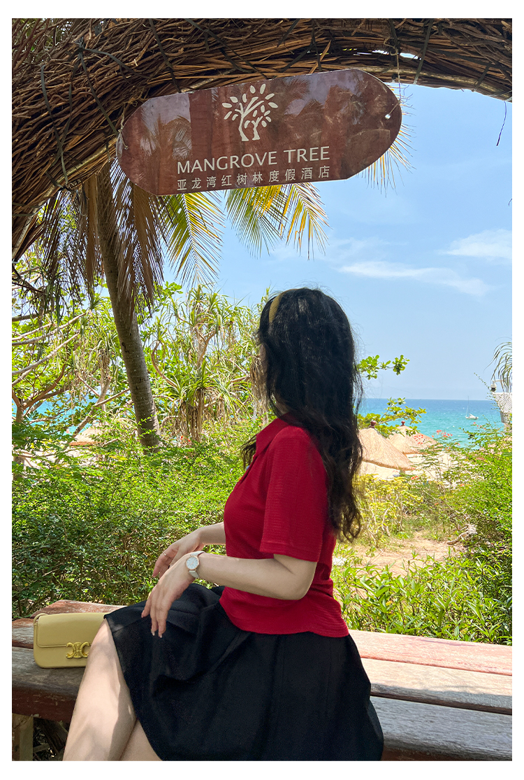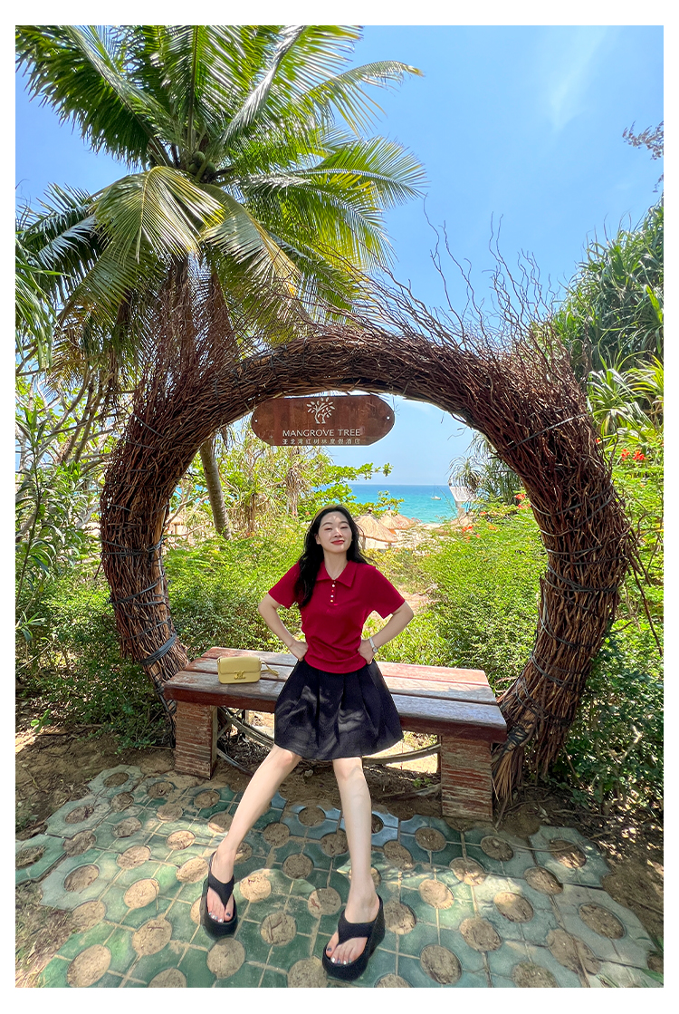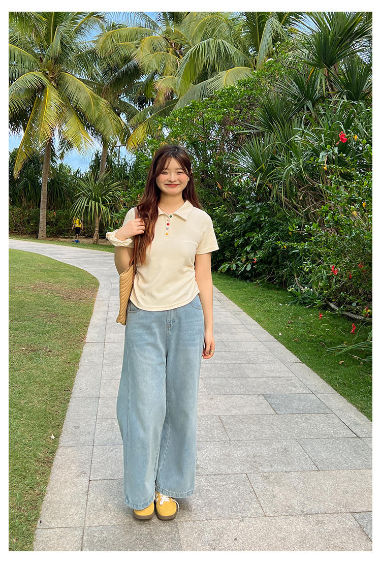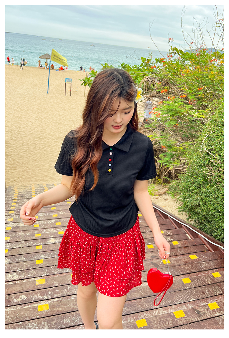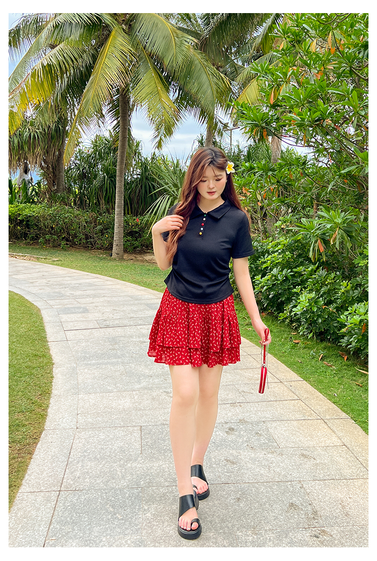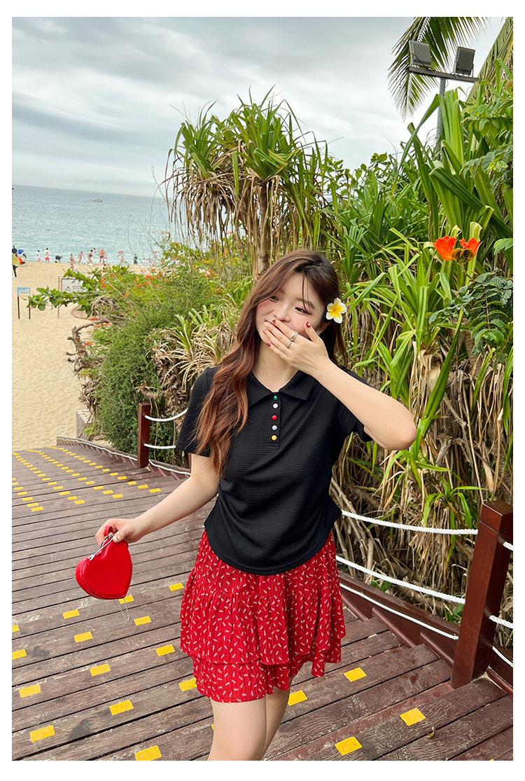 DM100大码百分百2025年夏季新款女装休闲收腰上衣华夫格polo领T恤