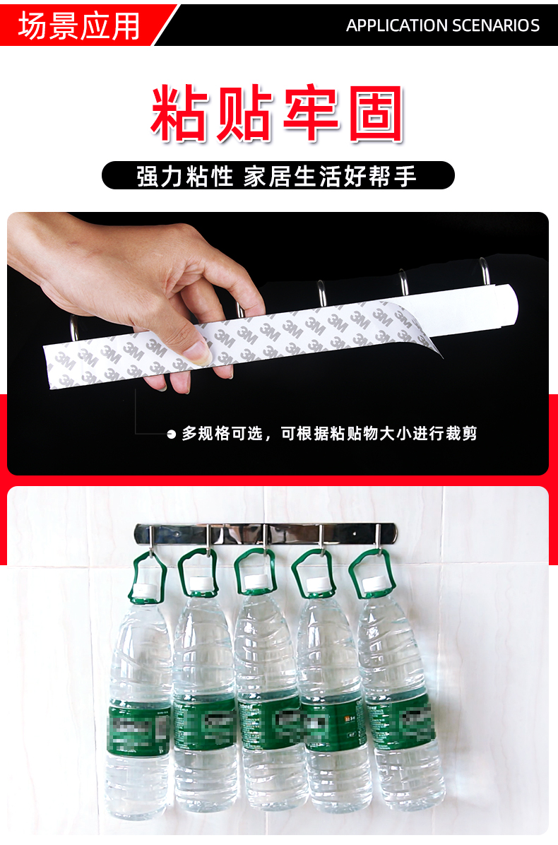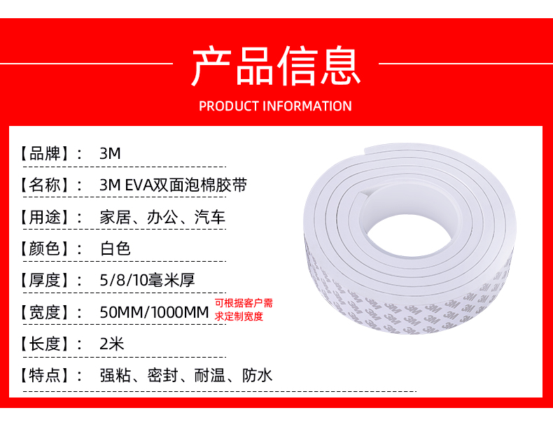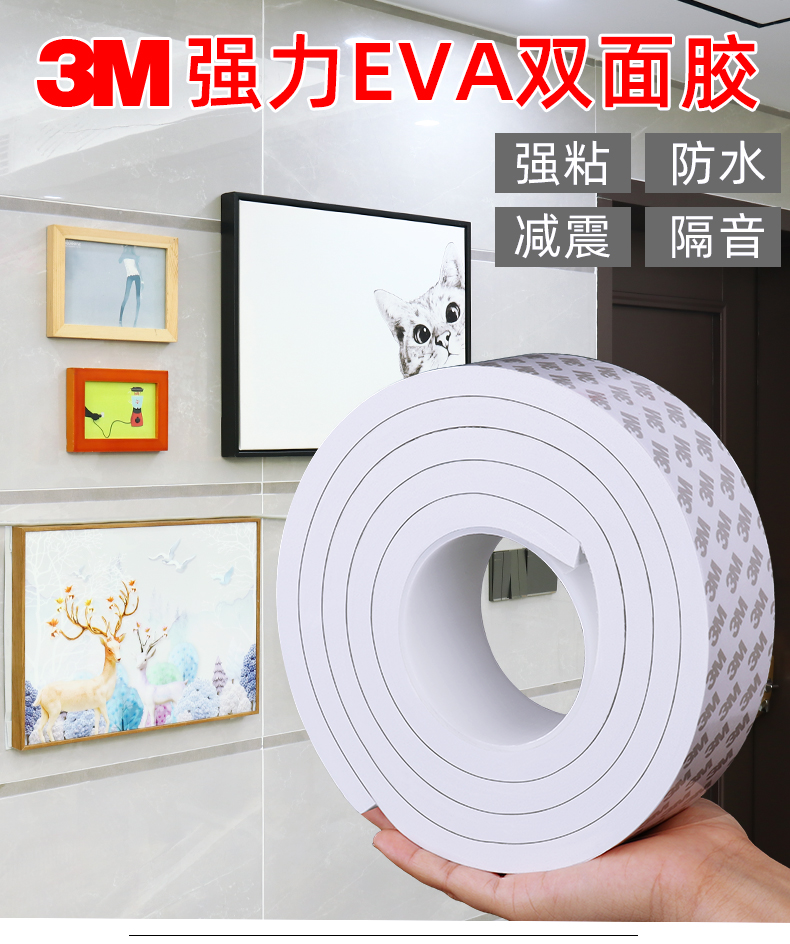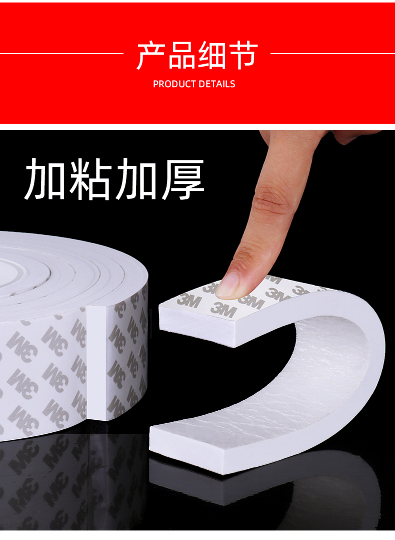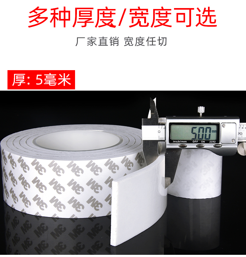 3m双面胶高粘度强力加厚海绵双面胶带固定墙面专用泡沫泡棉不留痕海报相框照片墙瓷砖面广告牌两面胶5-8-10mm